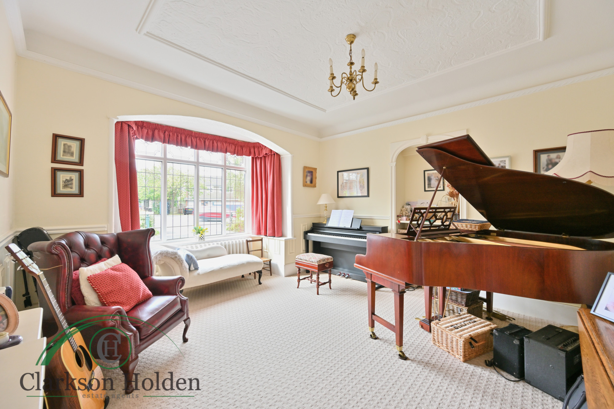 From the hallway, you are taken to a stunning first reception room (which is currently used as a Music Room) located at the front of the property. This room boasts a huge leaded bay window which floods the room with incoming light and ambience. The room has many features including the lower panelled walls and attractive alcove ceilings adding extra depth and a touch of seldom seen class, luxury and comfort.