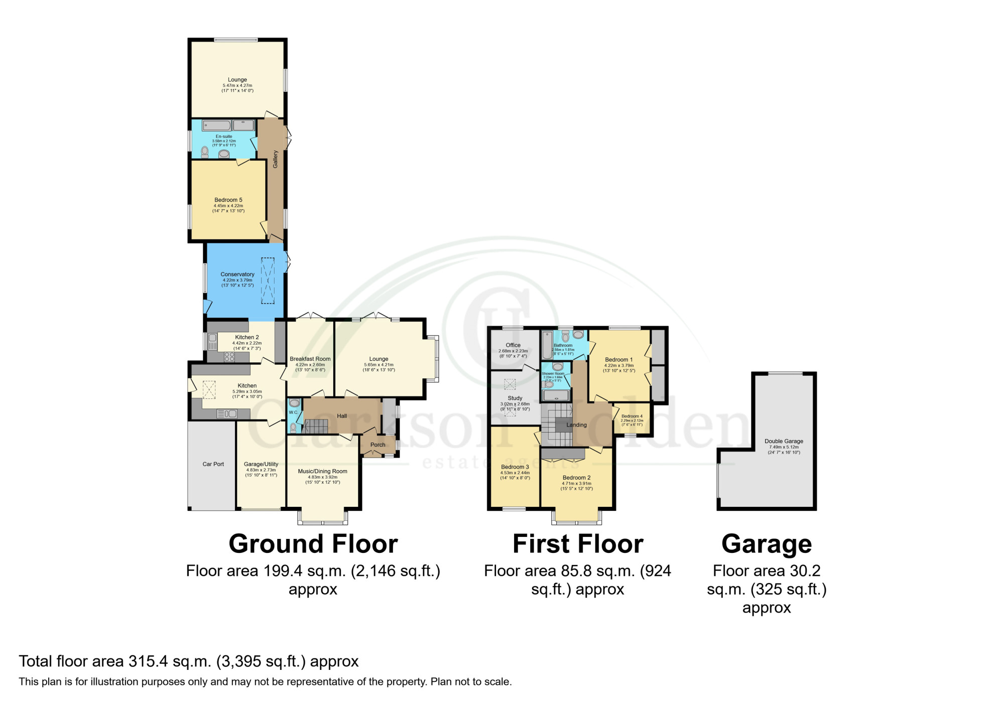 • Detached double garage. Integral single garage/utility and large adjoining car port.
