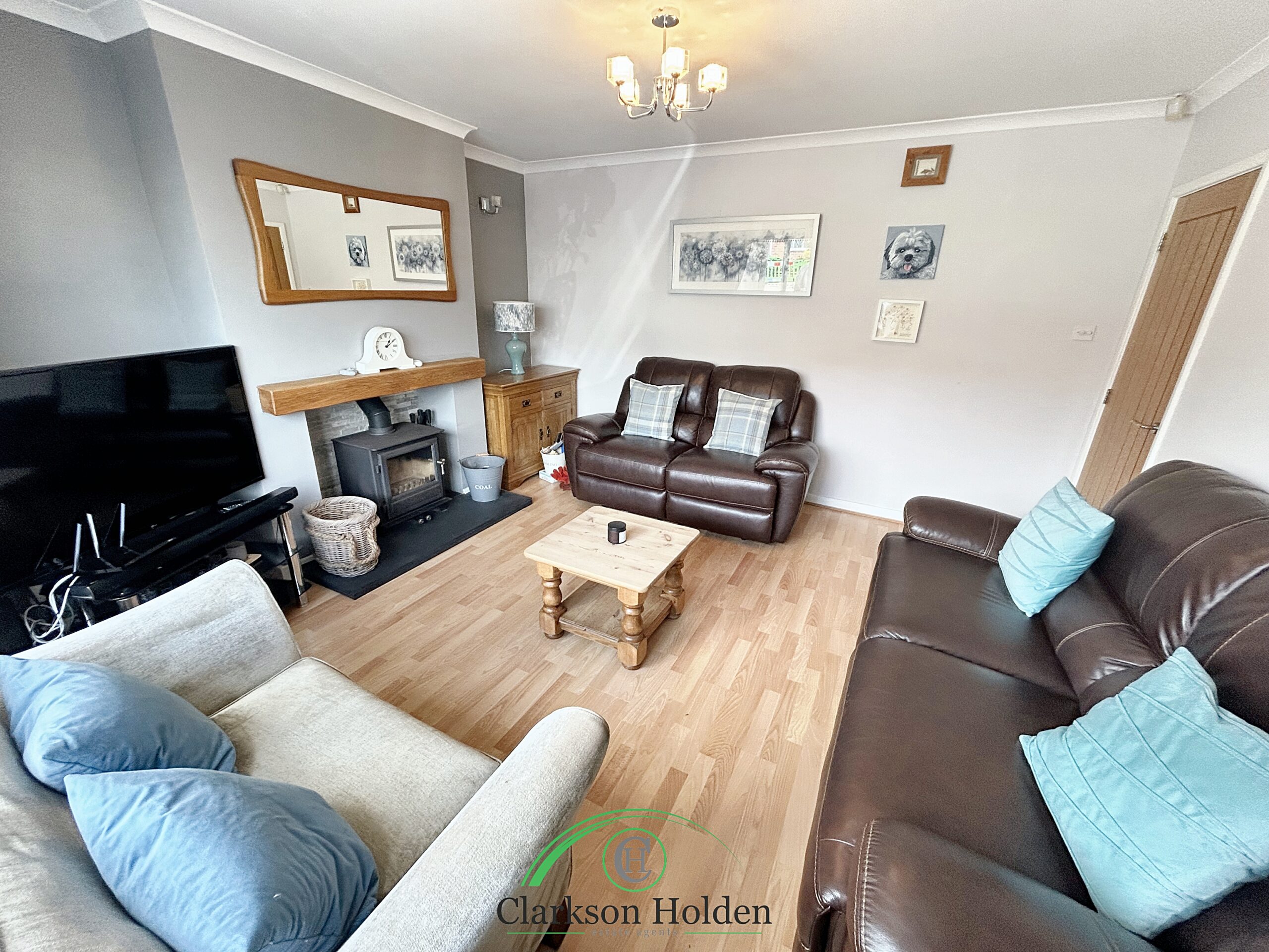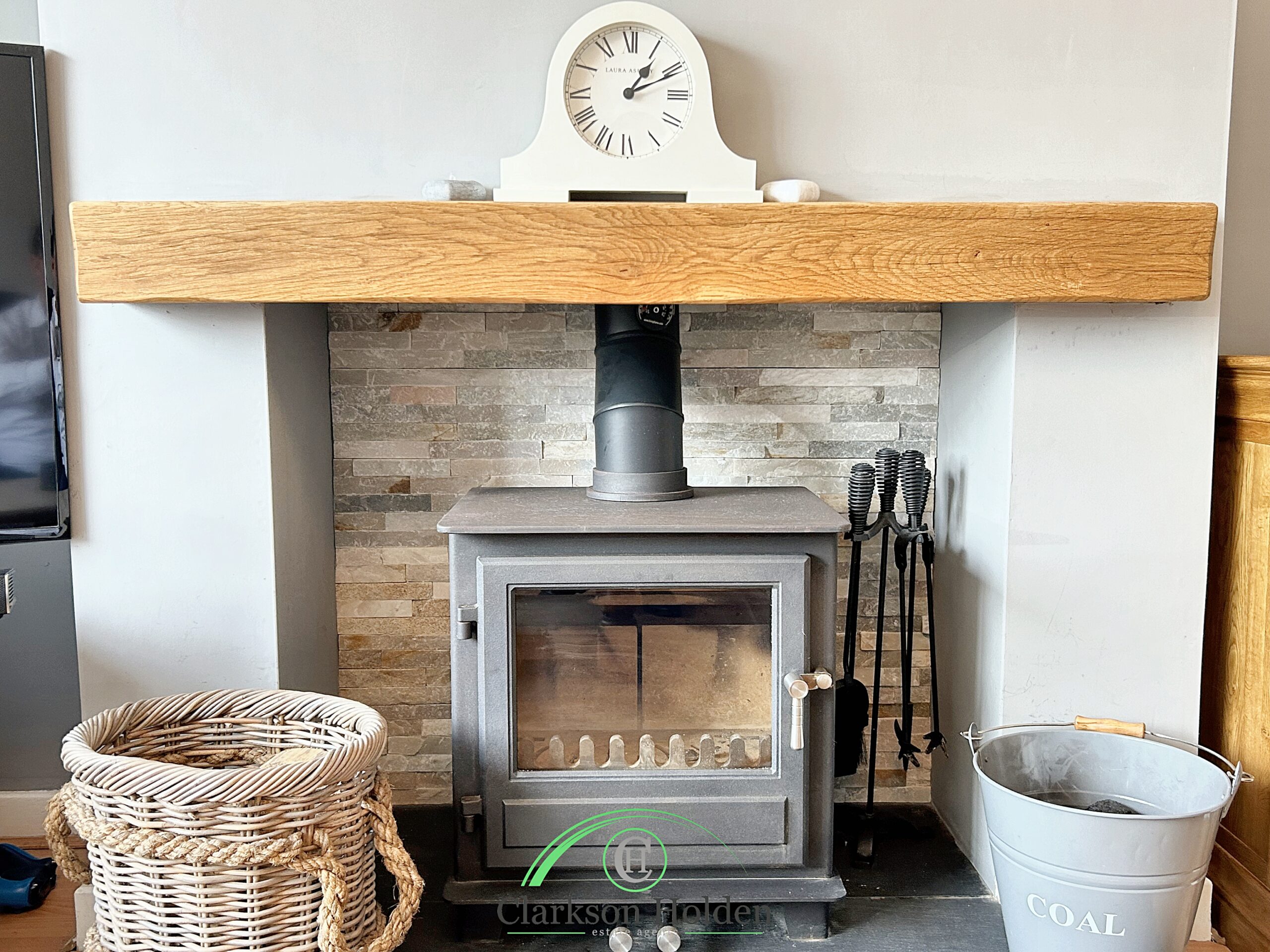 Spacious family living room with real wood burner, oak doors and hive heating.