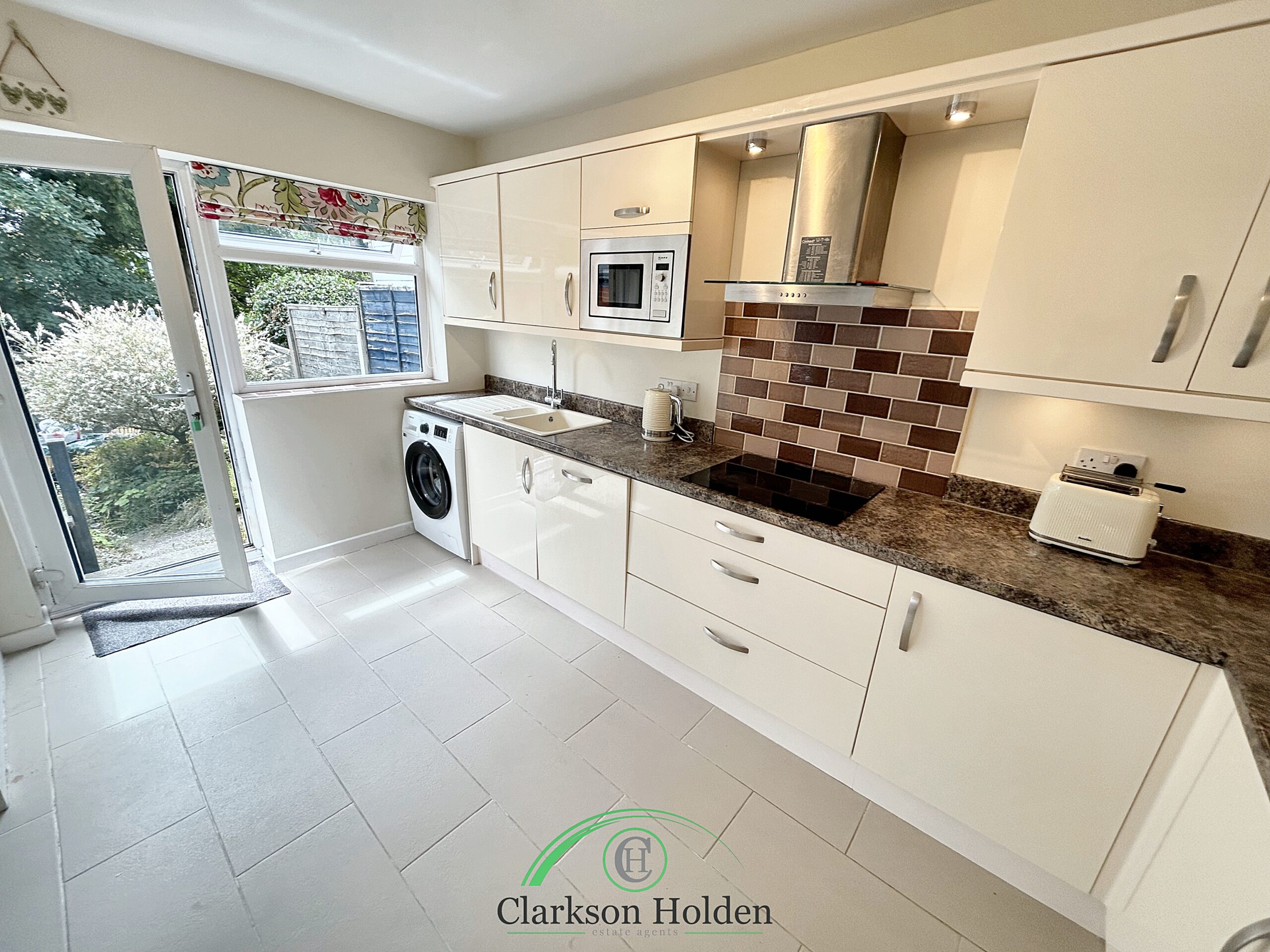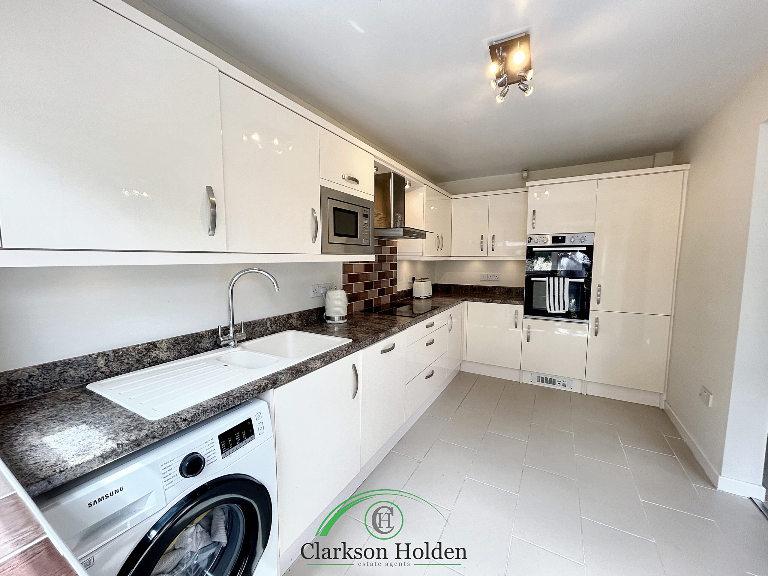 High specification kitchen area, with built in appliances and bespoke storage units, hive heating. Door leading to rear of property.
