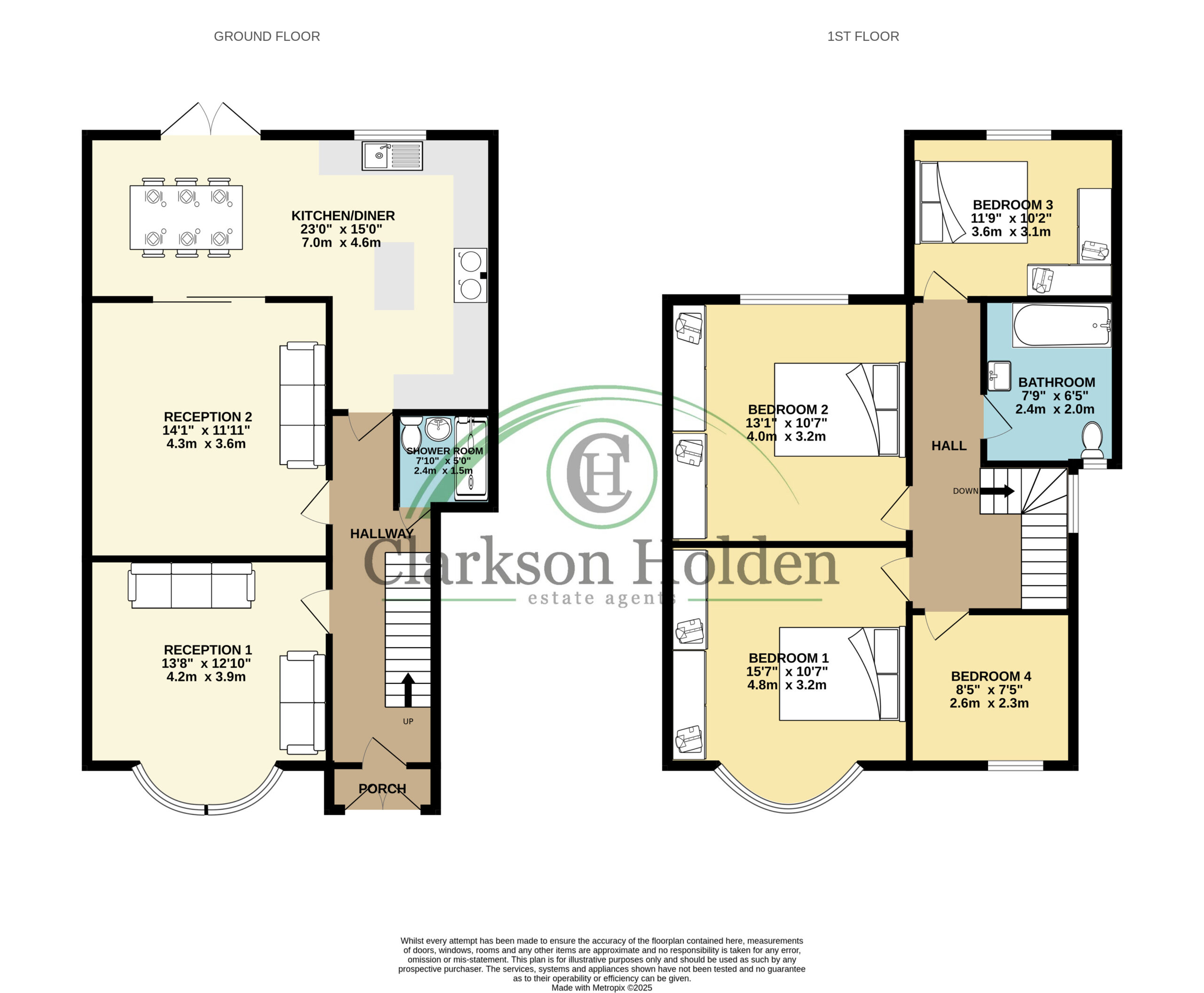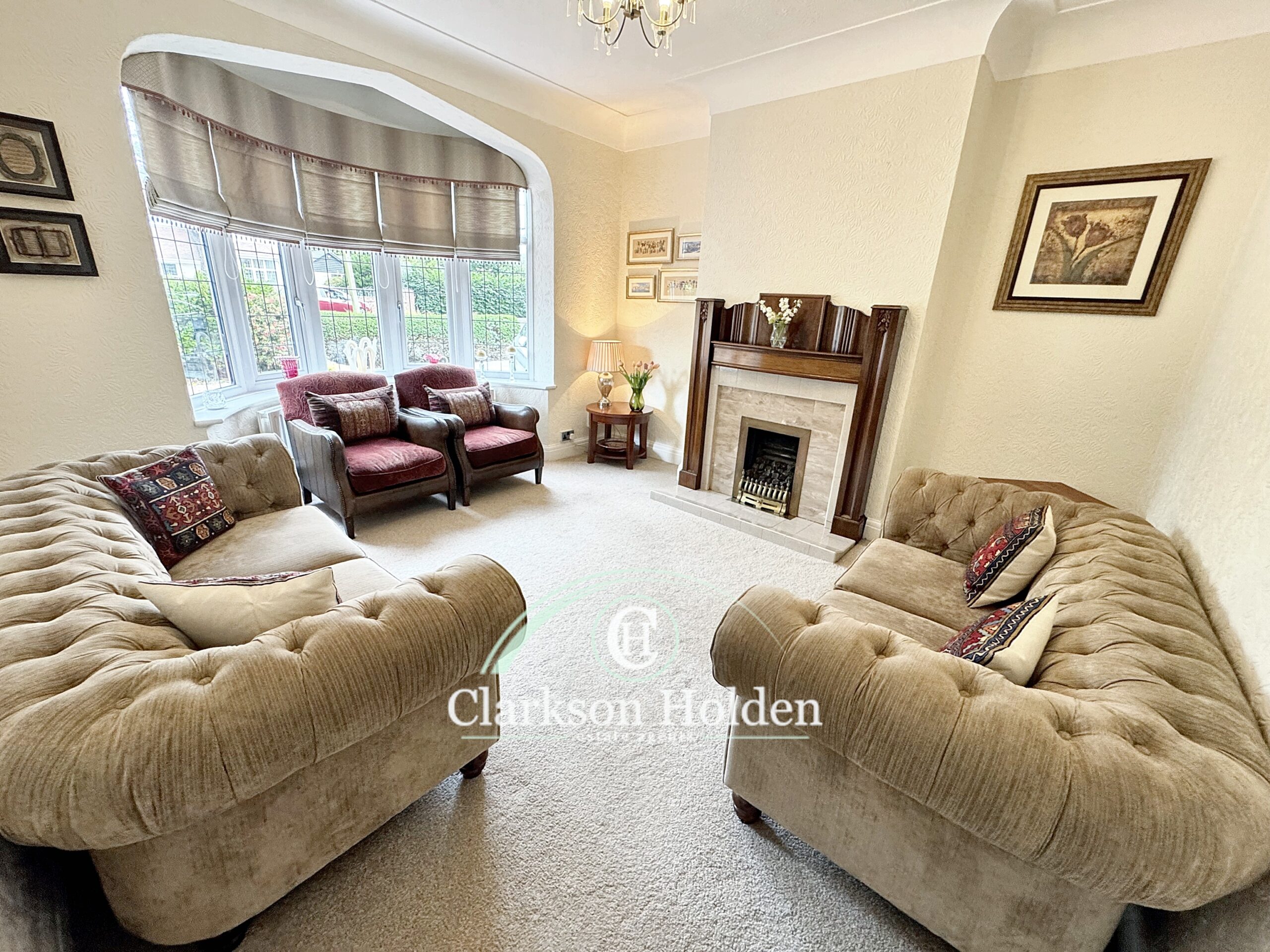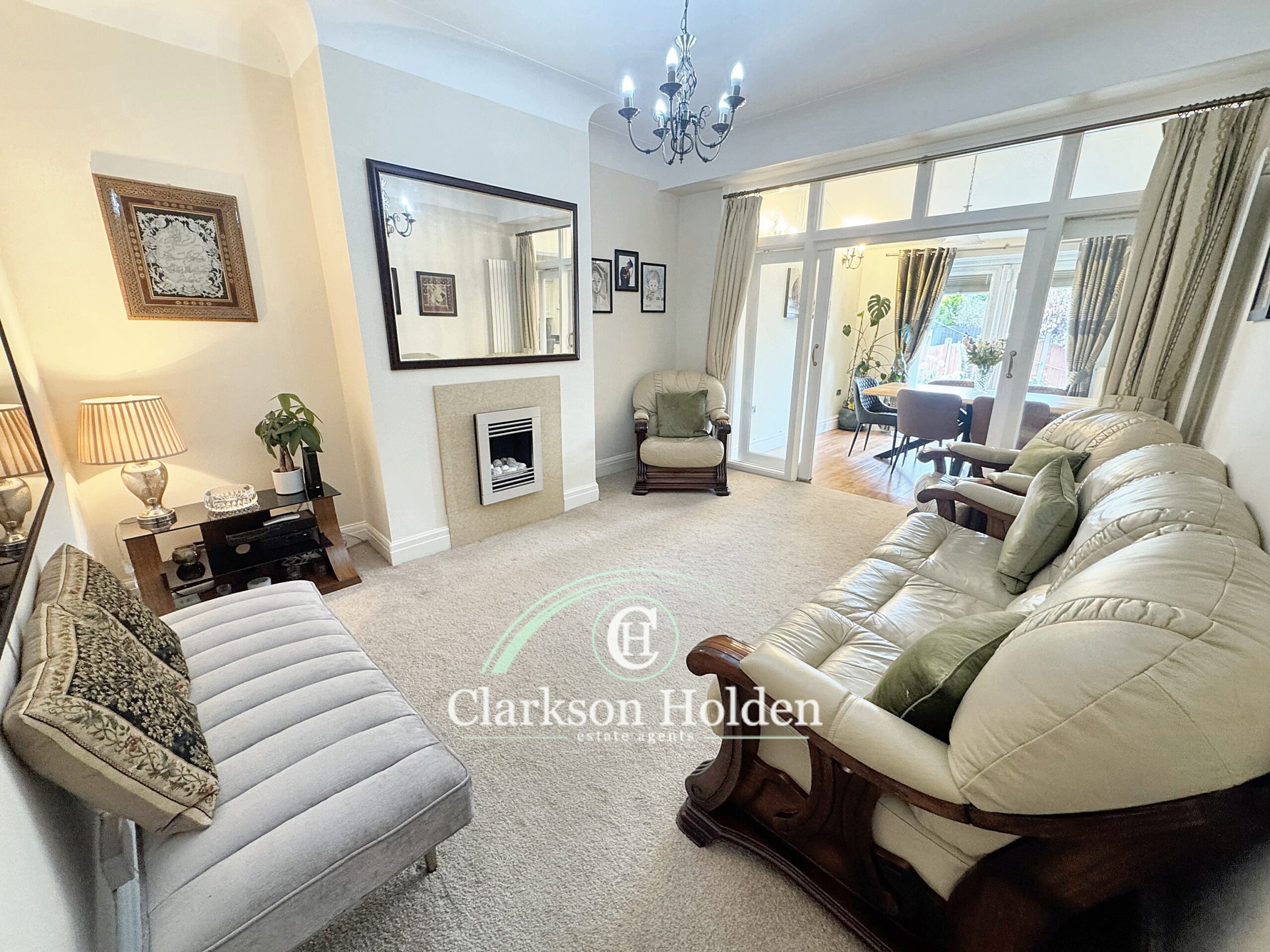 The property comprises two separate bathrooms, a desirable feature for larger families or households. Throughout the house, one can appreciate the beautiful traditional features such as the bay windows and coving, adding character and elegance to the space.