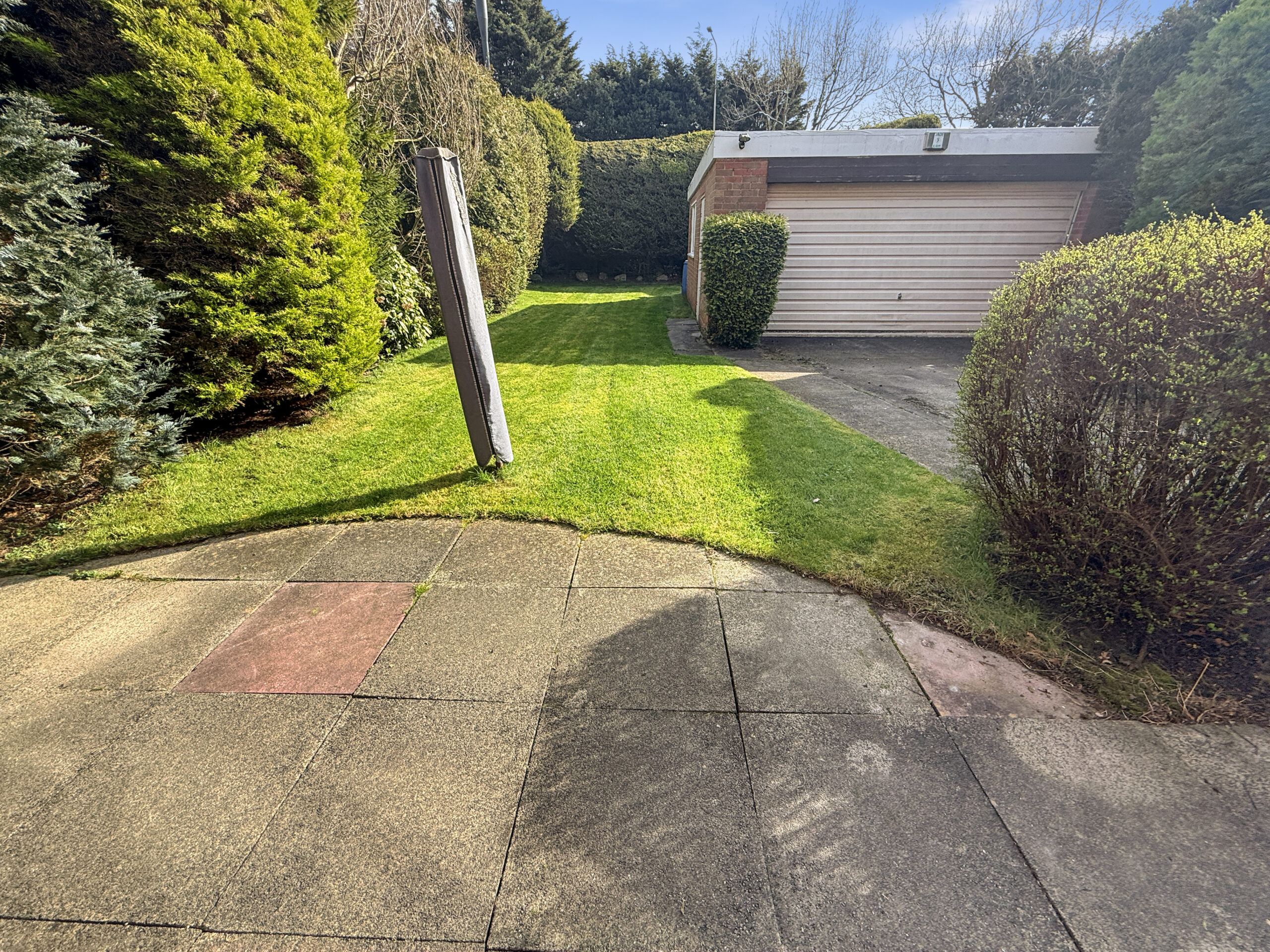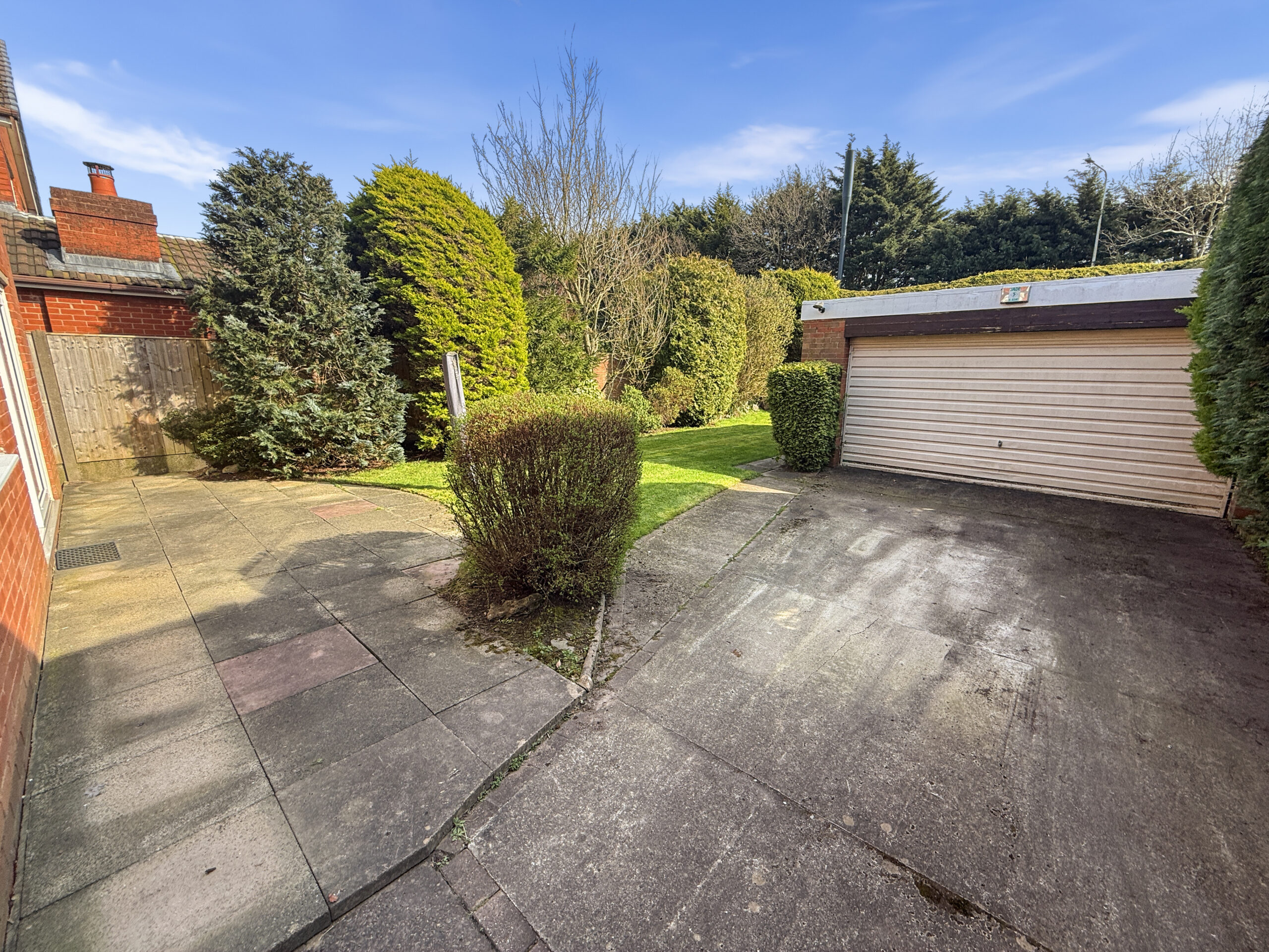 Set on a spacious plot, the house benefits from a wide and long driveway providing ample parking for several vehicles, as well as a double garage (currently used as a workshop) that offers further flexibility for storage or hobbies.