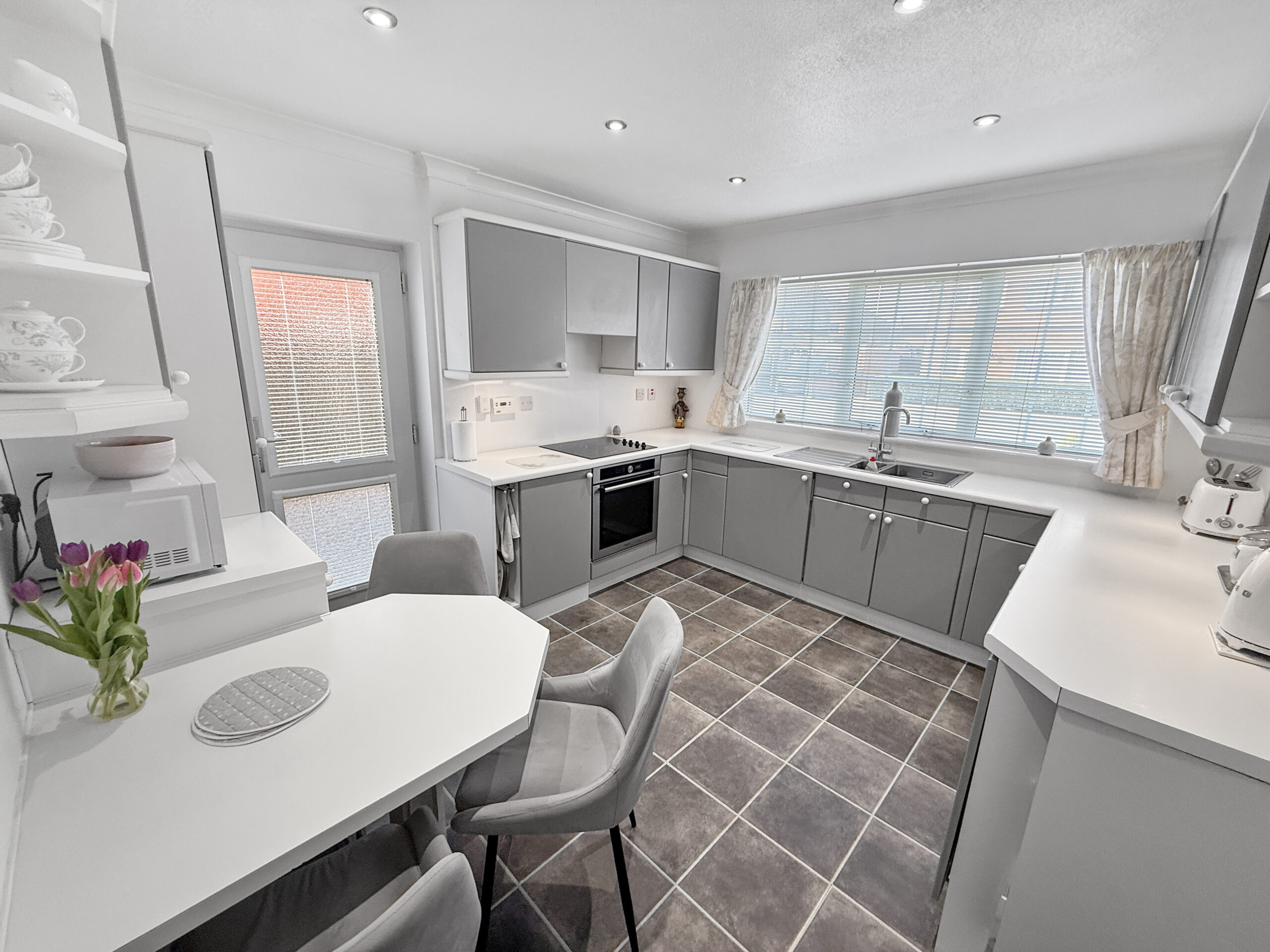 The modern kitchen is fitted with a breakfast bar and high-quality integrated appliances, providing a practical and stylish space for every-day cooking and entertaining.