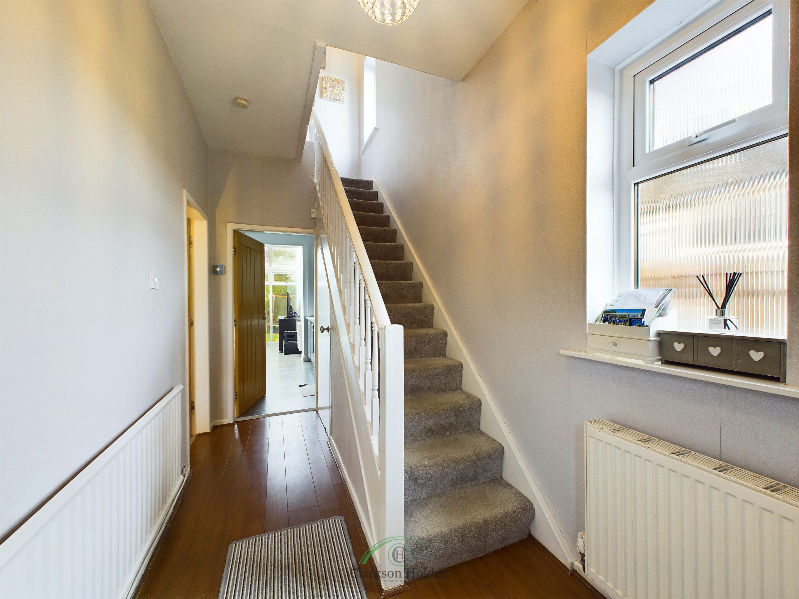 Hallway leading to lounge/diner, kitchen, stairs leading to first floor, radiator.