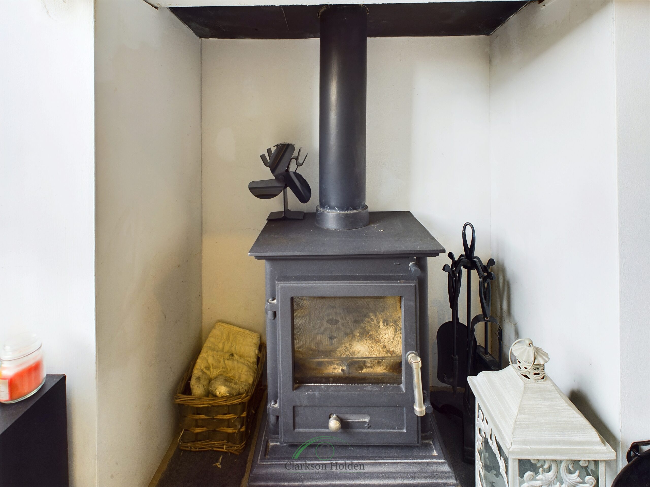 UPVC double glazed window to the front elevation, log burner, UPVC double glazed patio doors leading onto conservatory, radiator.