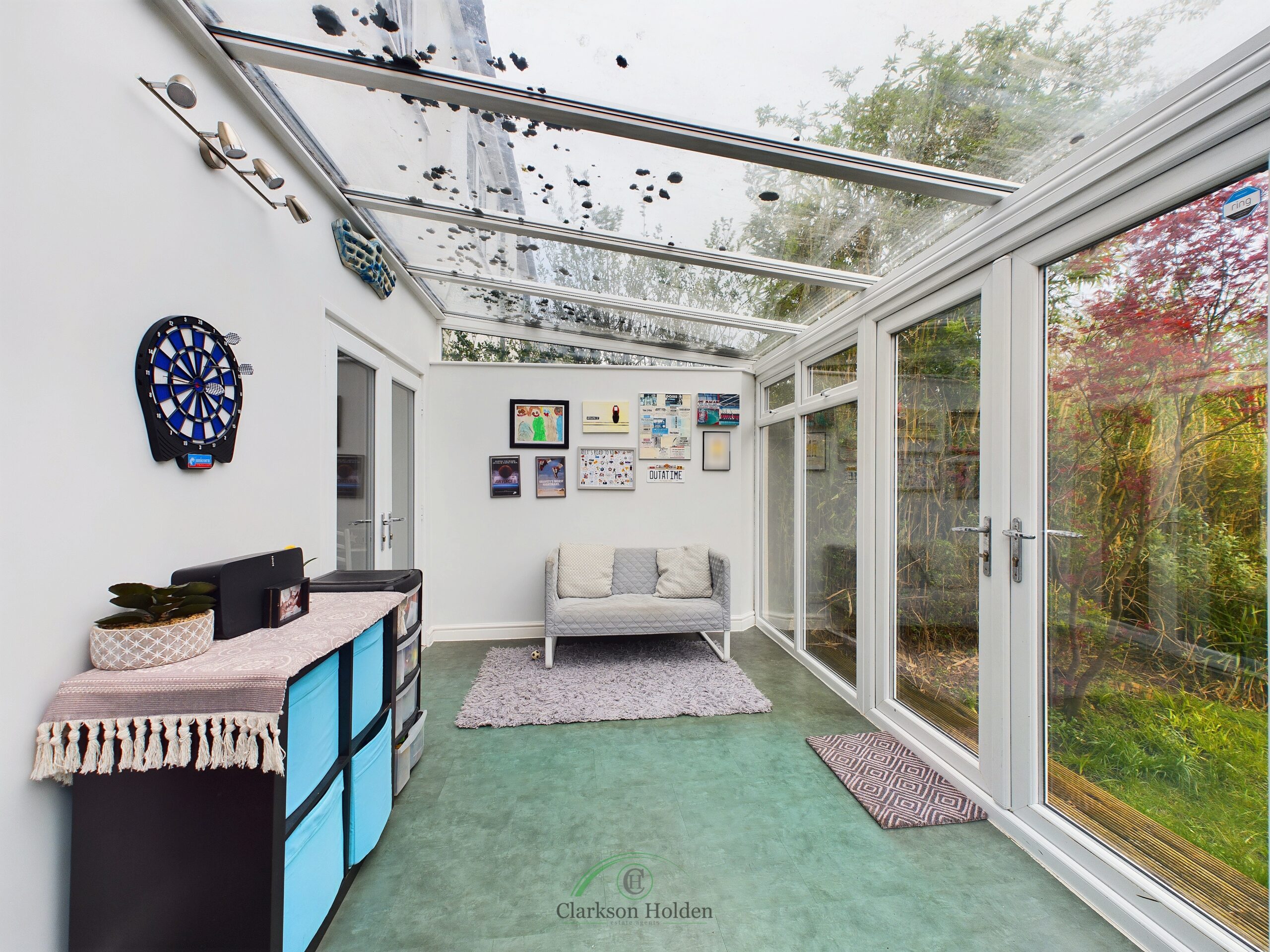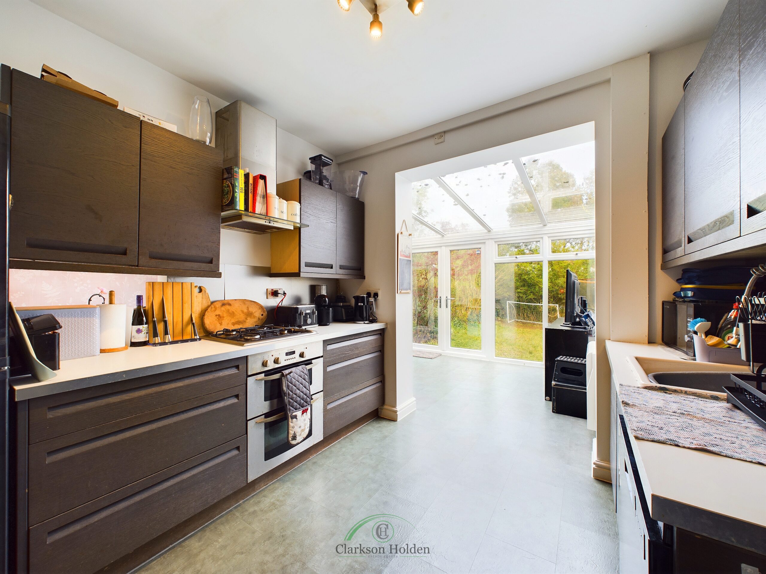The modern kitchen is well-equipped and boasts ample storage space, making it a joy for any cooking enthusiast. The contemporary design of the kitchen seamlessly flows into the conservatory creating a cohesive and functional living space.