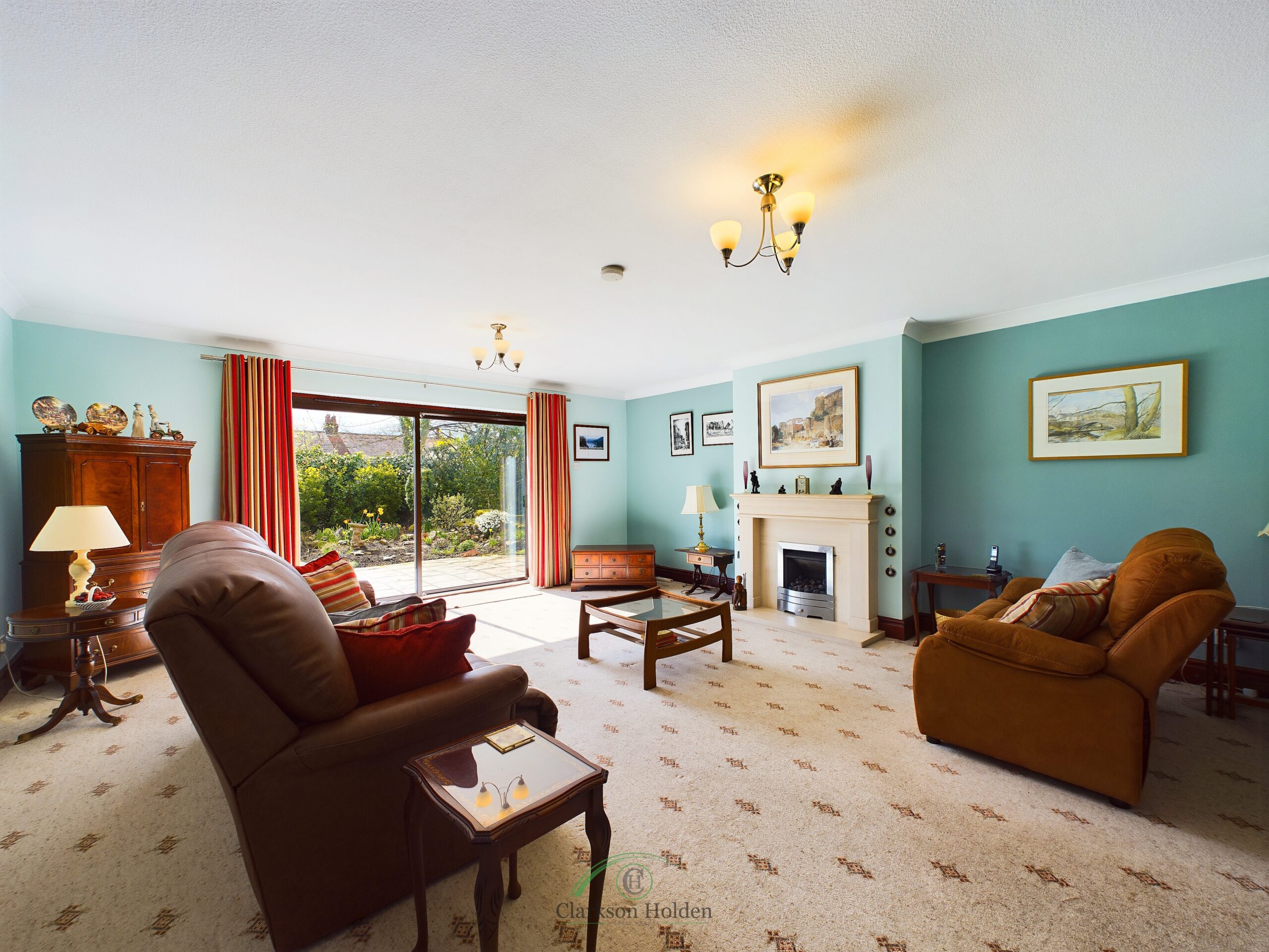 Sliding patio doors leading onto the rear garden, gas fire with fireplace, radiator.