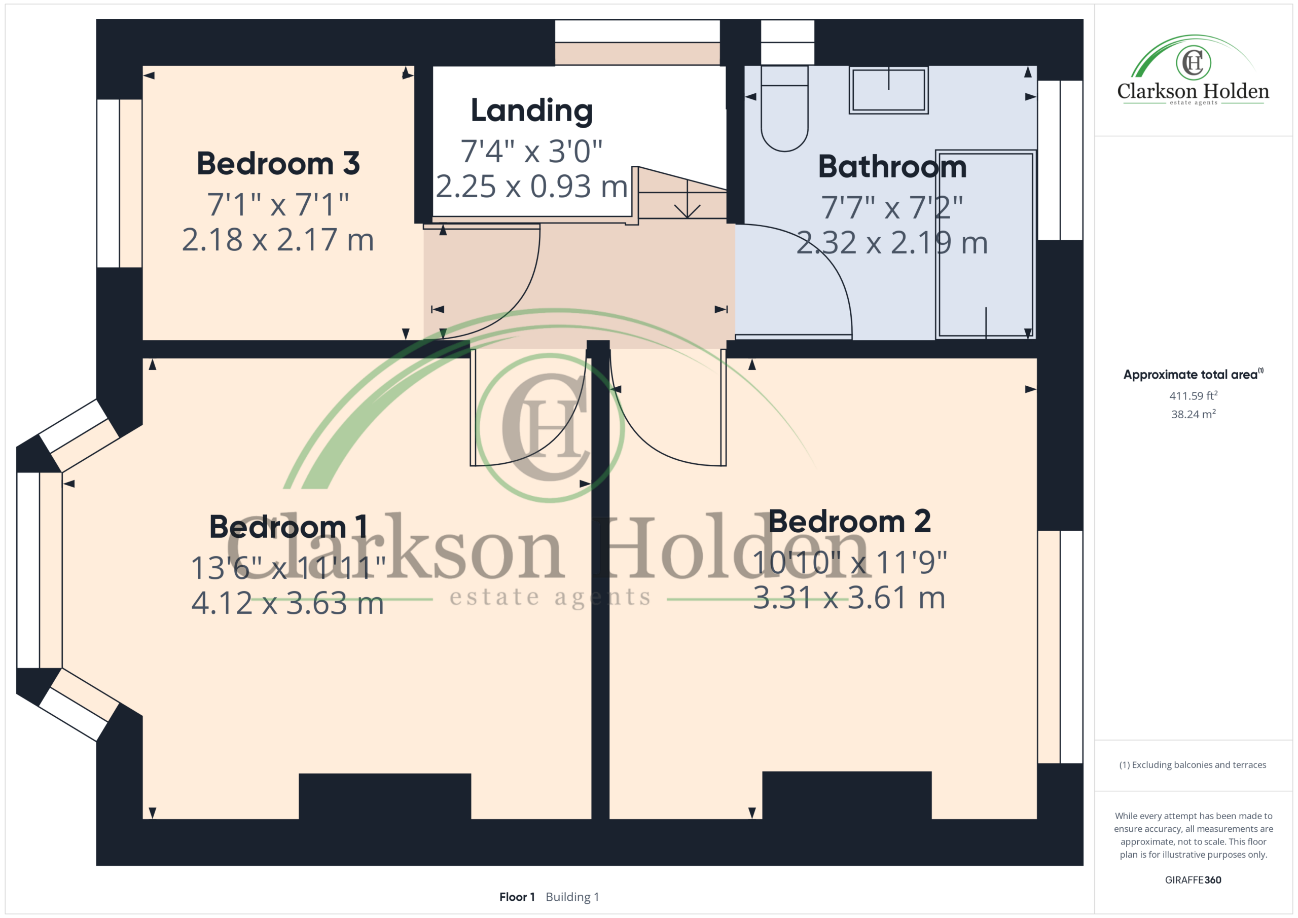 Bedroom 1 13' 6" x 11' 11" (4.12m x 3.63m)