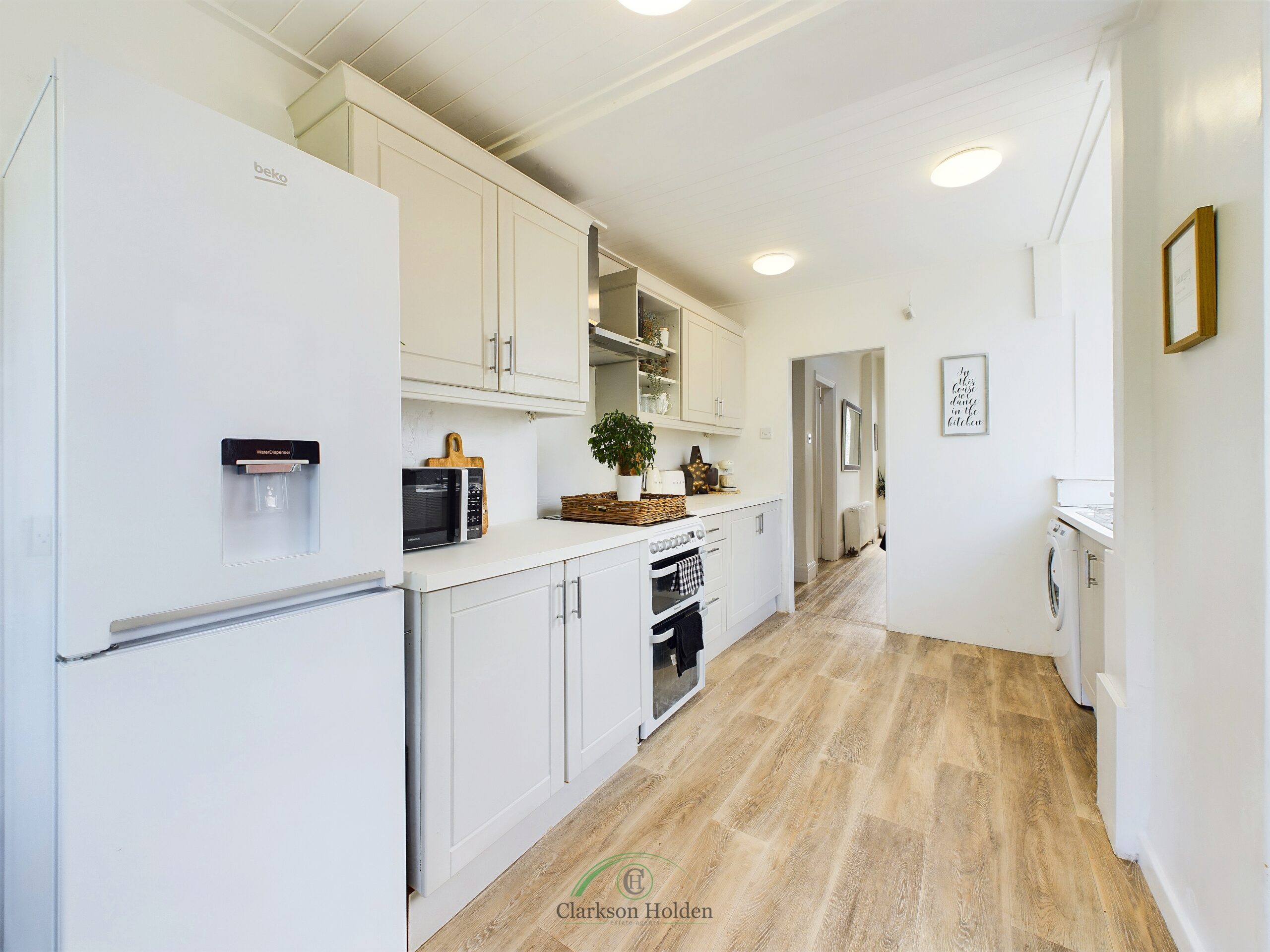 Spacious kitchen with dining area. Fitted with base and wall units. UPVC windows to side and rear elevations. Side door providing access to rear.