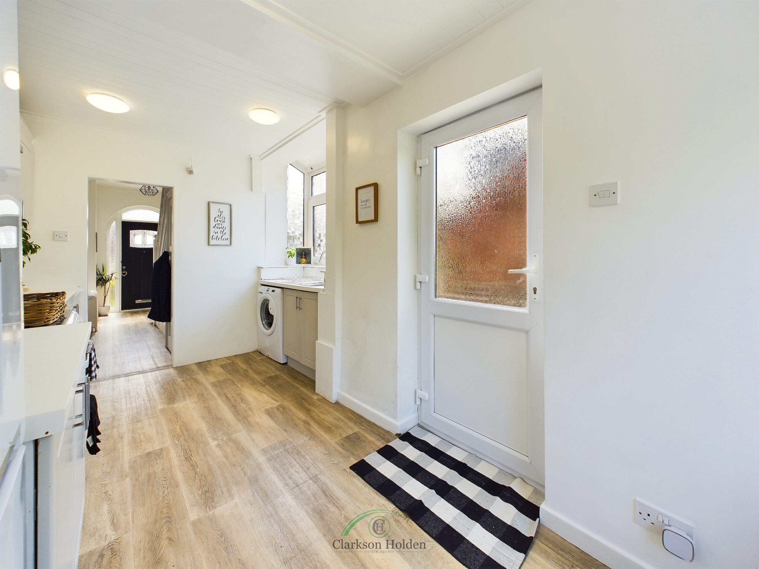 Large UVPC window to rear elevation. Features original wooden panelled door. Radiator.