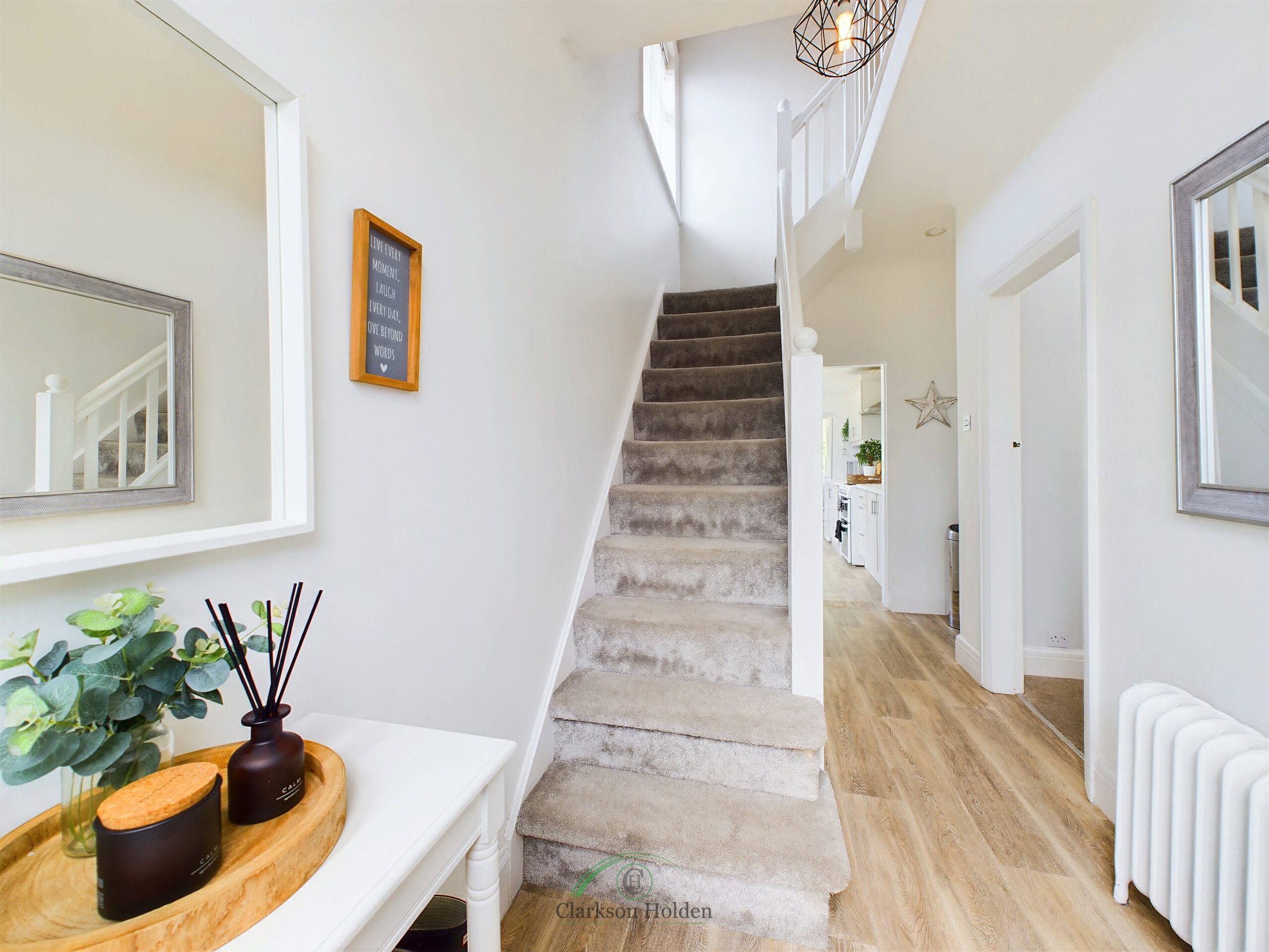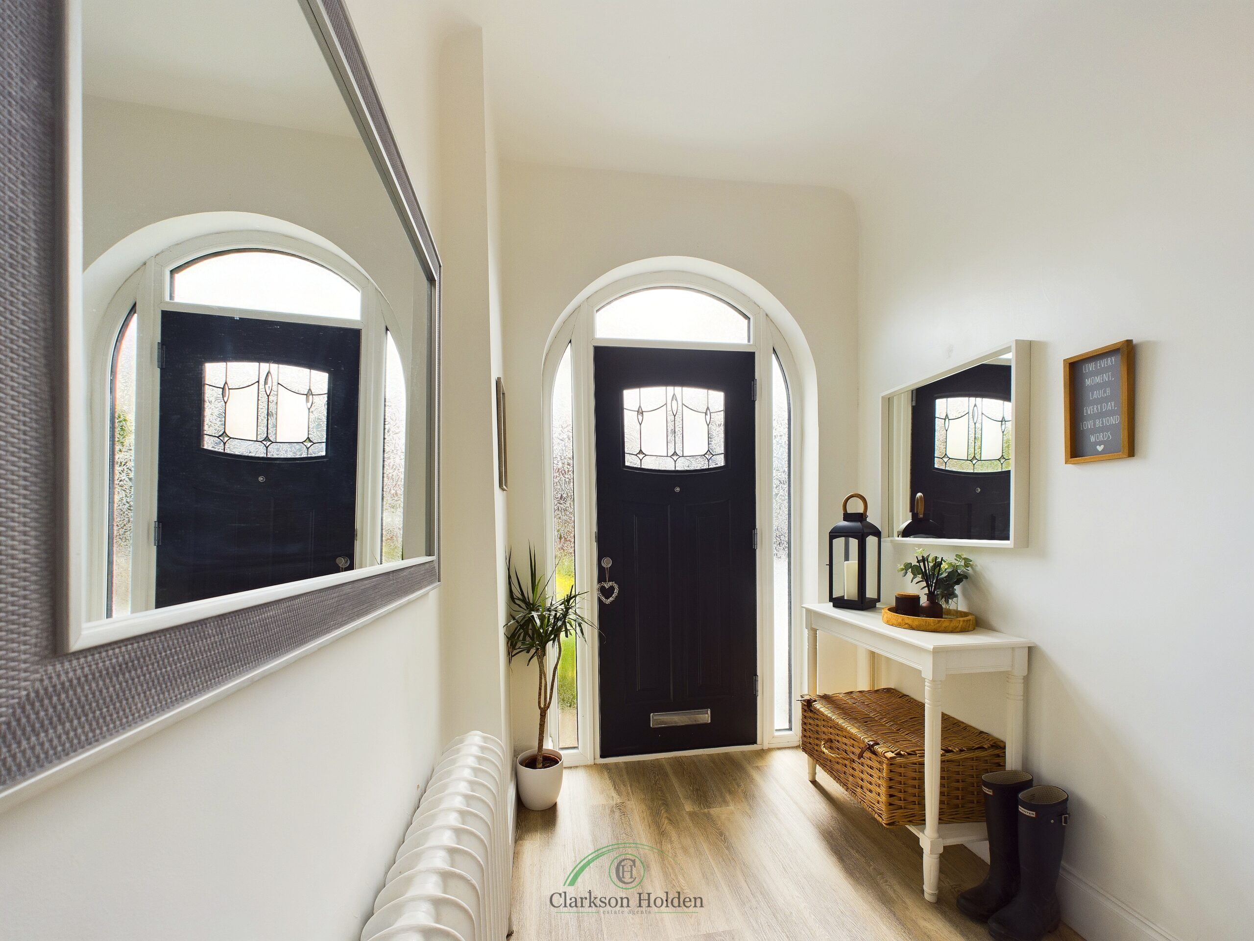 Spacious light hallway with a classic contemporary feel. Leads to all ground floor rooms. Stairs leading to first floo. Featured arched entrance with original door and stained glass window.