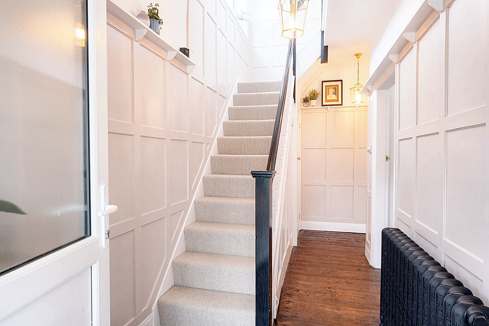 Upstairs, bedrooms 1 & 2 benefit from fitted wardrobes for efficient storage solutions, while the contemporary bathroom is a luxurious retreat, featuring a separate shower and sleek fixtures.