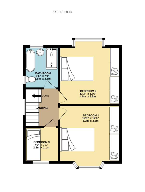 Natural light floods in through the bay windows in the lounge and bedrooms, creating bright and airy living spaces.