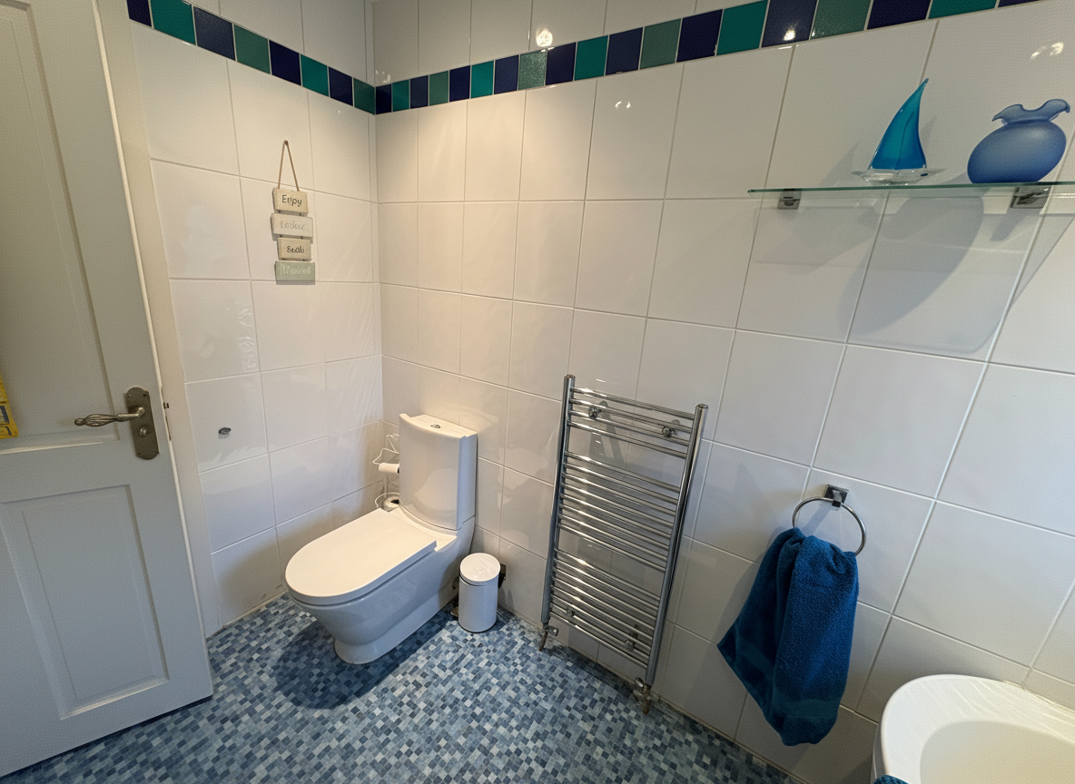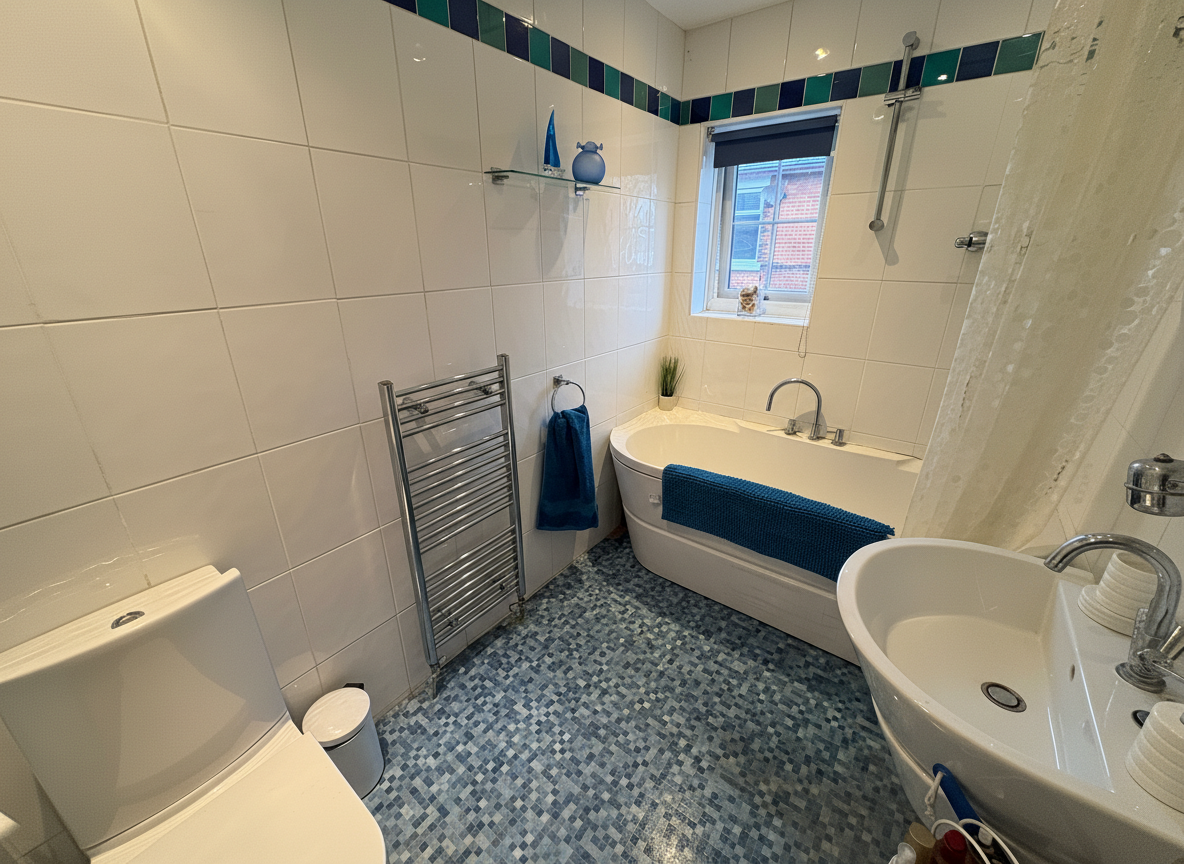 The bathroom is attractively appointed with a contemporary suite and includes a shower for added convenience.