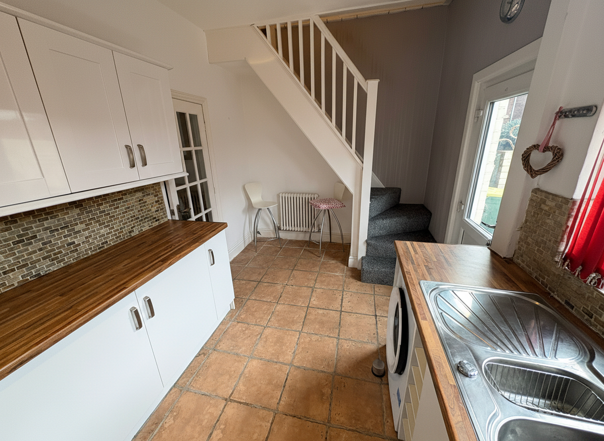 The fitted kitchen is modern and practical, providing plenty of storage and workspace for those who enjoy cooking or entertaining.