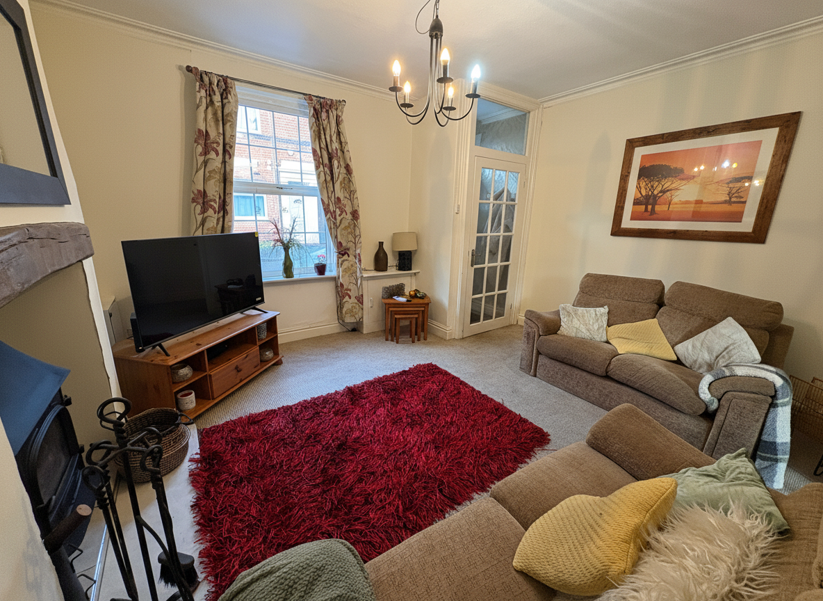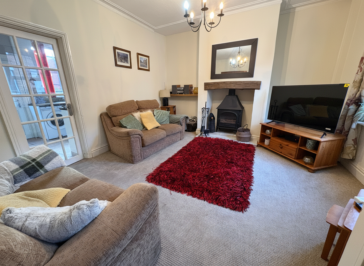 Upon entering, you are welcomed into a spacious living room that features a charming wood burner (ideal for cozy evenings), complemented by tasteful décor and ample natural light.