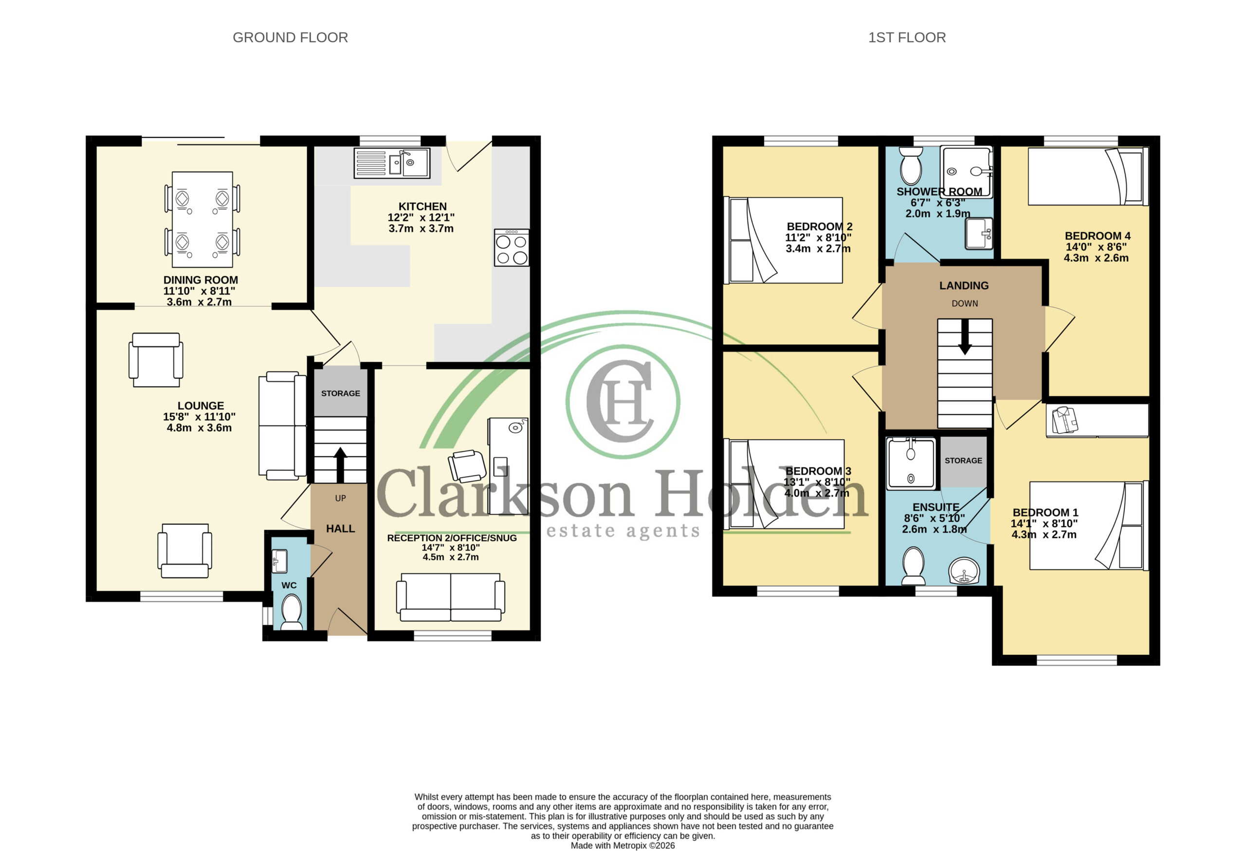 Upstairs, the master bedroom benefits from a stylish ensuite shower room and fitted wardrobes, providing both comfort and functionality.