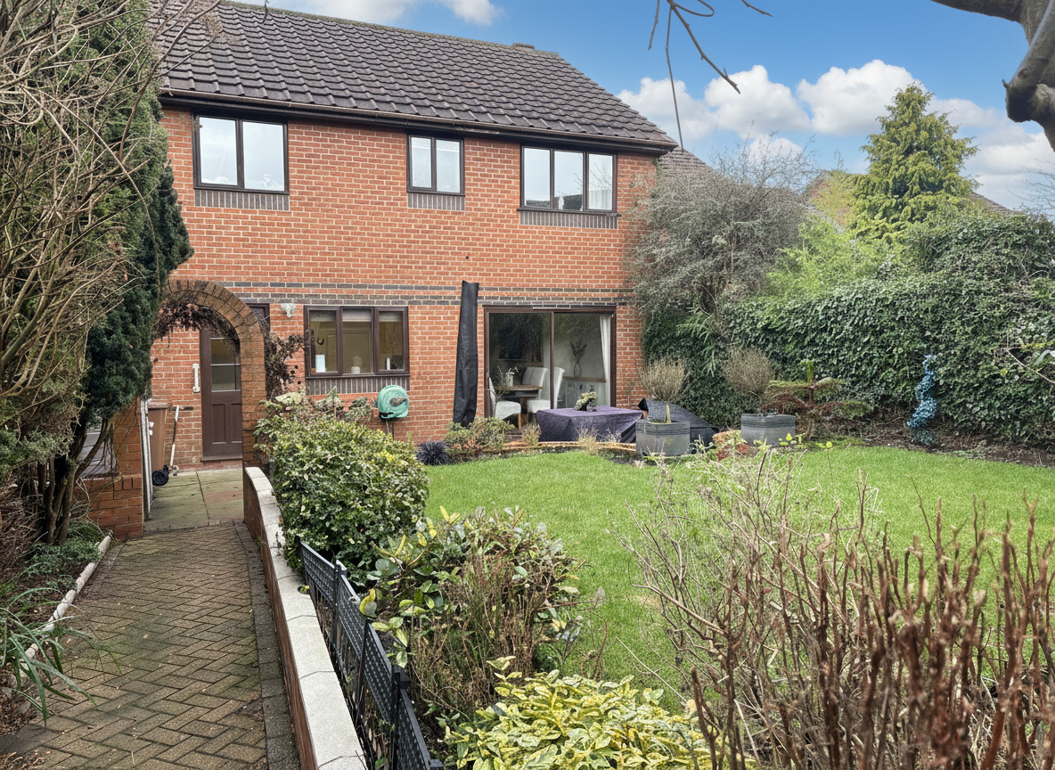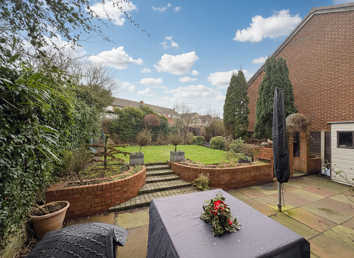 The private rear garden is a true highlight, featuring a well-maintained lawn and a spacious patio area (ideal for al fresco dining, summer barbeques, or simply relaxing outdoors).