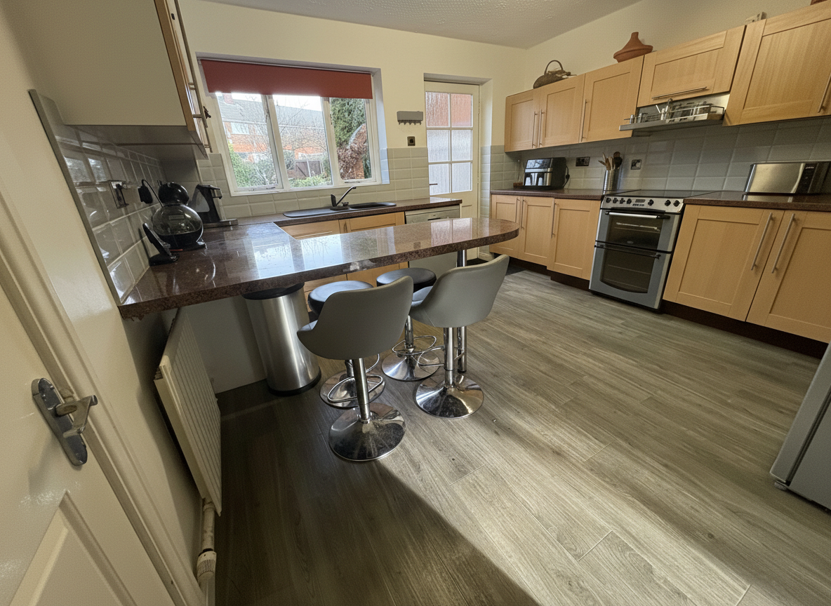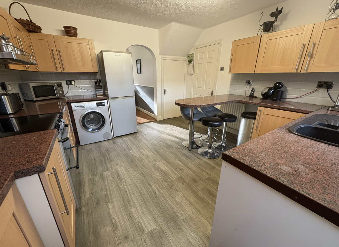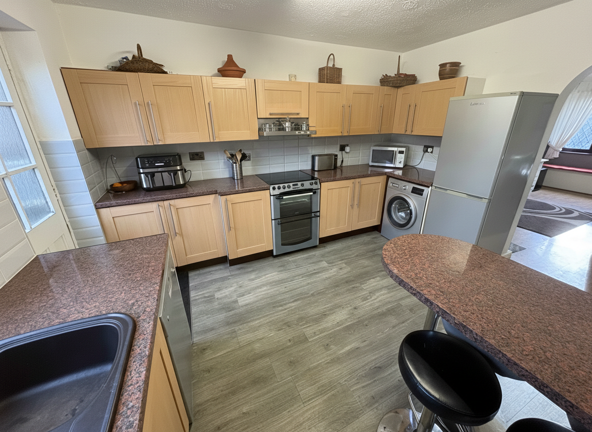 The kitchen is well-appointed with quality fittings and generous storage, making it a pleasure for home cooks.