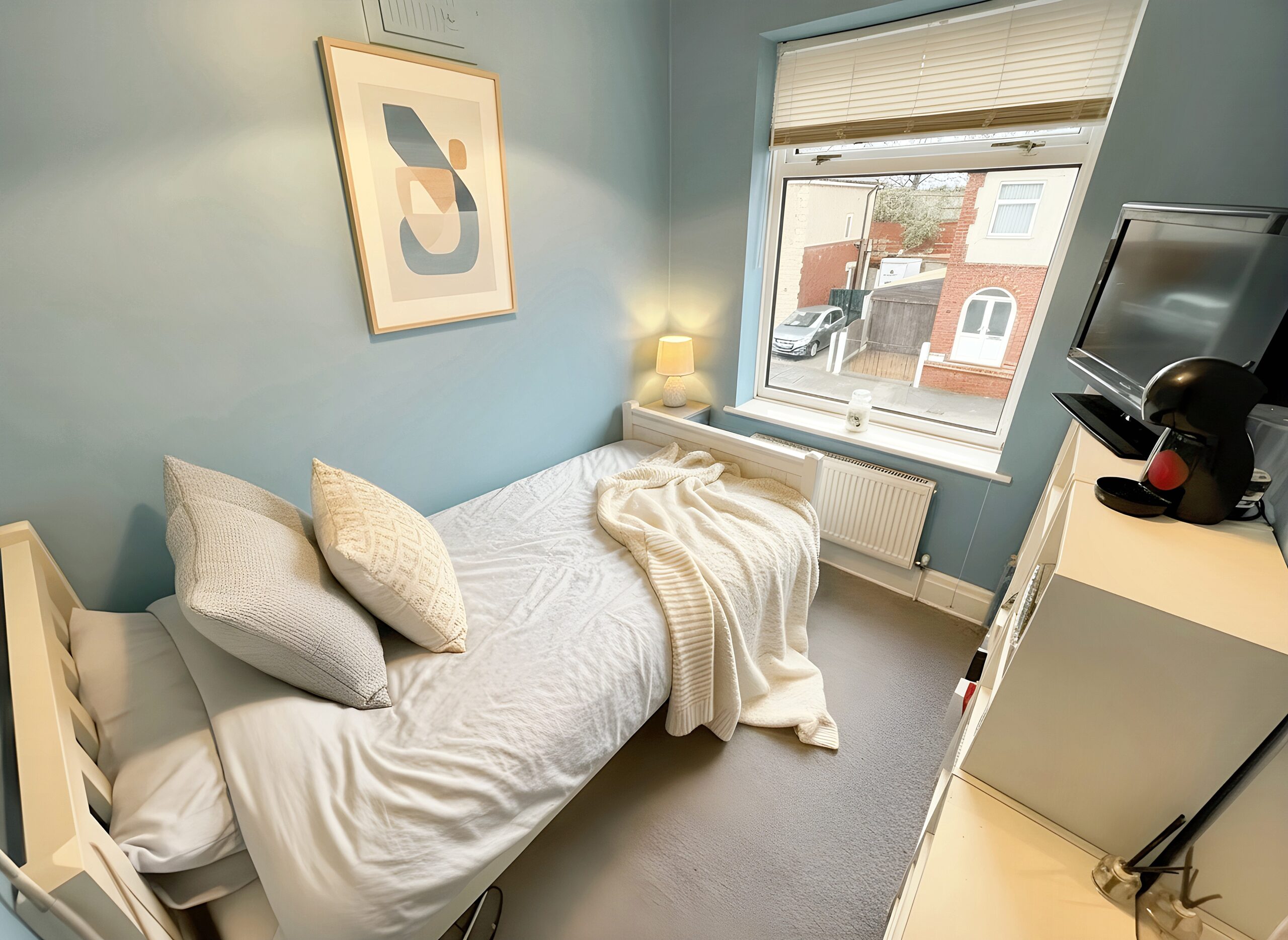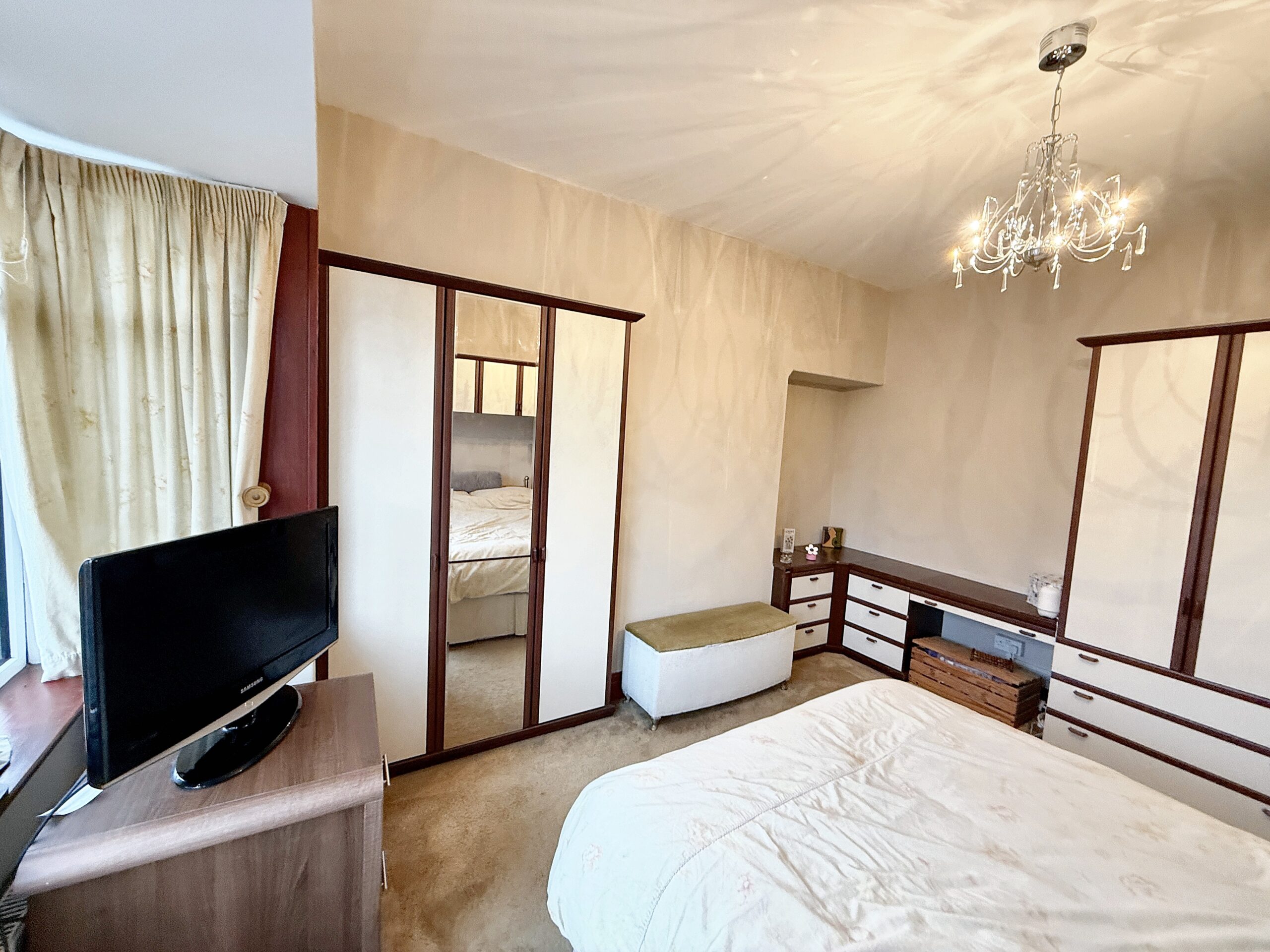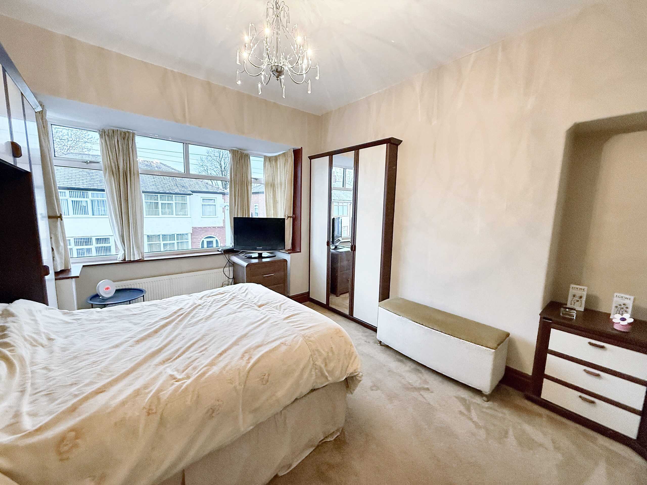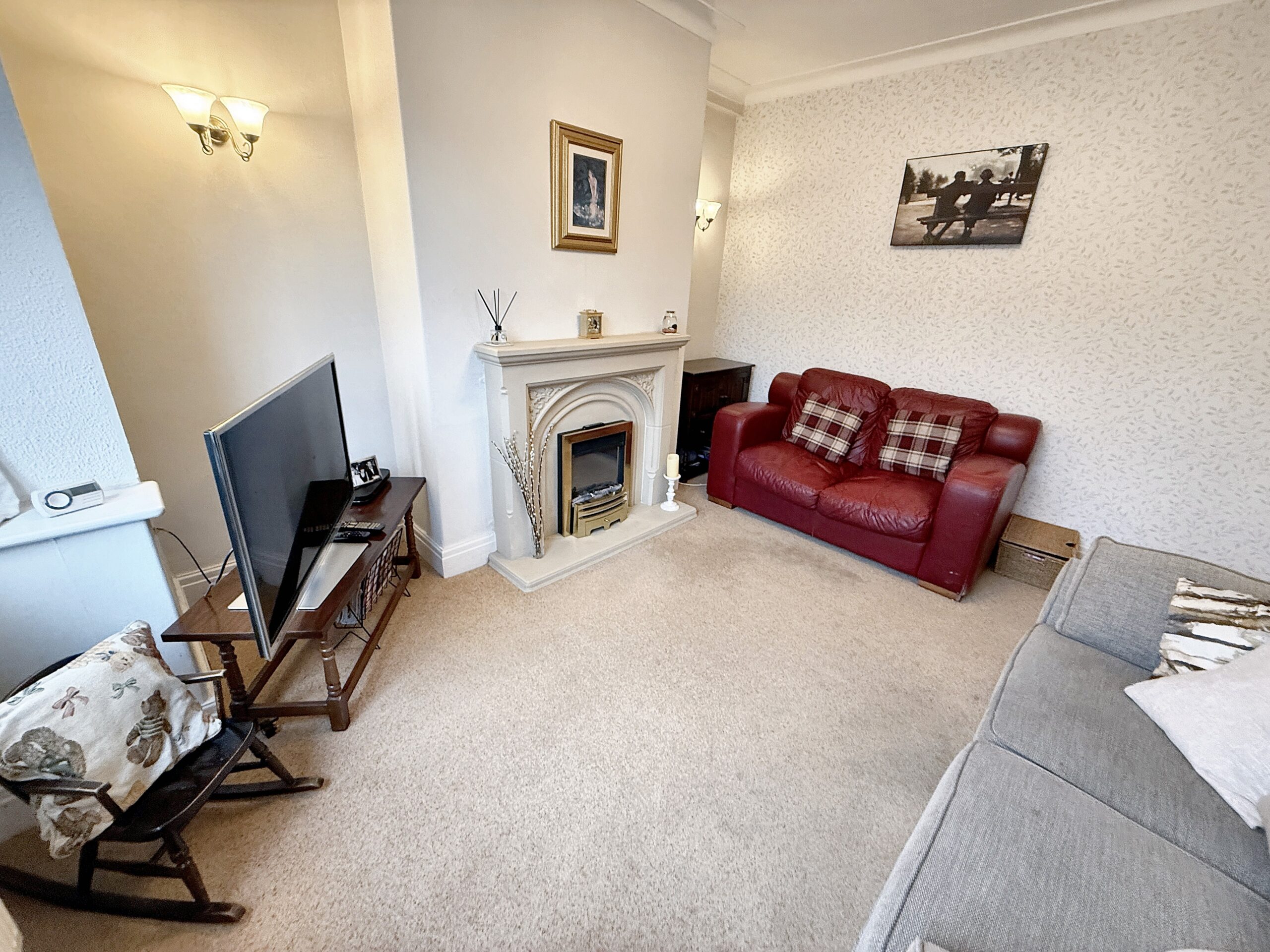 Upstairs, the property offers three well-proportioned bedrooms. The principal and second bedrooms benefit from fitted wardrobes, providing ample storage and helping to keep the rooms organised.