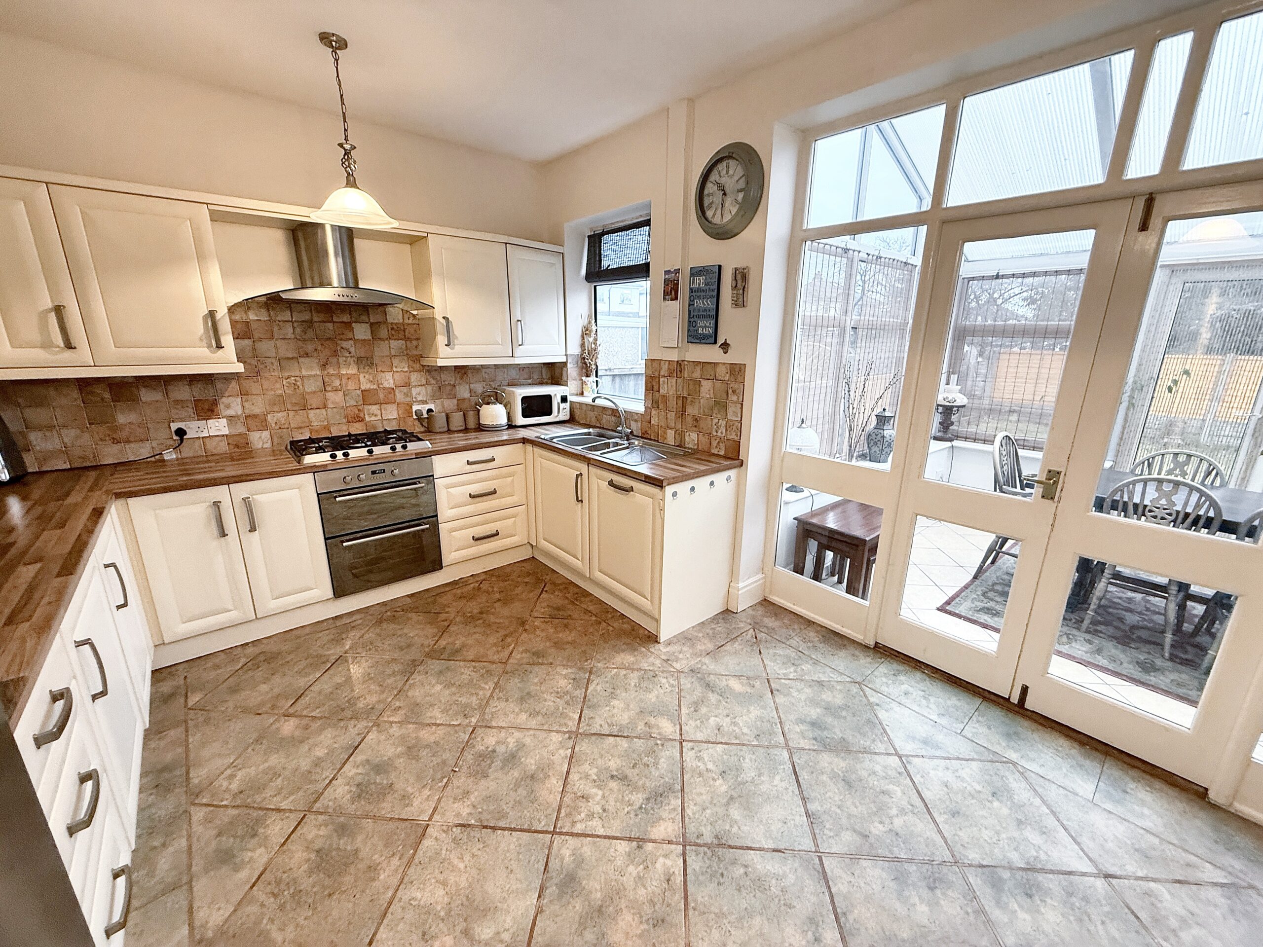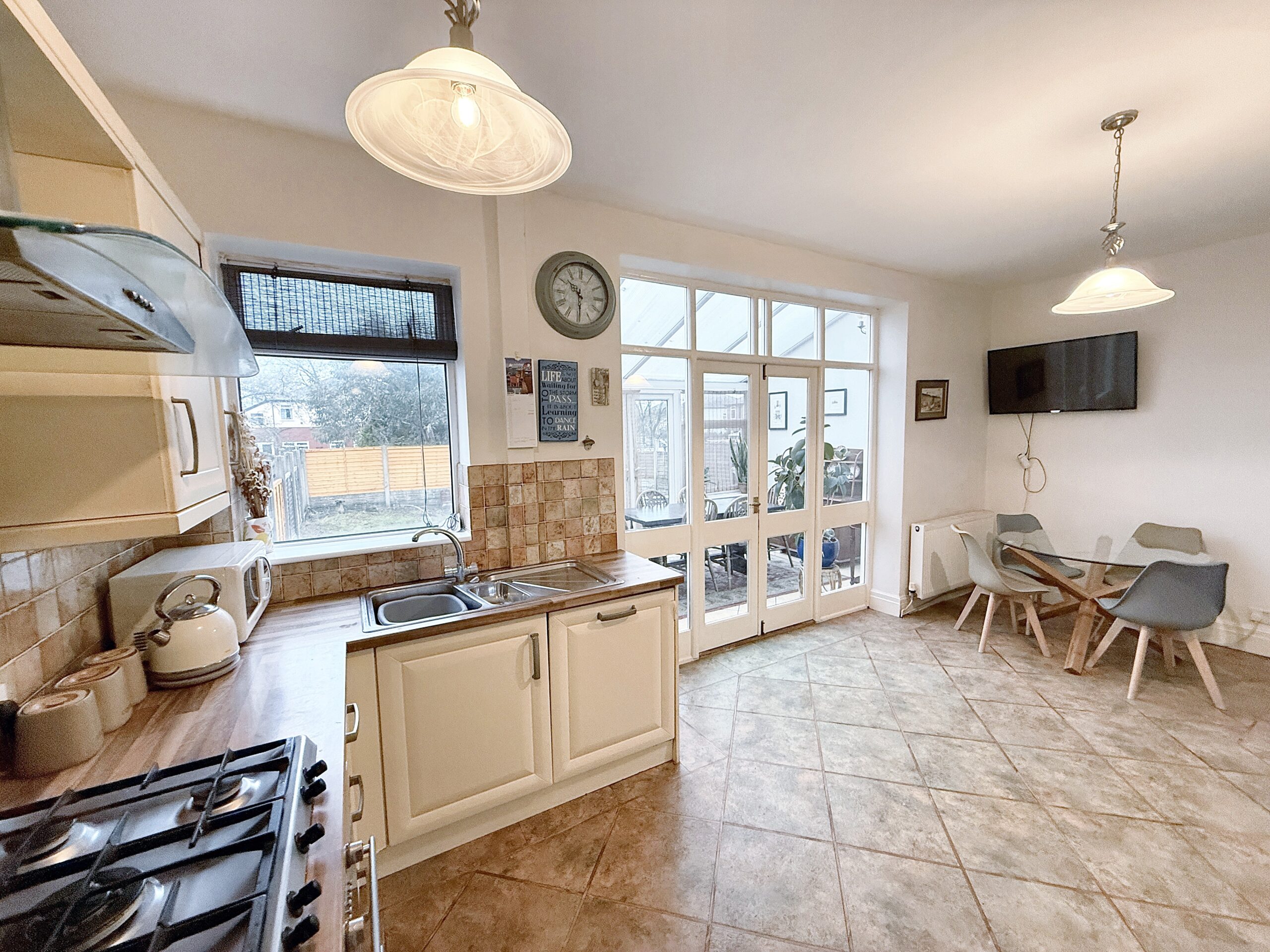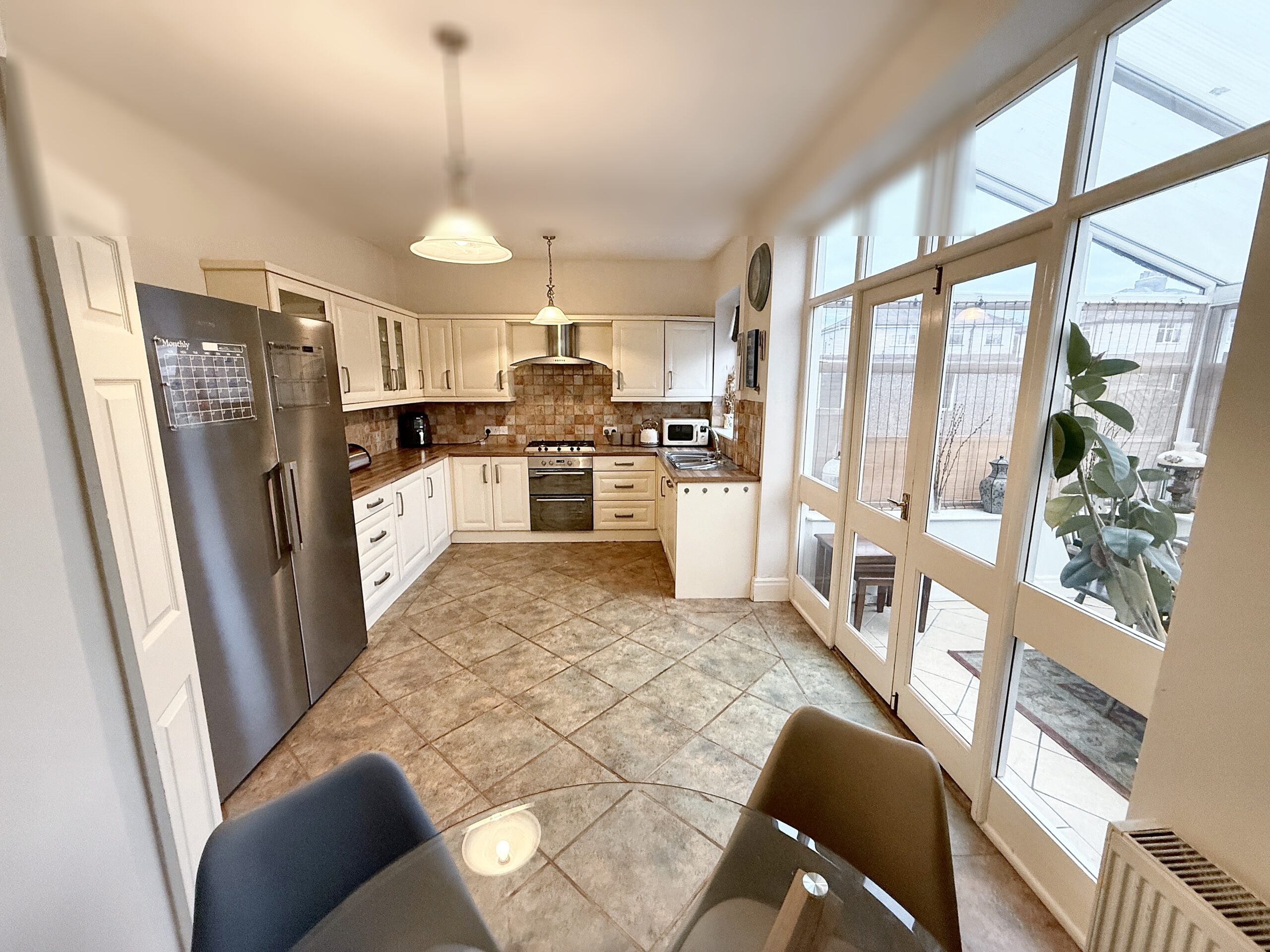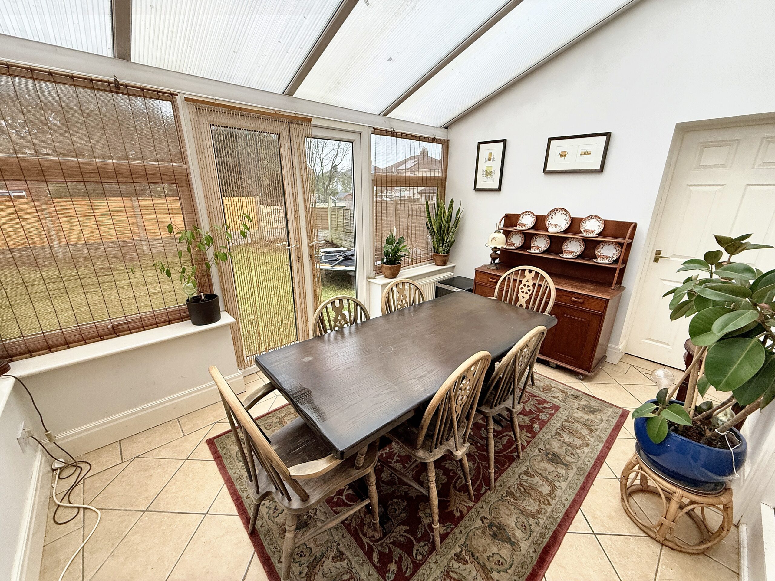 The conservatory, accessed from the kitchen/diner, provides an additional reception space that is filled with natural light. This room is perfect for use as a playroom, reading nook, or a tranquil spot to unwind.