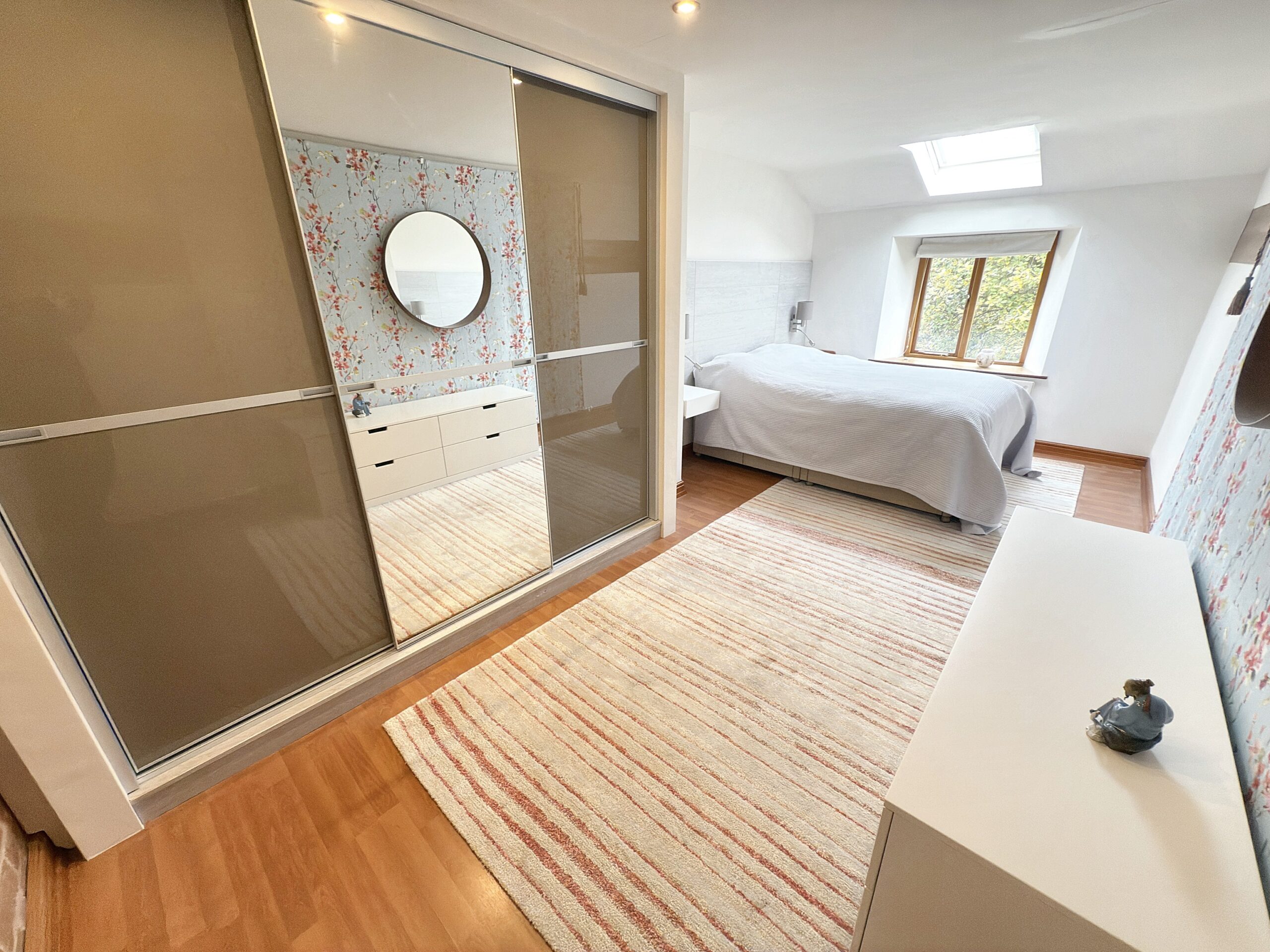 Upstairs, the bedrooms are a haven of comfort and style, some adorned with fitted wardrobes and Velux windows providing natural light and a touch of sophistication.