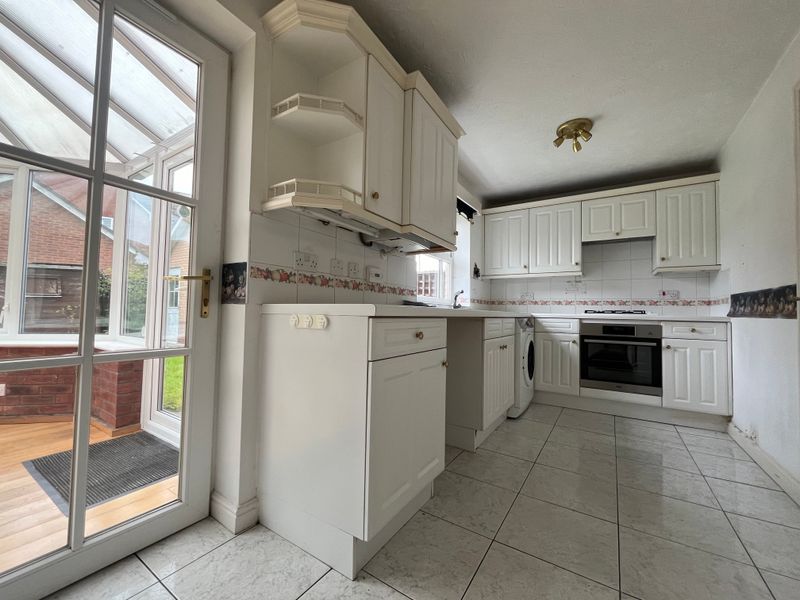 Kitchen area with built in appliances and storage units. Kitchen leads to conservatory, dining room and hallway.