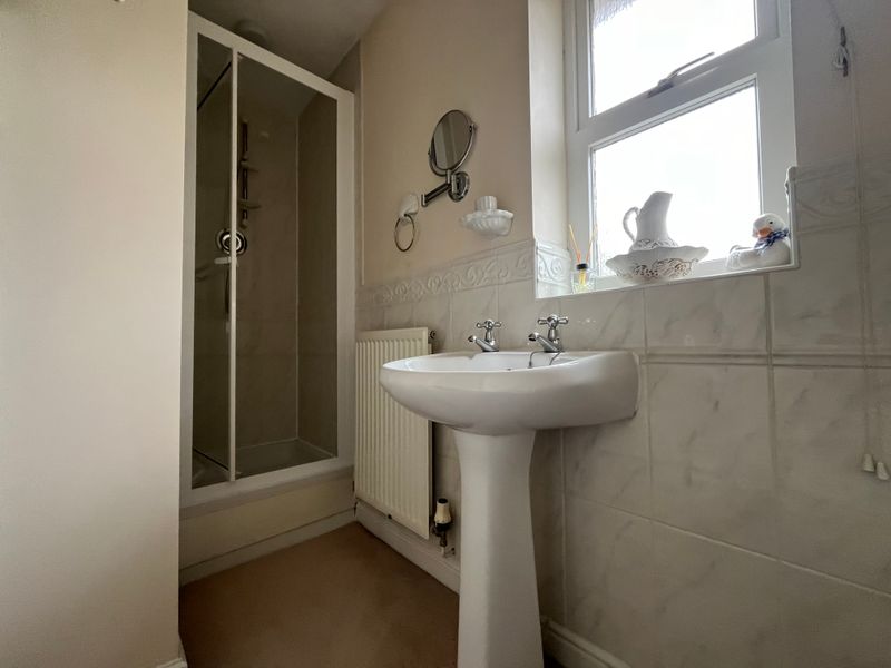 En-suite bathroom with walk in shower, WC and hand wash basin.