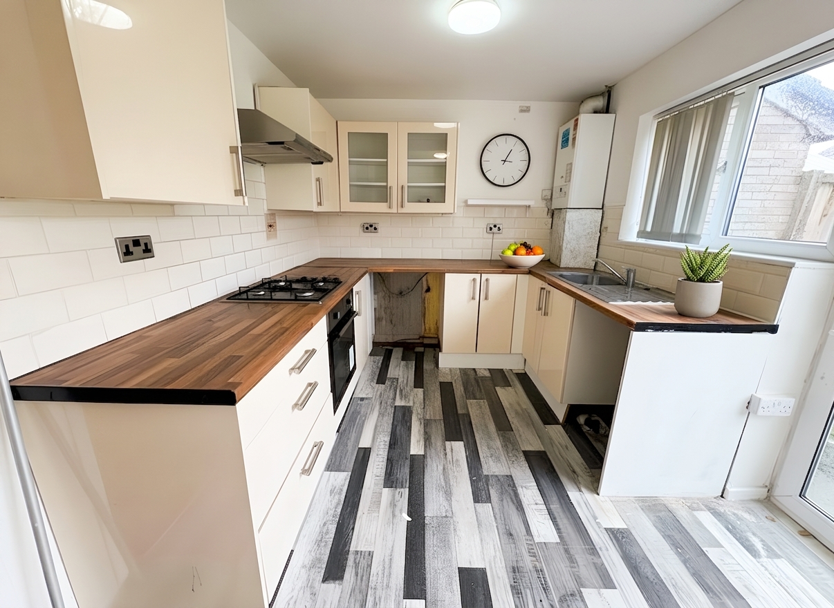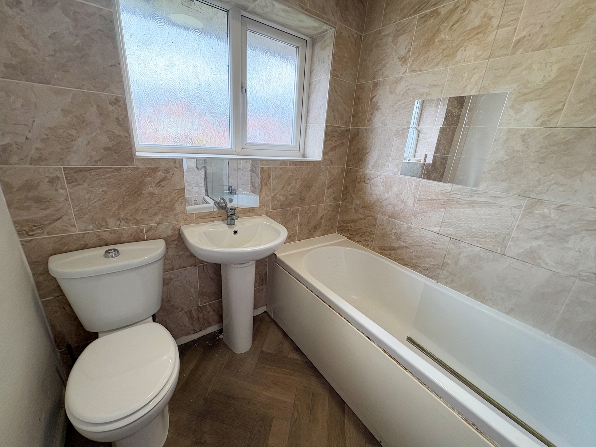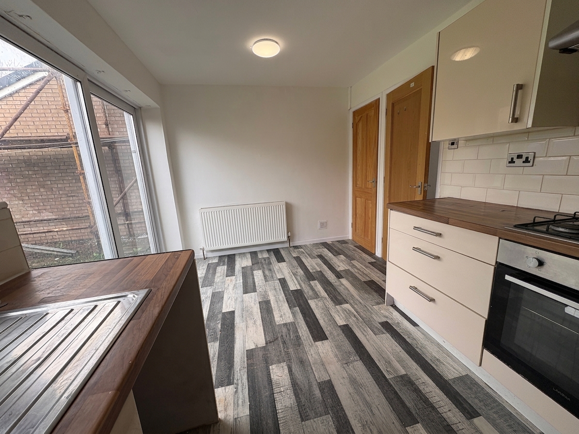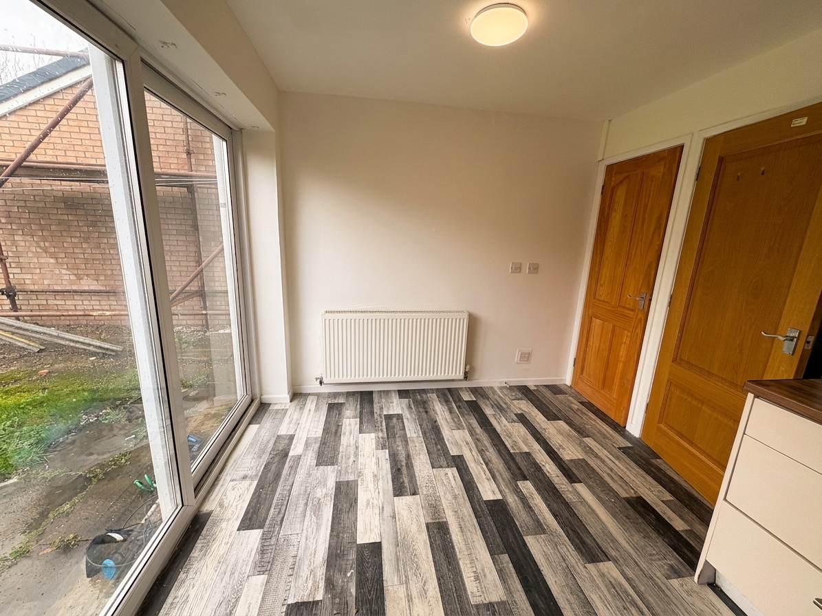 The well appointed kitchen features modern fittings, with patio doors that open directly onto the rear garden, allowing for an abundance of natural light and seamless indoor-outdoor living.