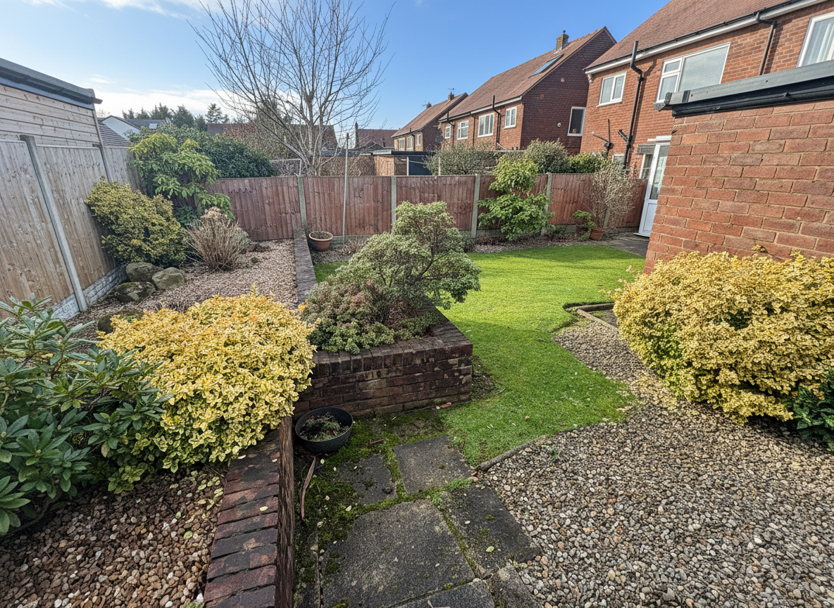 The garden is bordered by mature fencing and planting, offering a sense of seclusion and peace, making it a safe and enjoyable space for children and pets.