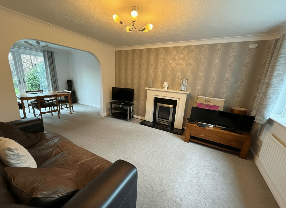 The property welcomes you with a generous entrance hallway leading to an inviting open-plan lounge/diner, complemented by a modern kitchen (ideal for both every-day family meals and entertaining guests).