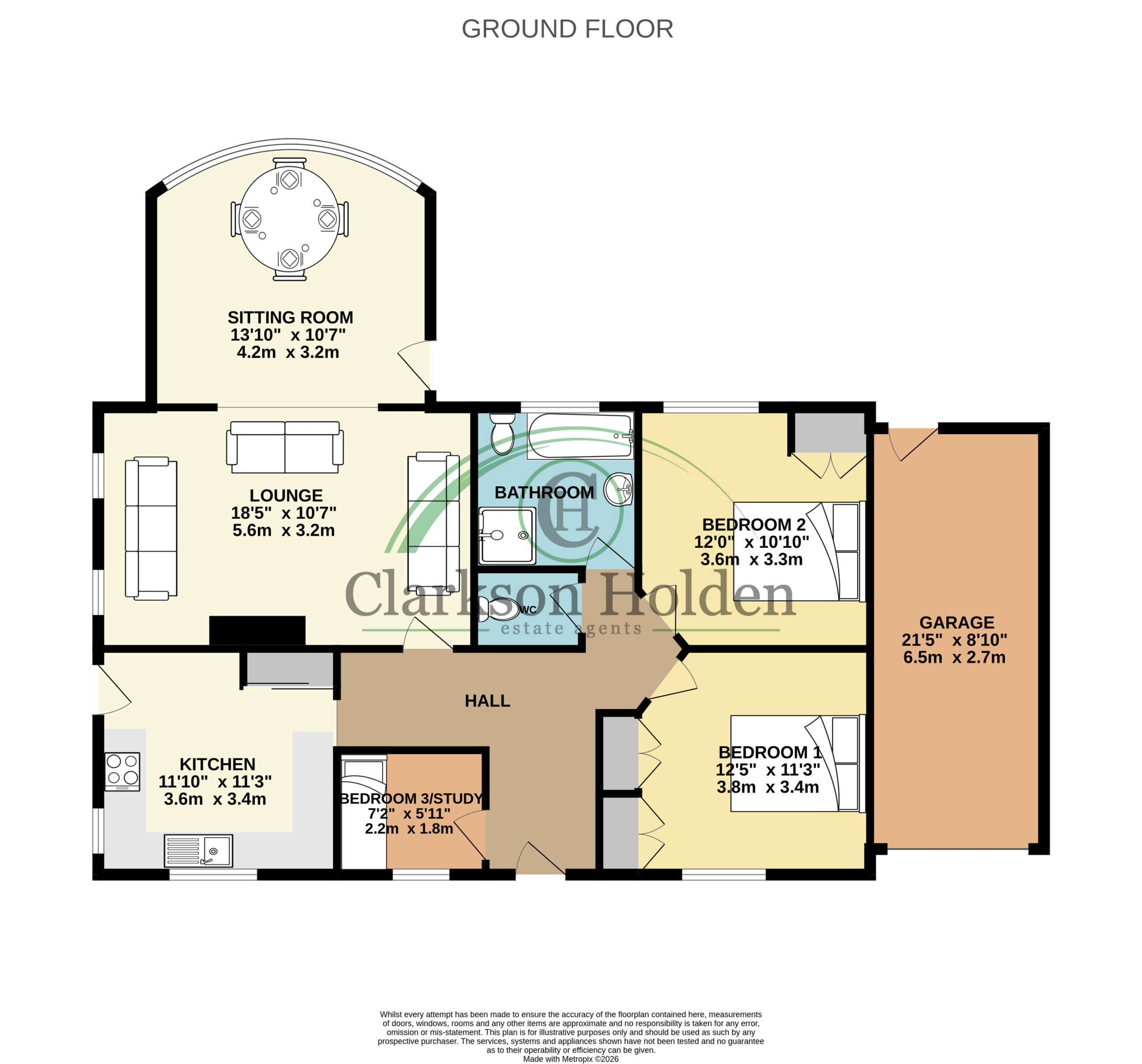 The double bedrooms are generously proportioned, with the principal bedroom benefiting from built-in wardrobes that offer ample storage space.