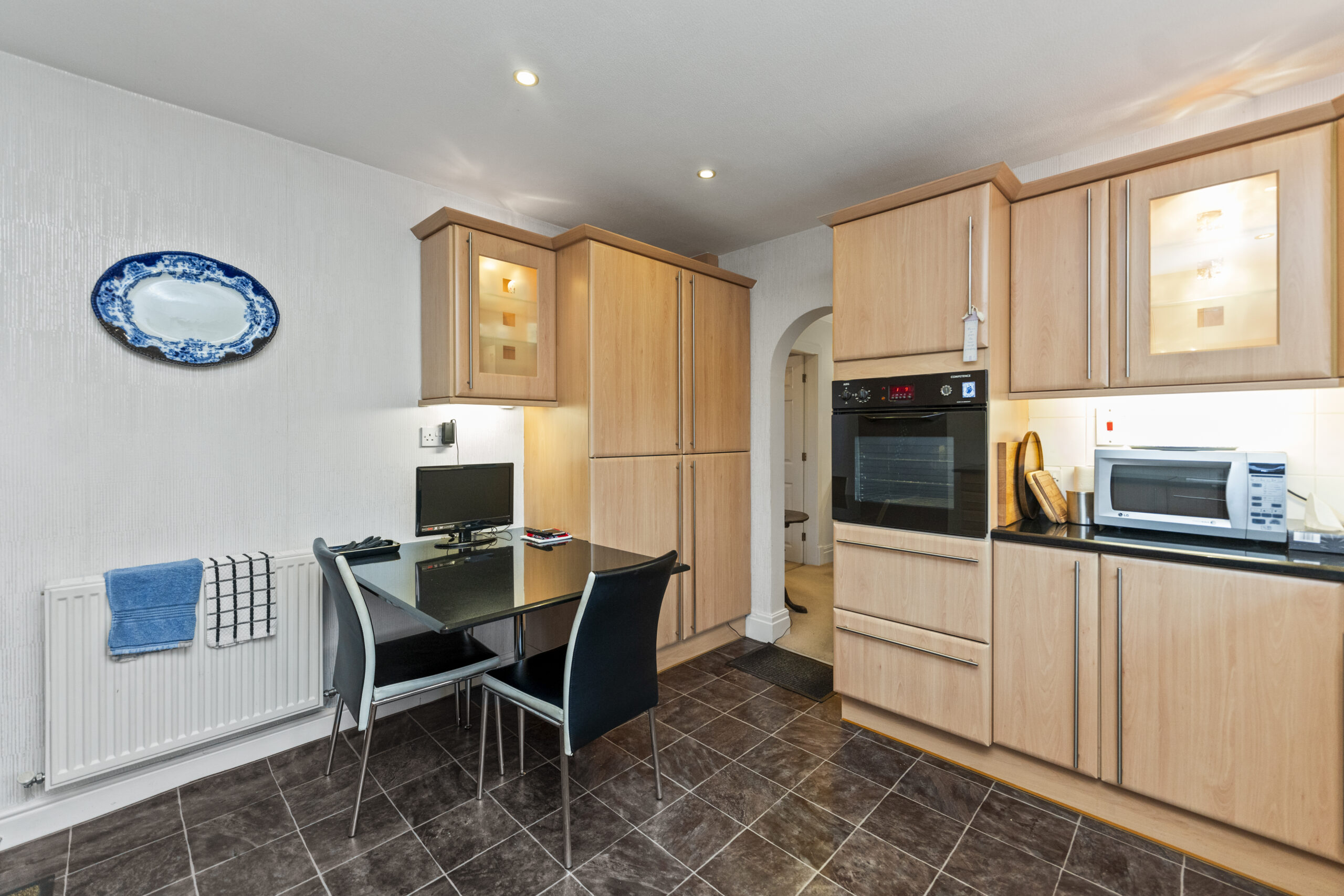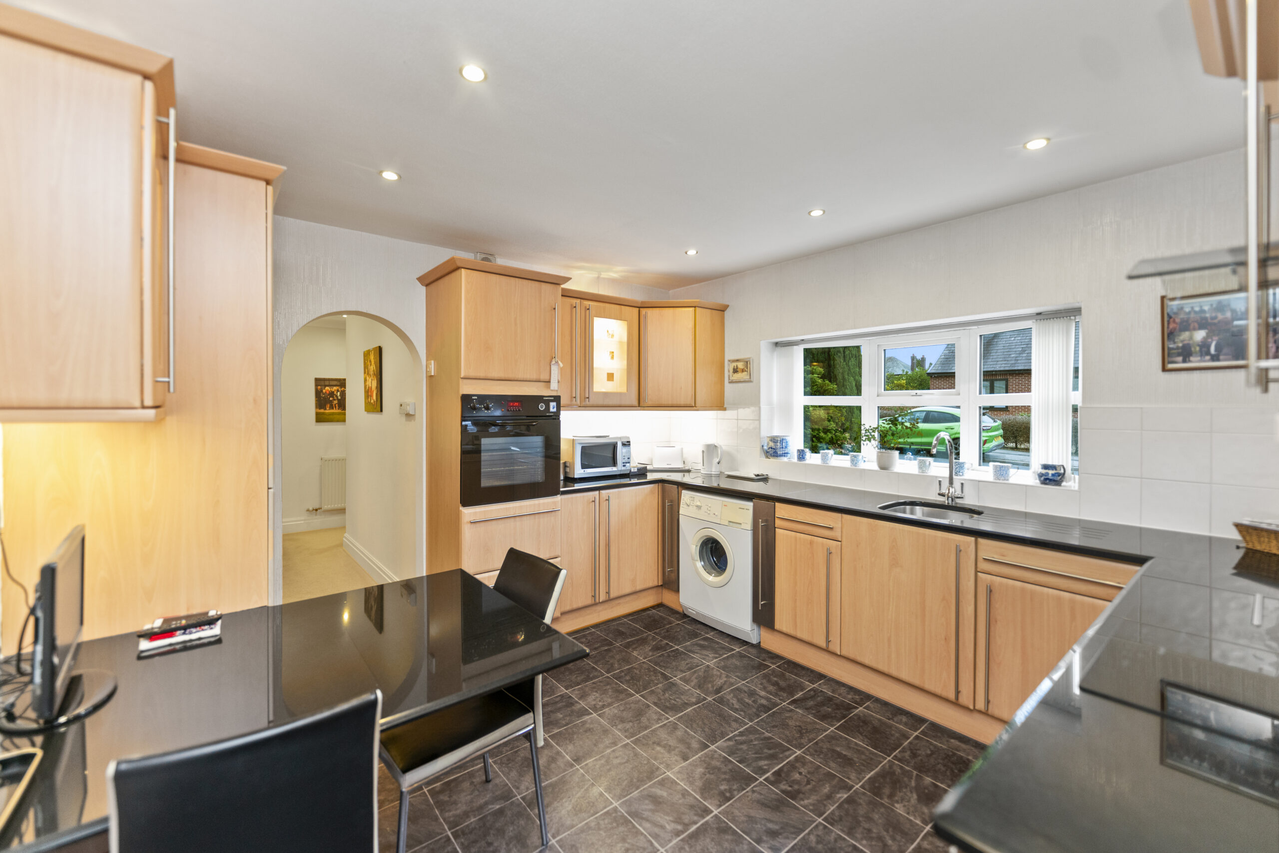 The fully fitted kitchen comes complete with a range of built-in appliances, ensuring a modern and convenient cooking environment.