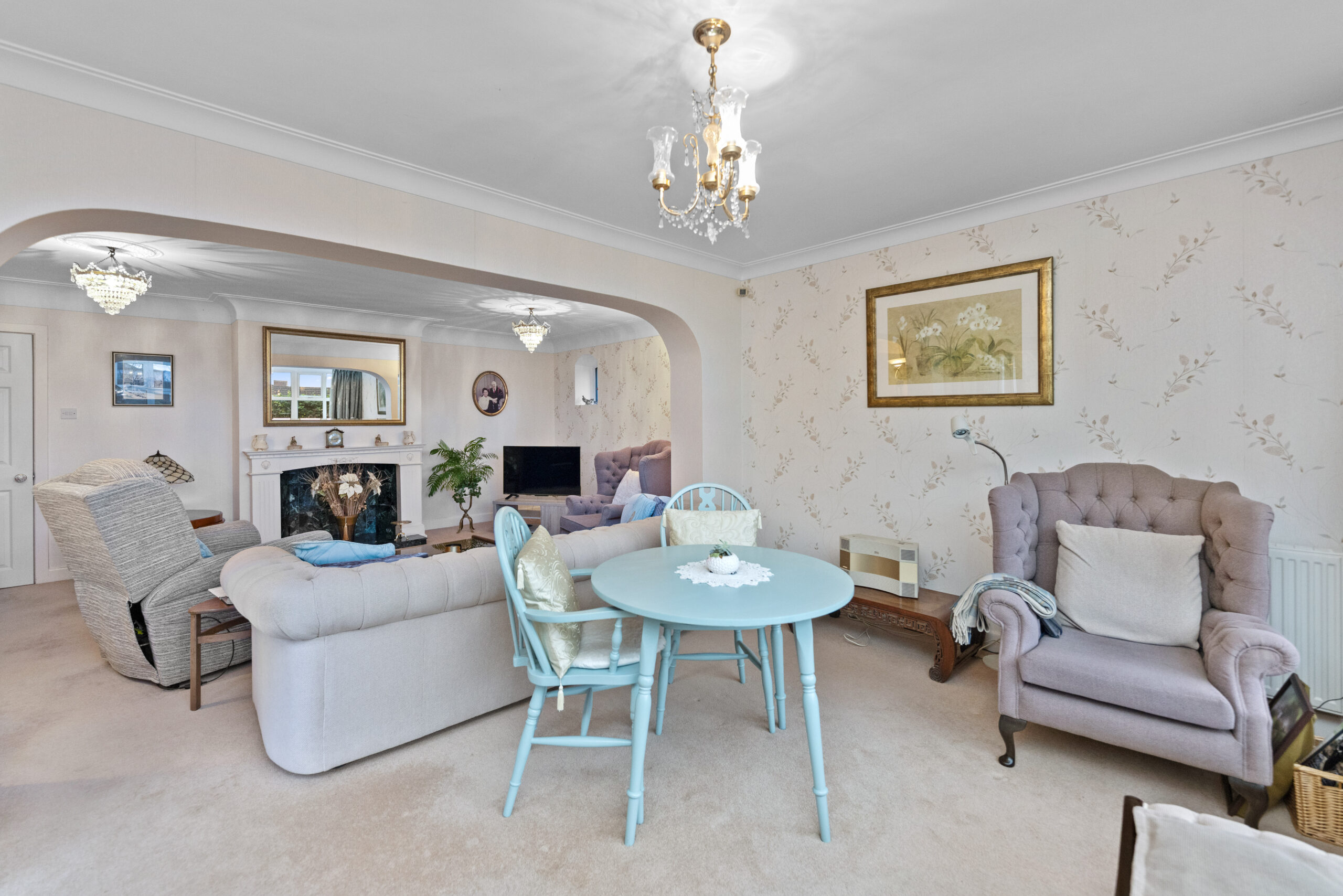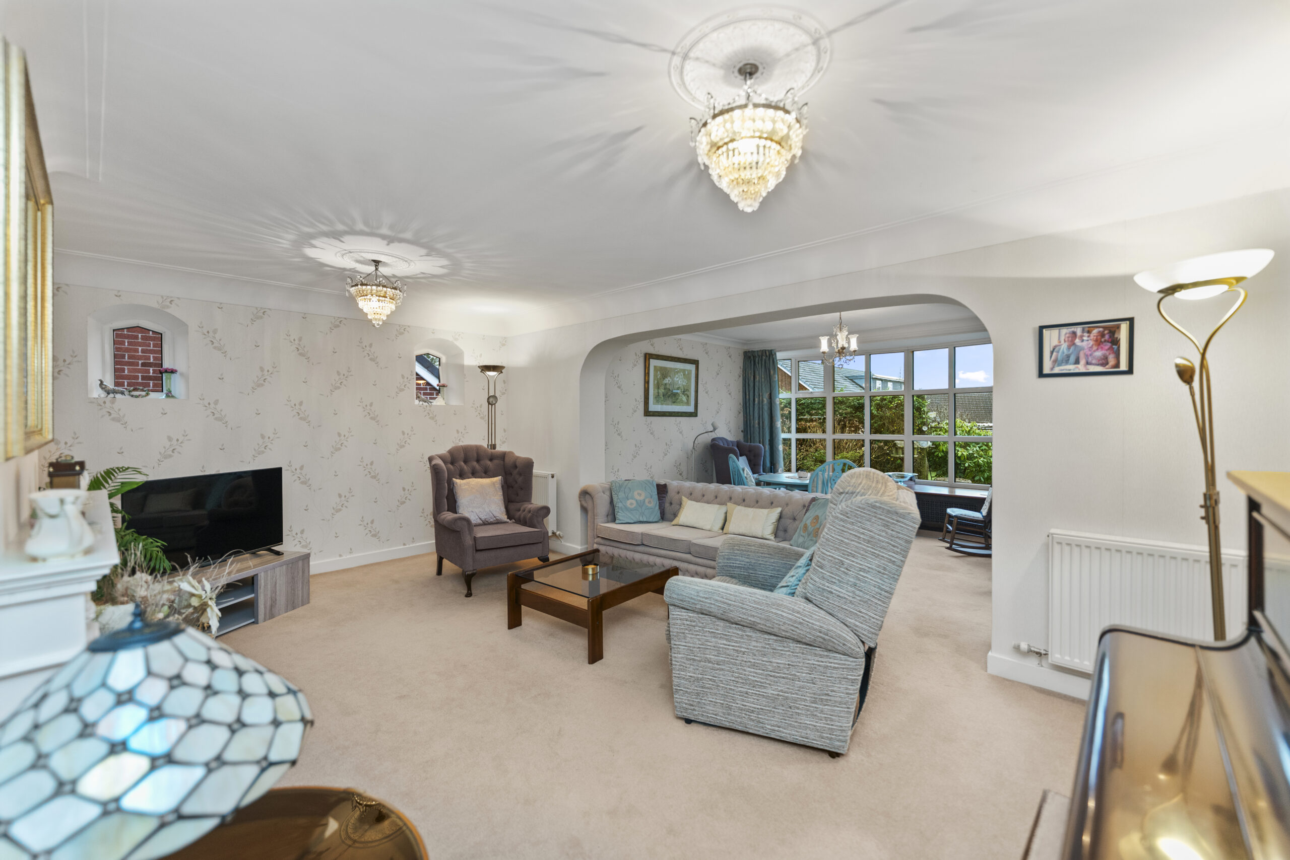 The welcoming entrance leads into a spacious open-plan lounge and sitting room, providing a versatile living area that is both bright and inviting, ideal for relaxing or entertaining guests.