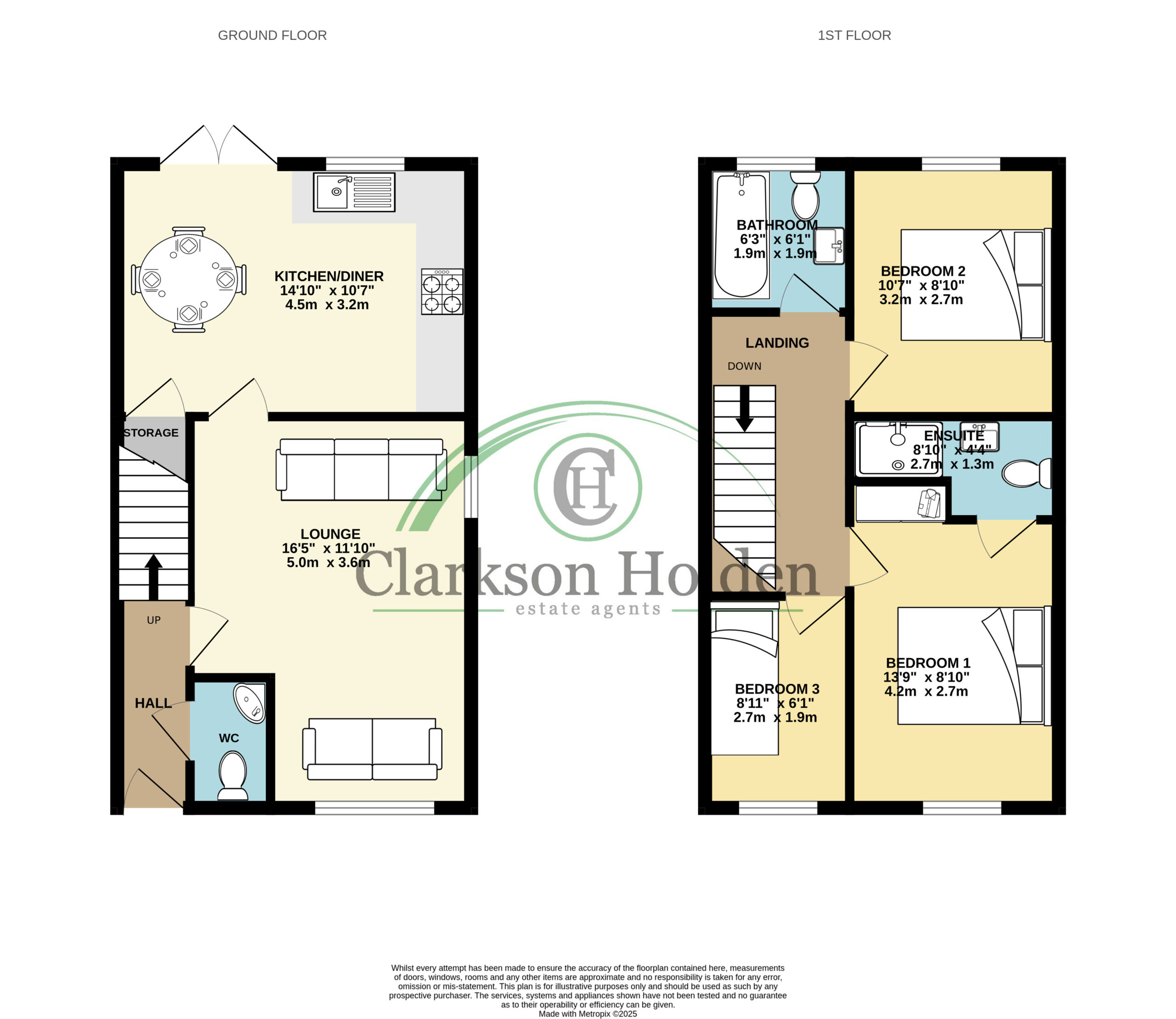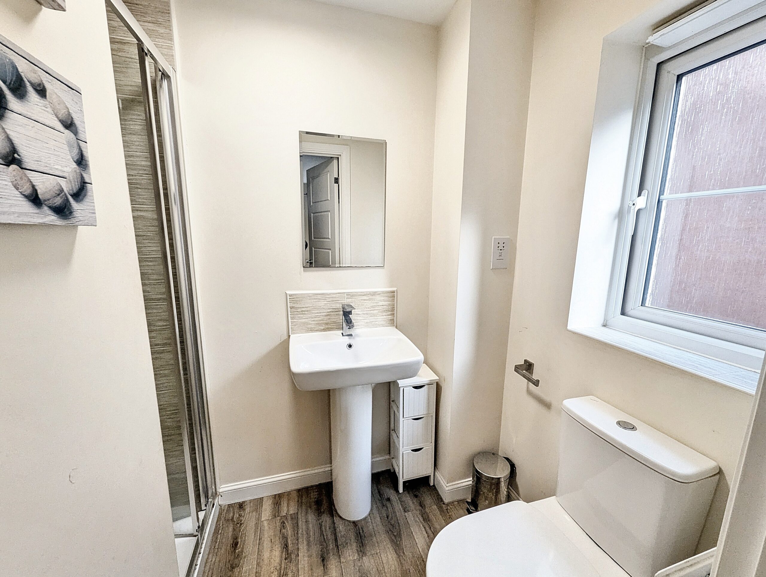 Each bedroom benefits from ample natural light. Two contemporary bathrooms (family bathroom and en-suite) and a downstairs WC feature modern fixtures, a walk-in shower, and a sleek bath.