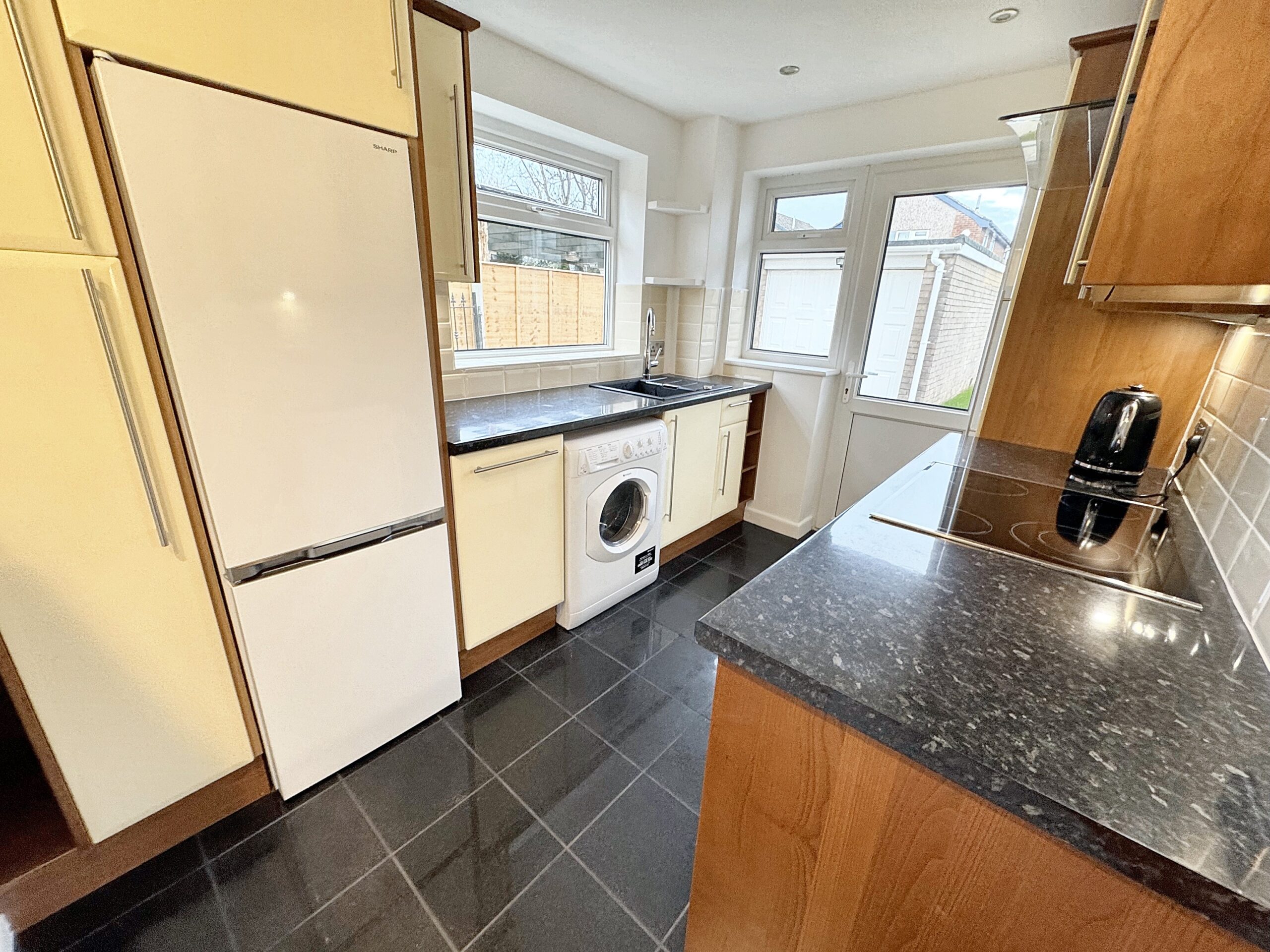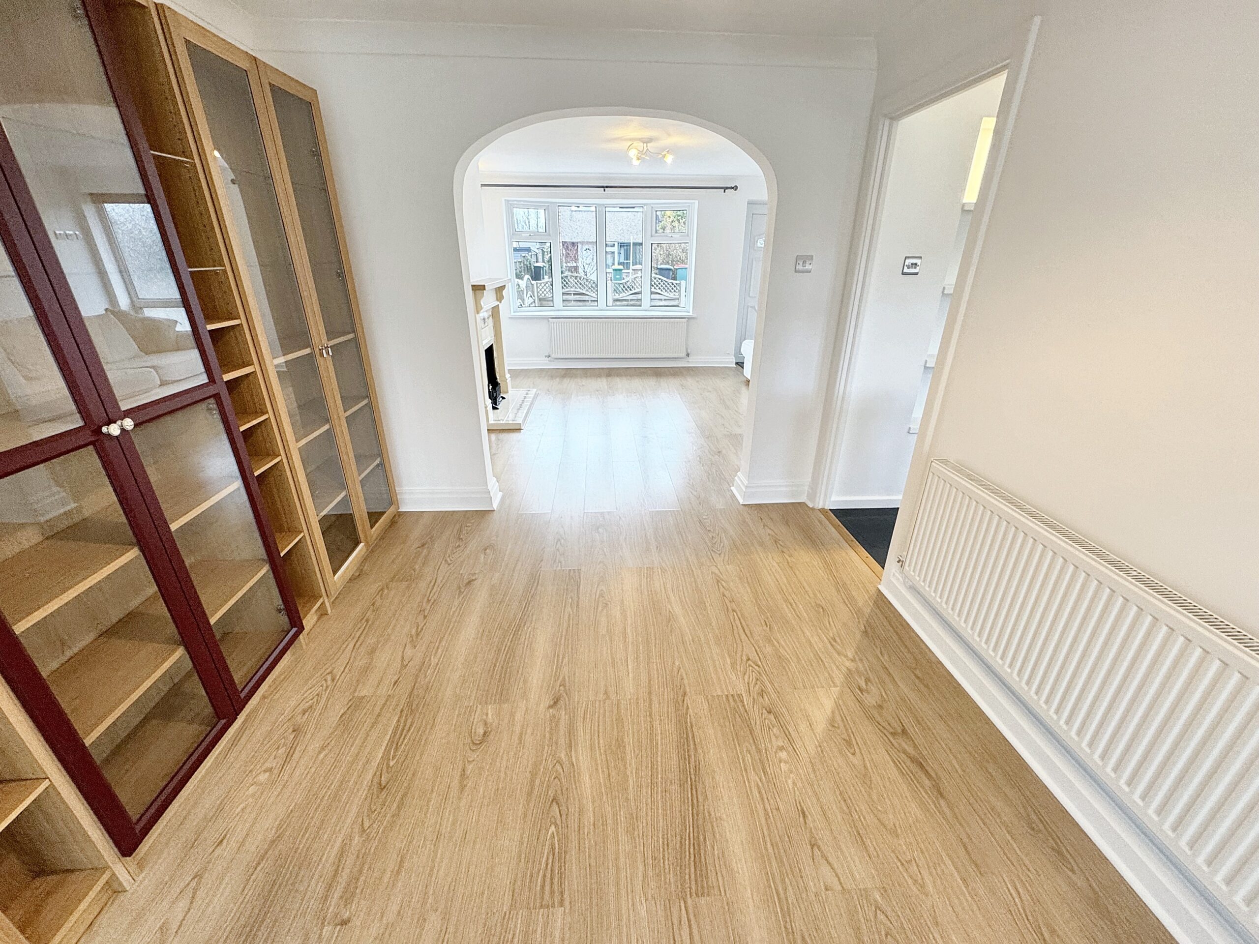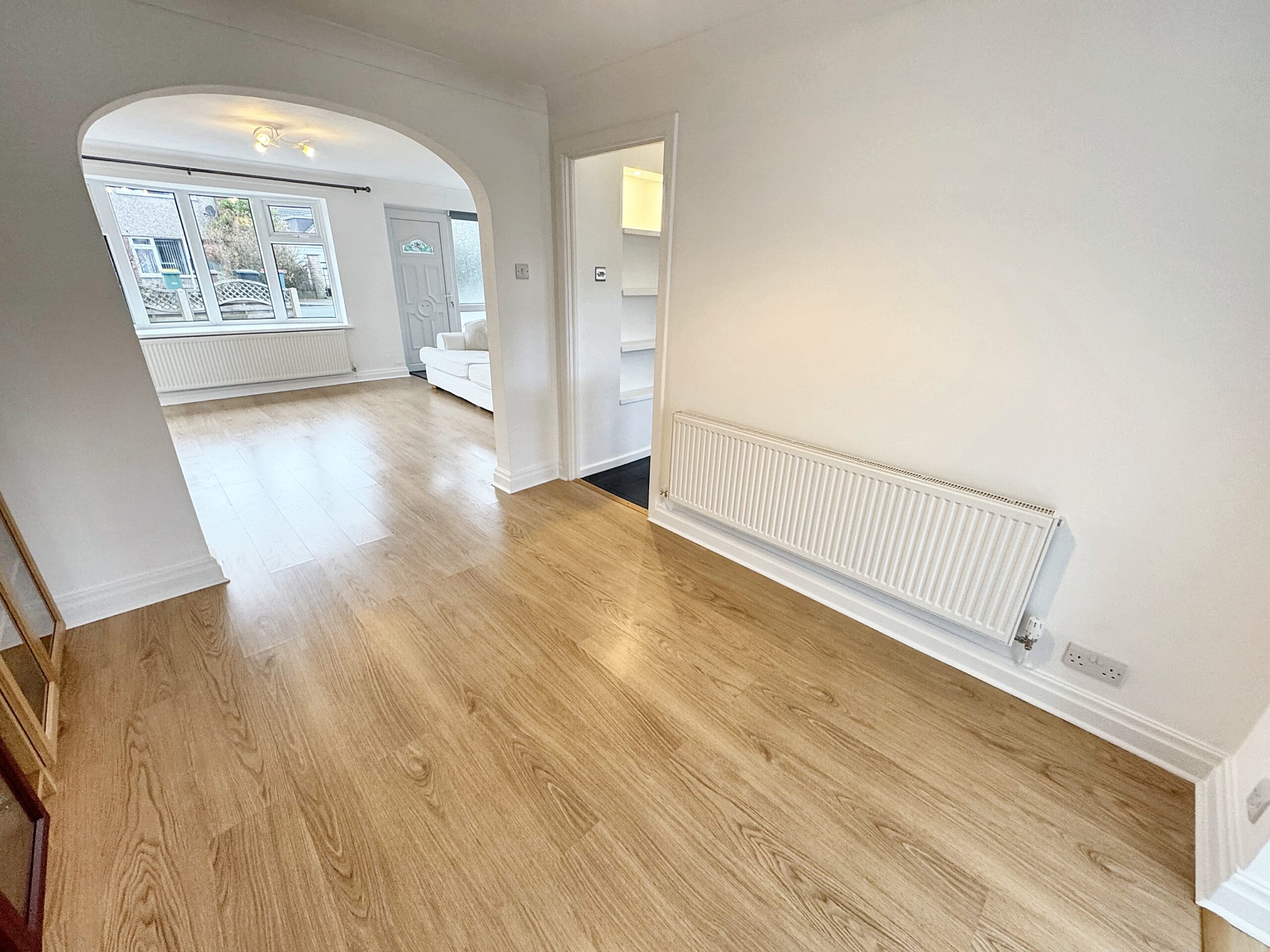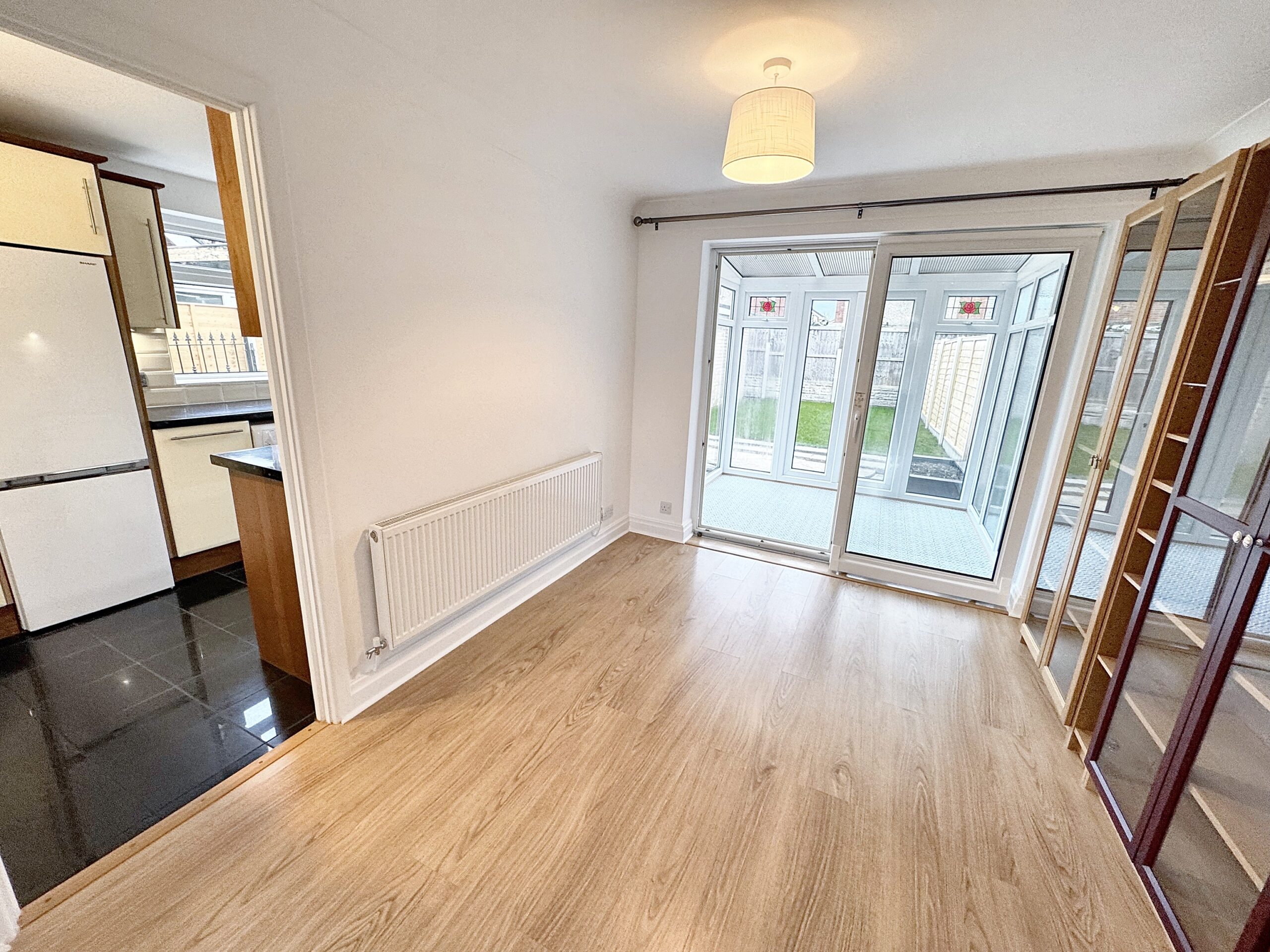 The property has been recently refurbished throughout and comprises of a through lounge diner with wood effect flooring. The lounge has an attractive bay window to the front aspect. The dining room features a wall to wall glazed display cabinet. Access to the kitchen is via the dining room, where it is fully fitted with base and wall units with a rear door leading to the driveway, garage, patio area and lawned garden.