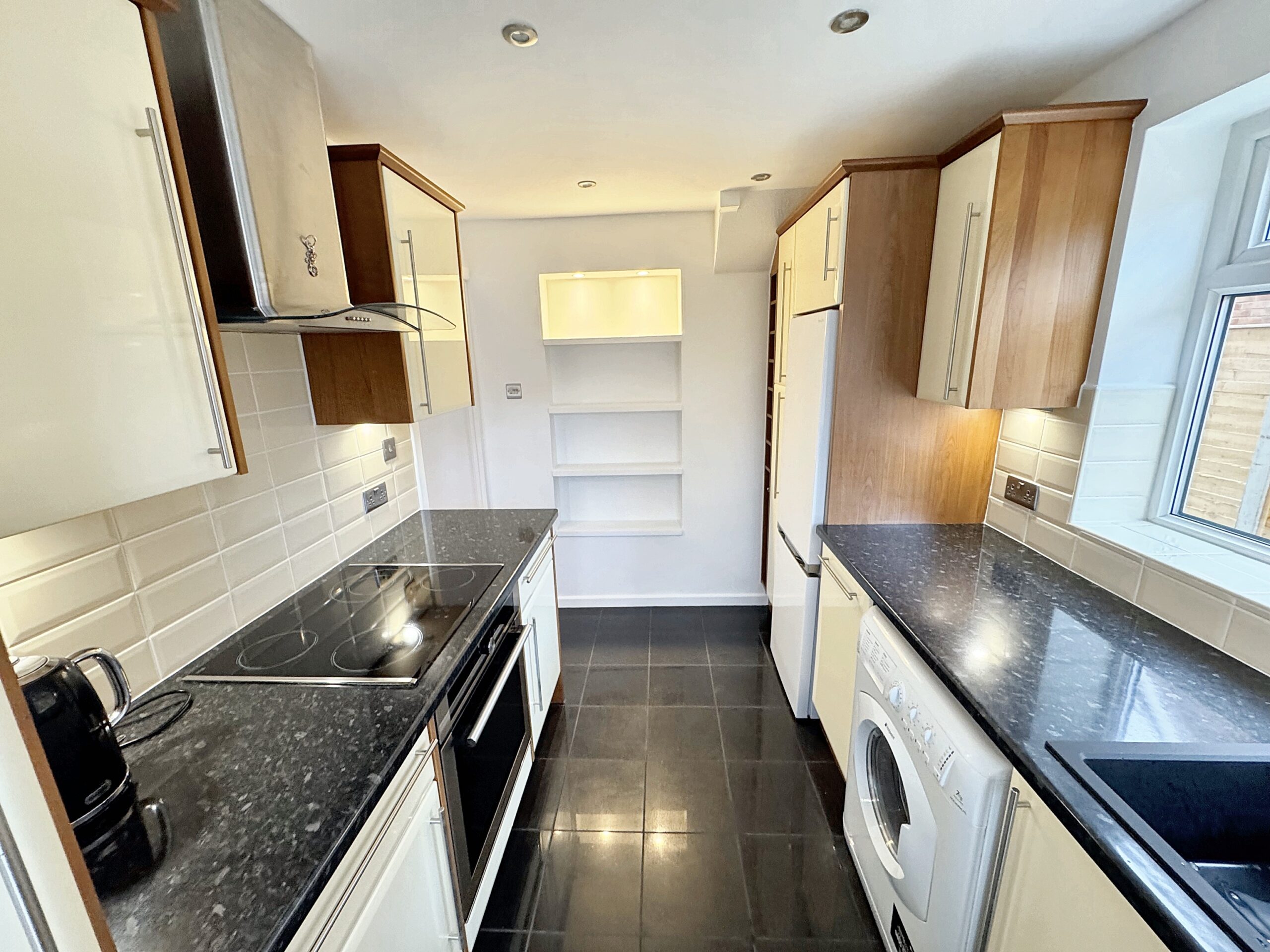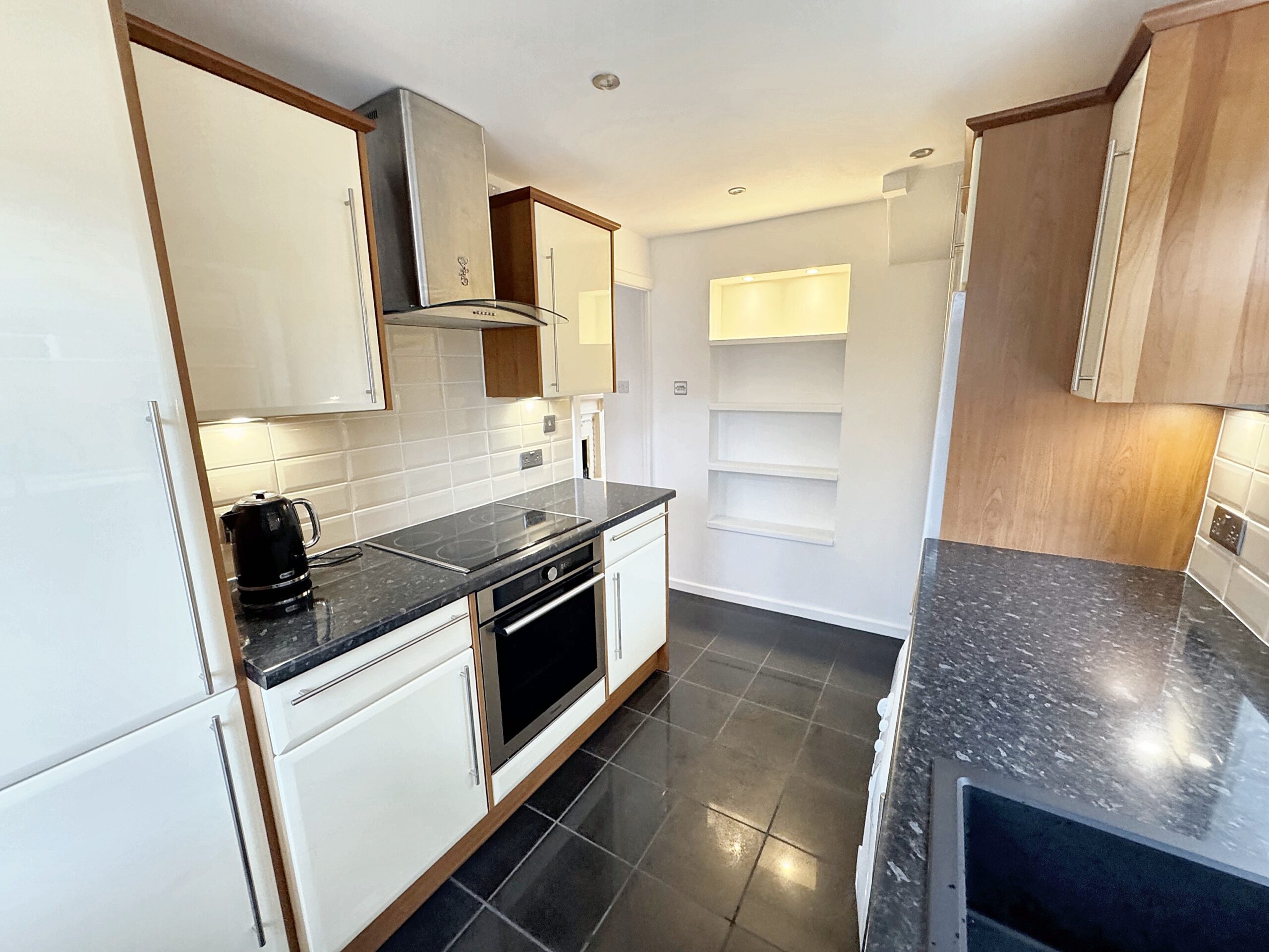 Fully fitted kitchen with floor and wall cabinets. UPVC double glazed window to side aspect and UPVC glazed door to rear.