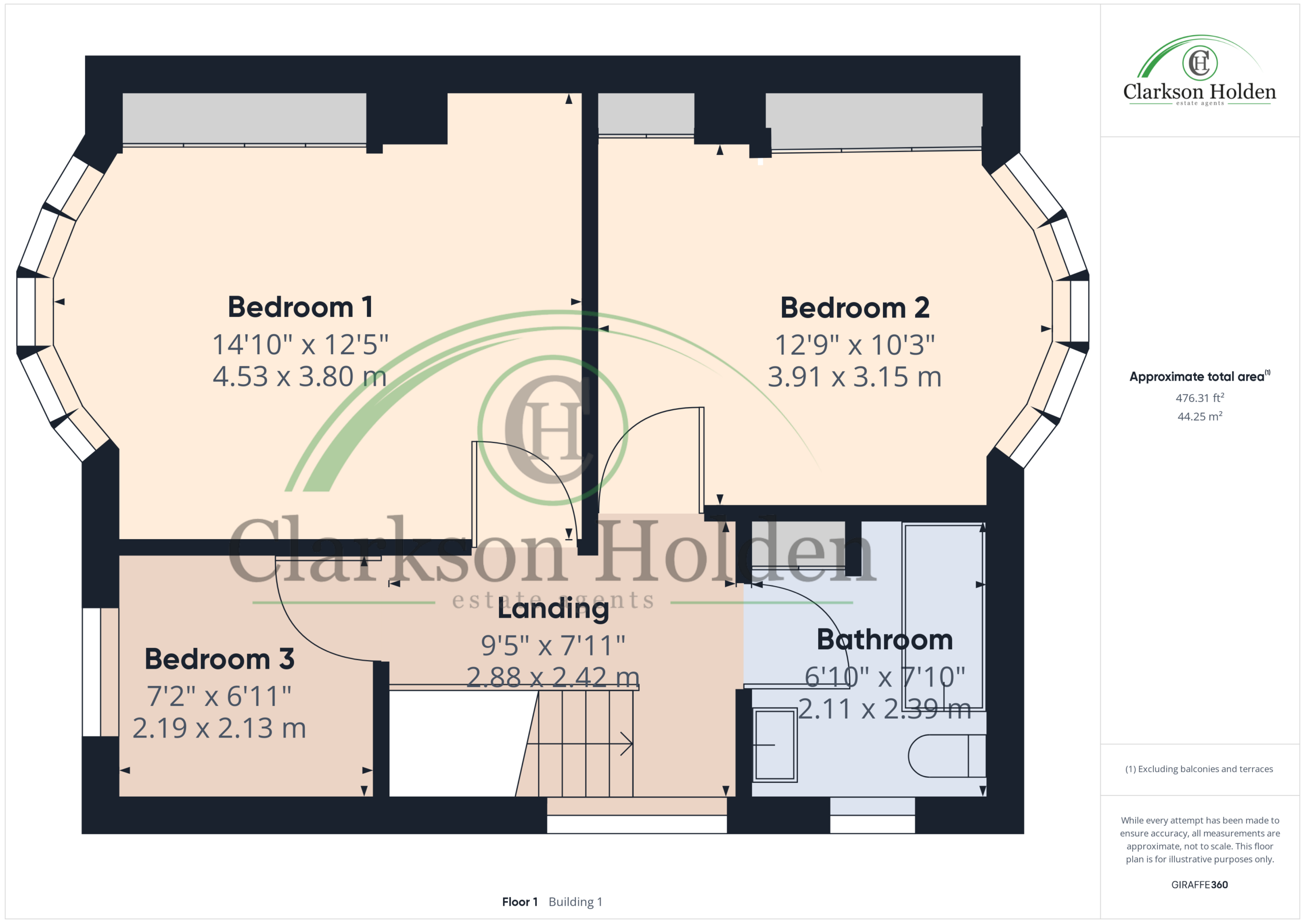 Bedroom 1 14' 10" x 12' 6" (4.53m x 3.80m)