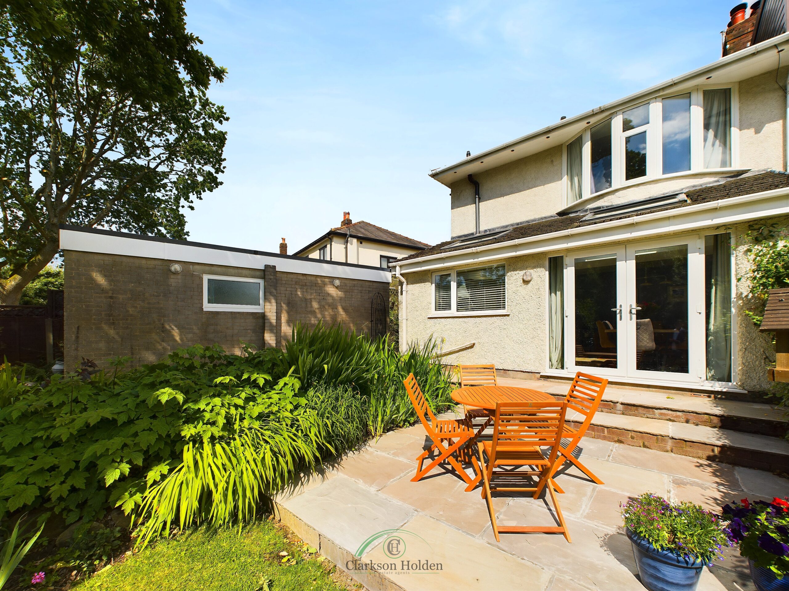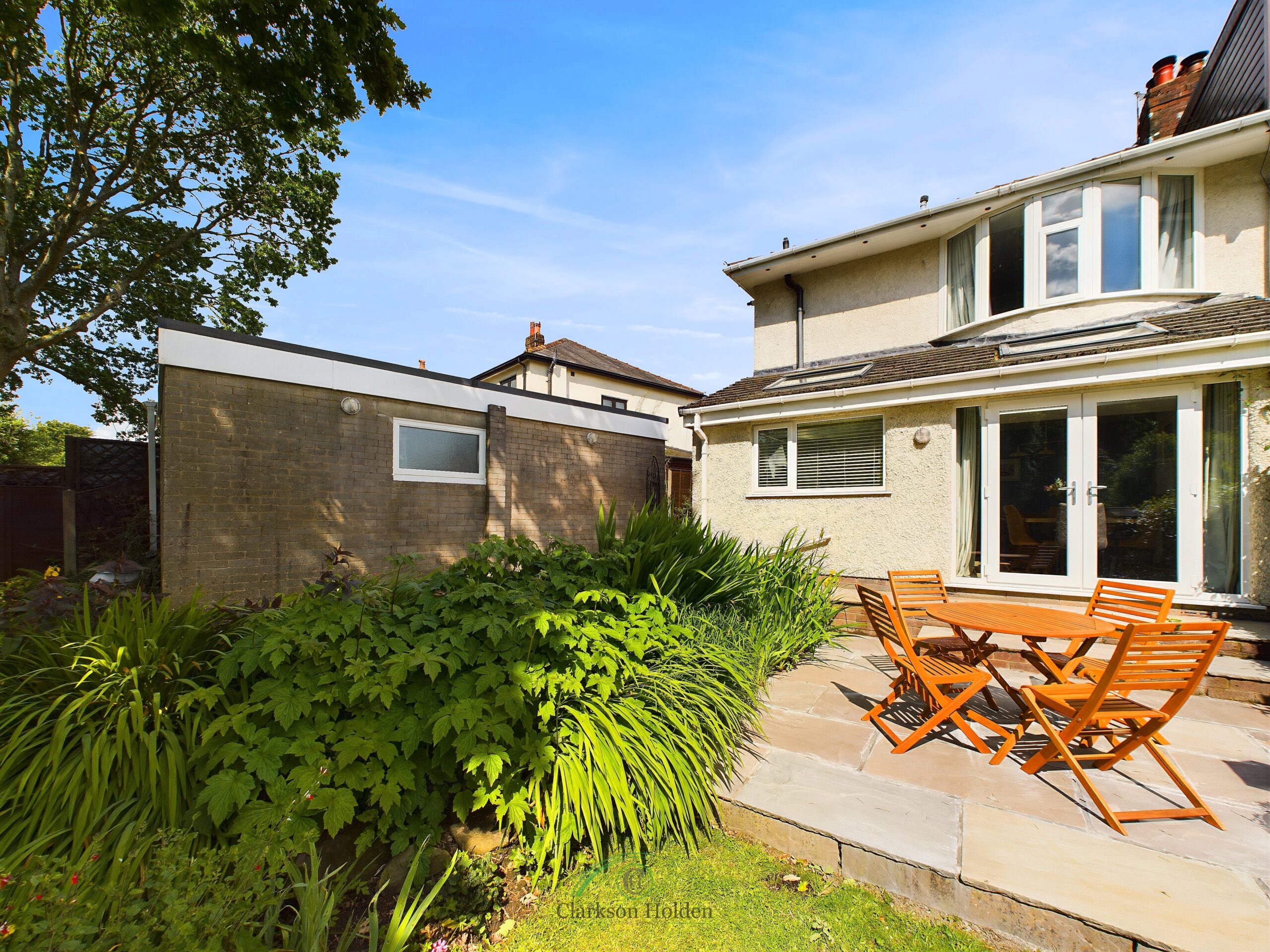 To the rear is a large enclosed, mature and well-maintained garden with access to Garstang Road park. A flagged patio area is accessible through double doors from the dining/living area. To the front, the property benefits from a private hedge-lined gravel standing with mature shrubs and room for potted plants, a driveway with off-road parking for up to 2-3 cars, leading to the garage access.