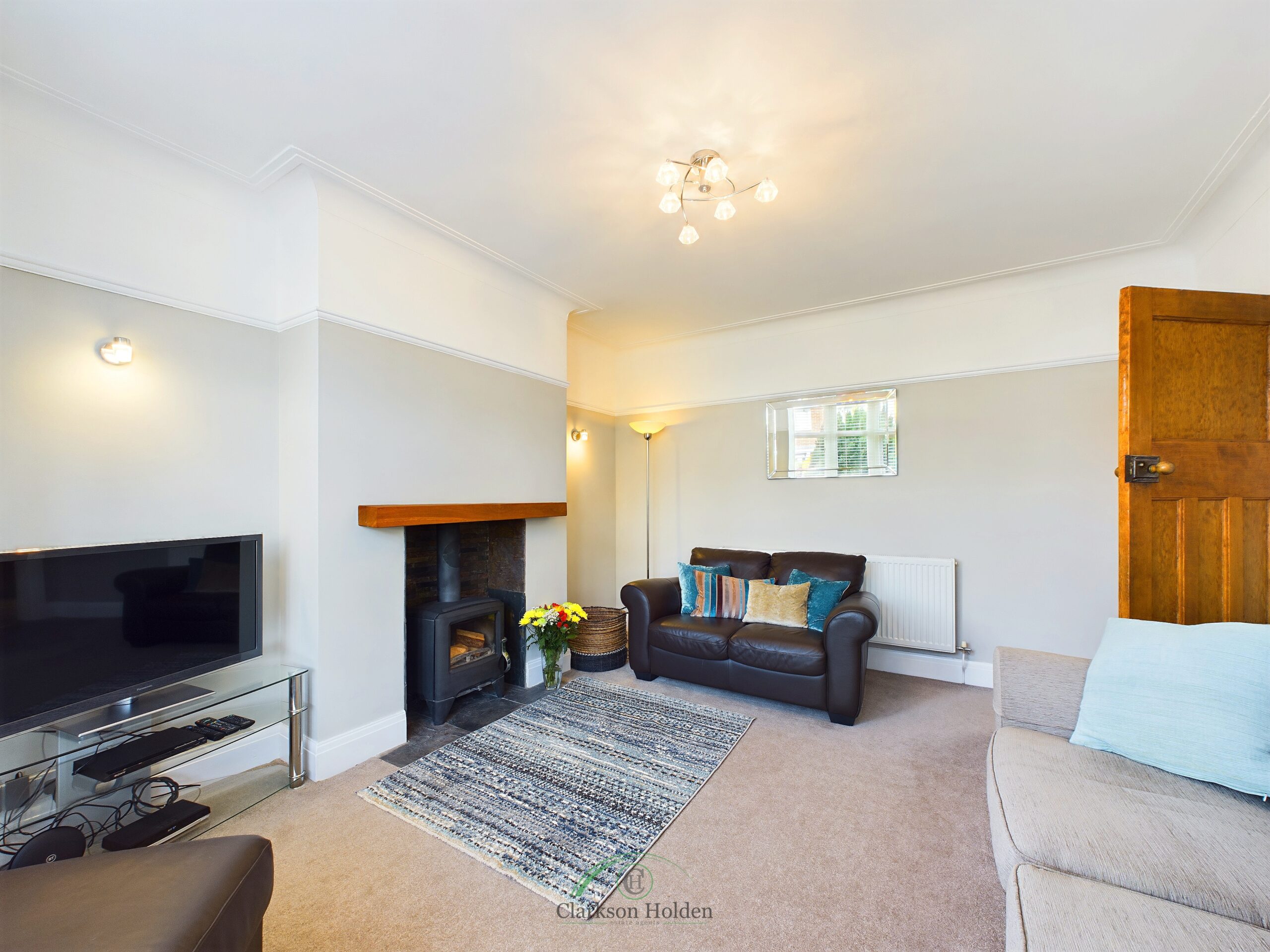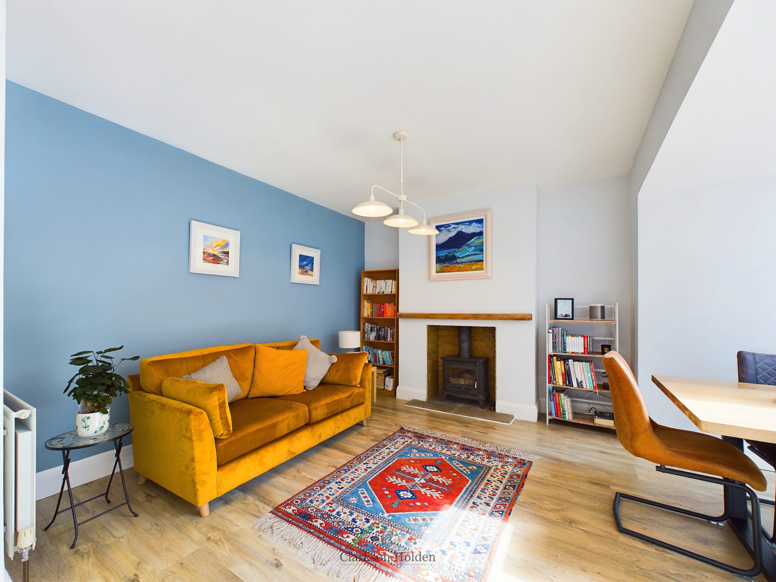 Large bay window to front aspect. Feature fireplace with log burner. Original wooden door. Radiator.