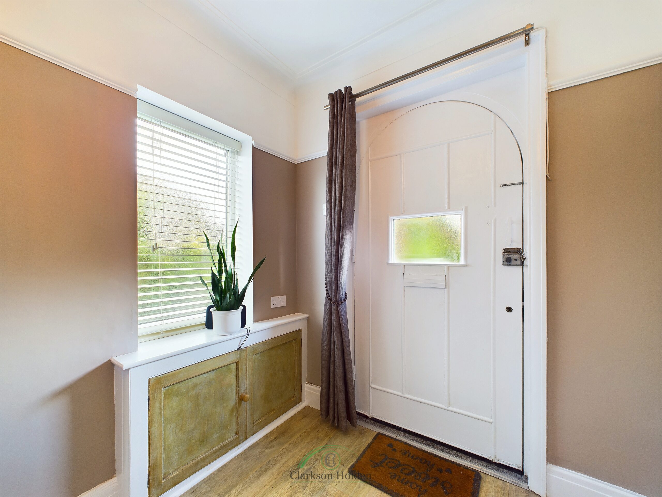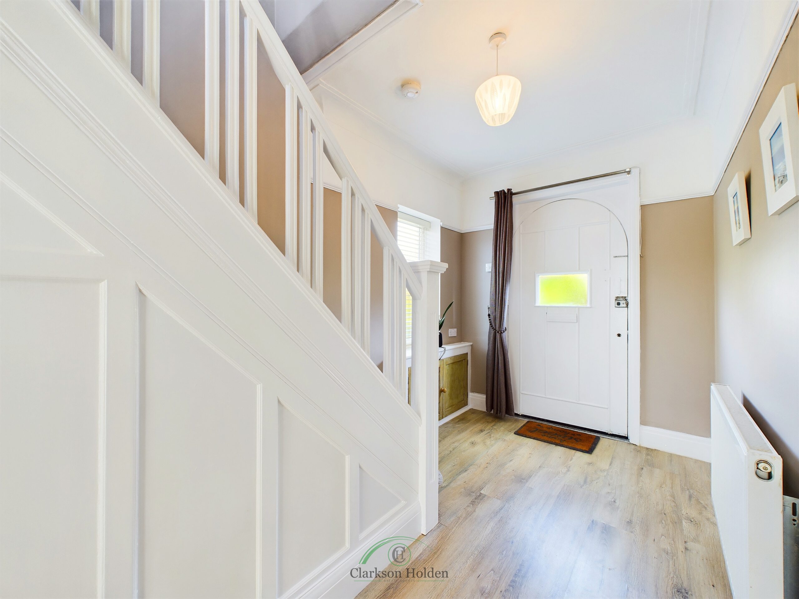 Light spacious hallway. Original front door. Window to side aspect. Cupboard storage. Radiator. Stairs leading to first floor.