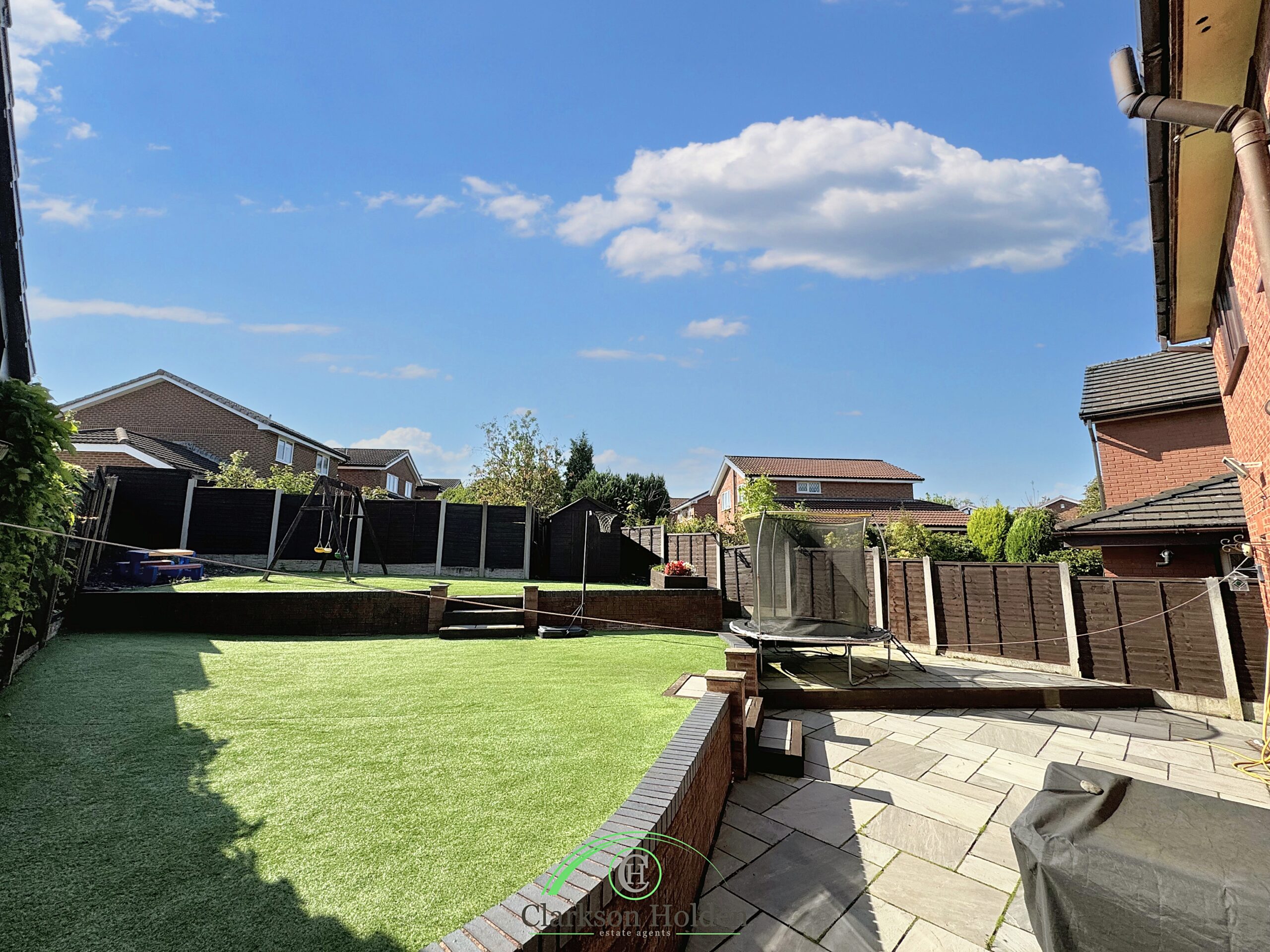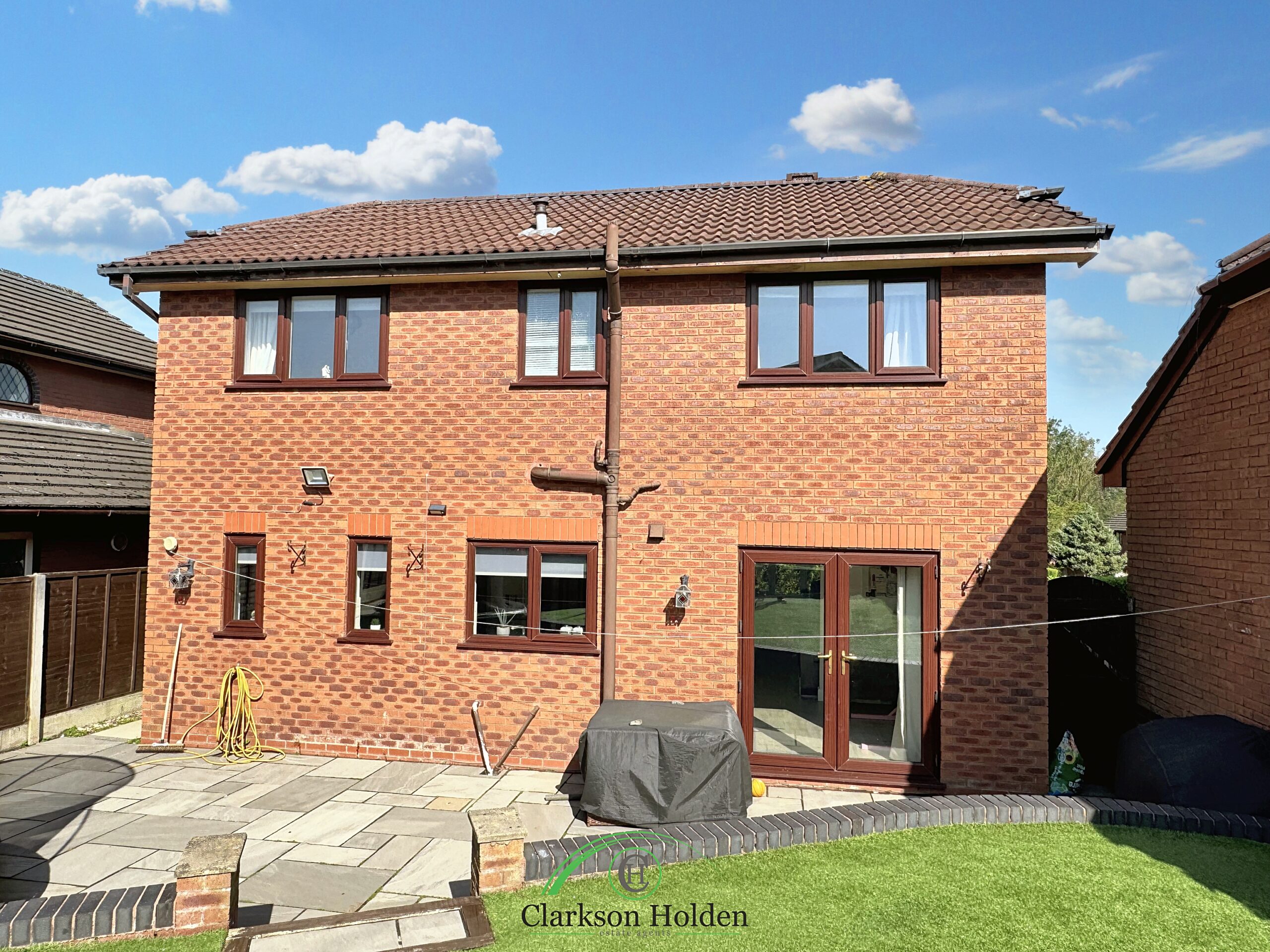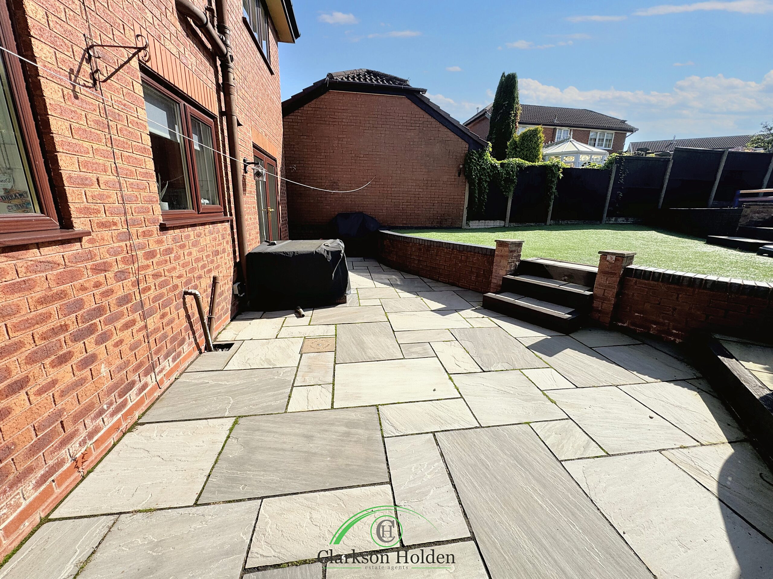 For those who love spending time outside, double doors lead out from the main living area to the south-facing rear garden. The large rear garden with Indian stone patio is a real gem. Whether you're hosting a BBQ, sunbathing, or simply enjoying a morning coffee, this garden has it all.