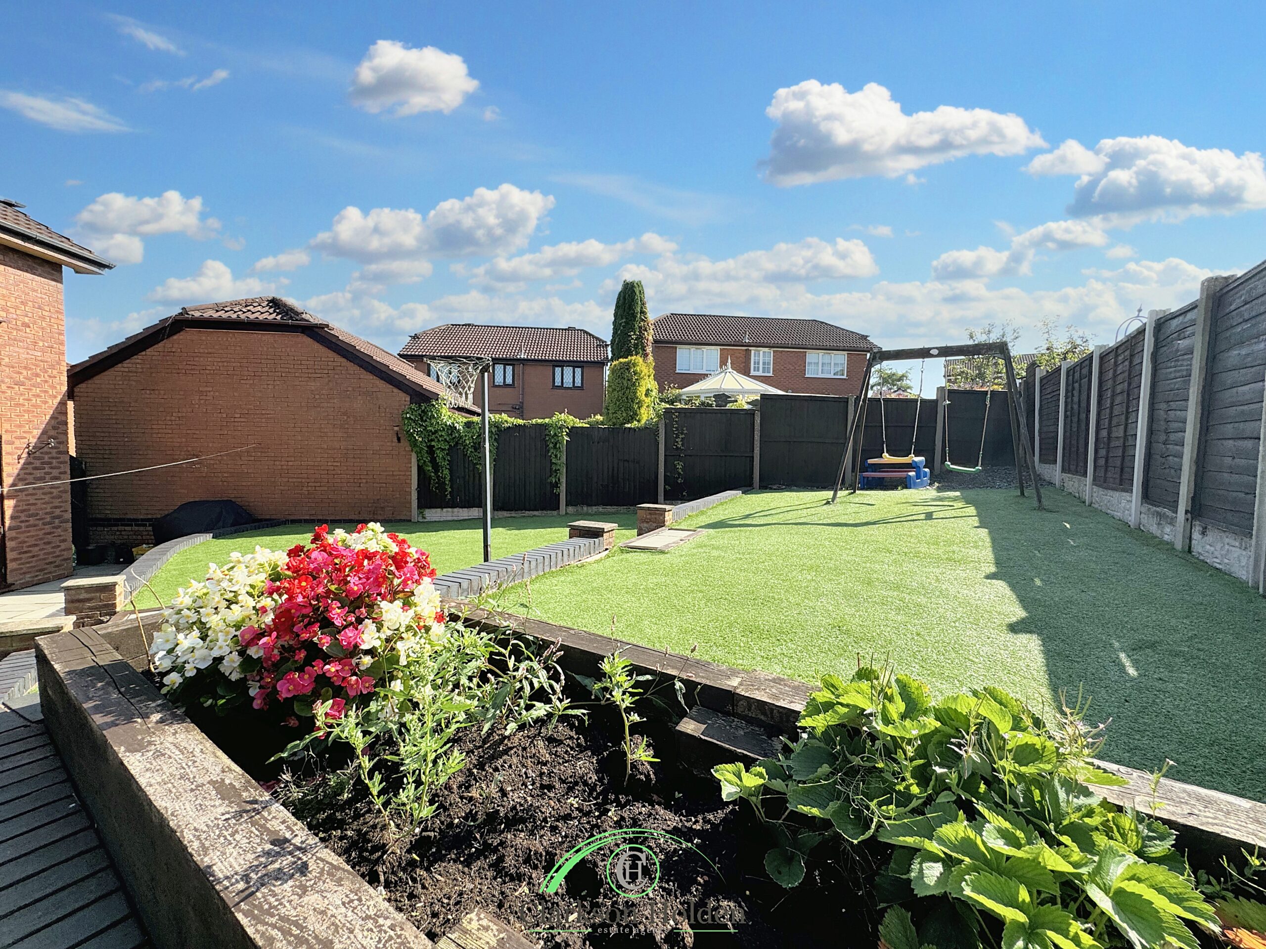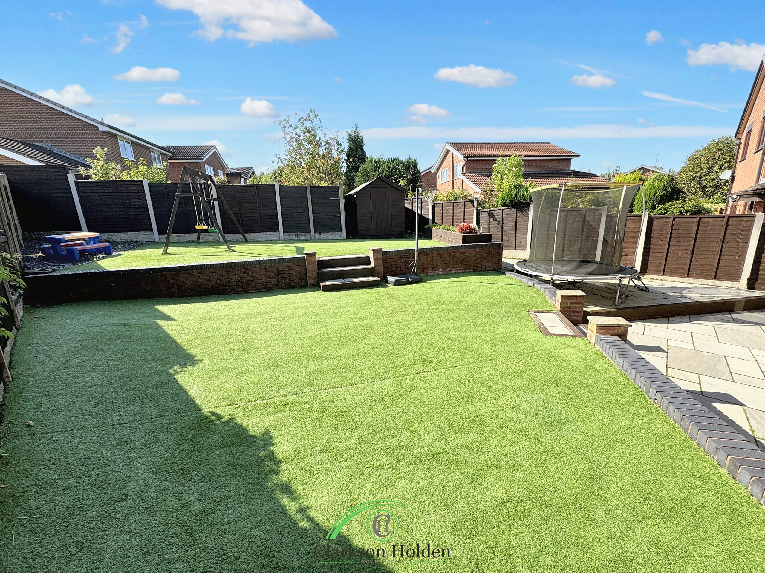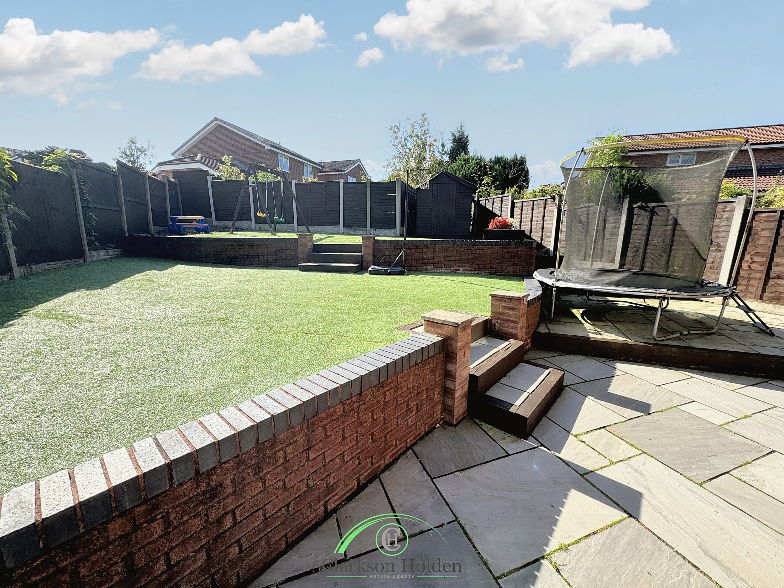 For those who love spending time outside, double doors lead out from the main living area to the south-facing rear garden. The large rear garden with Indian stone patio is a real gem. Whether you're hosting a BBQ, sunbathing, or simply enjoying a morning coffee, this garden has it all.