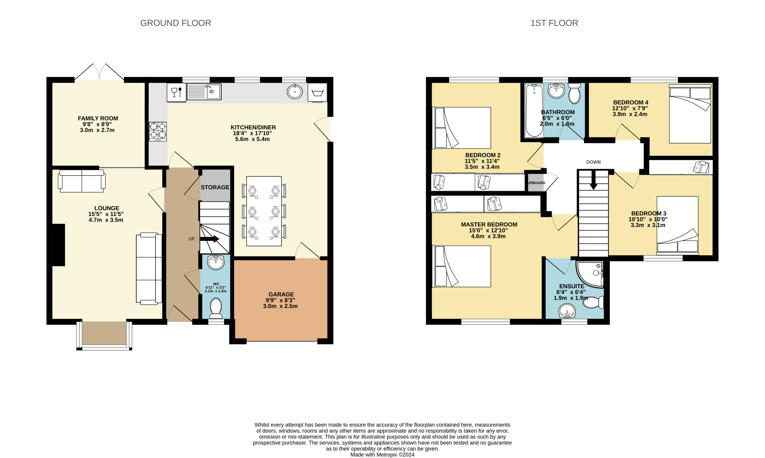 Upstairs, you'll find four generous double bedrooms, ideal for a growing family or those in need of extra space. The master bedroom boasts its own en-suite, providing a private sanctuary for relaxation.