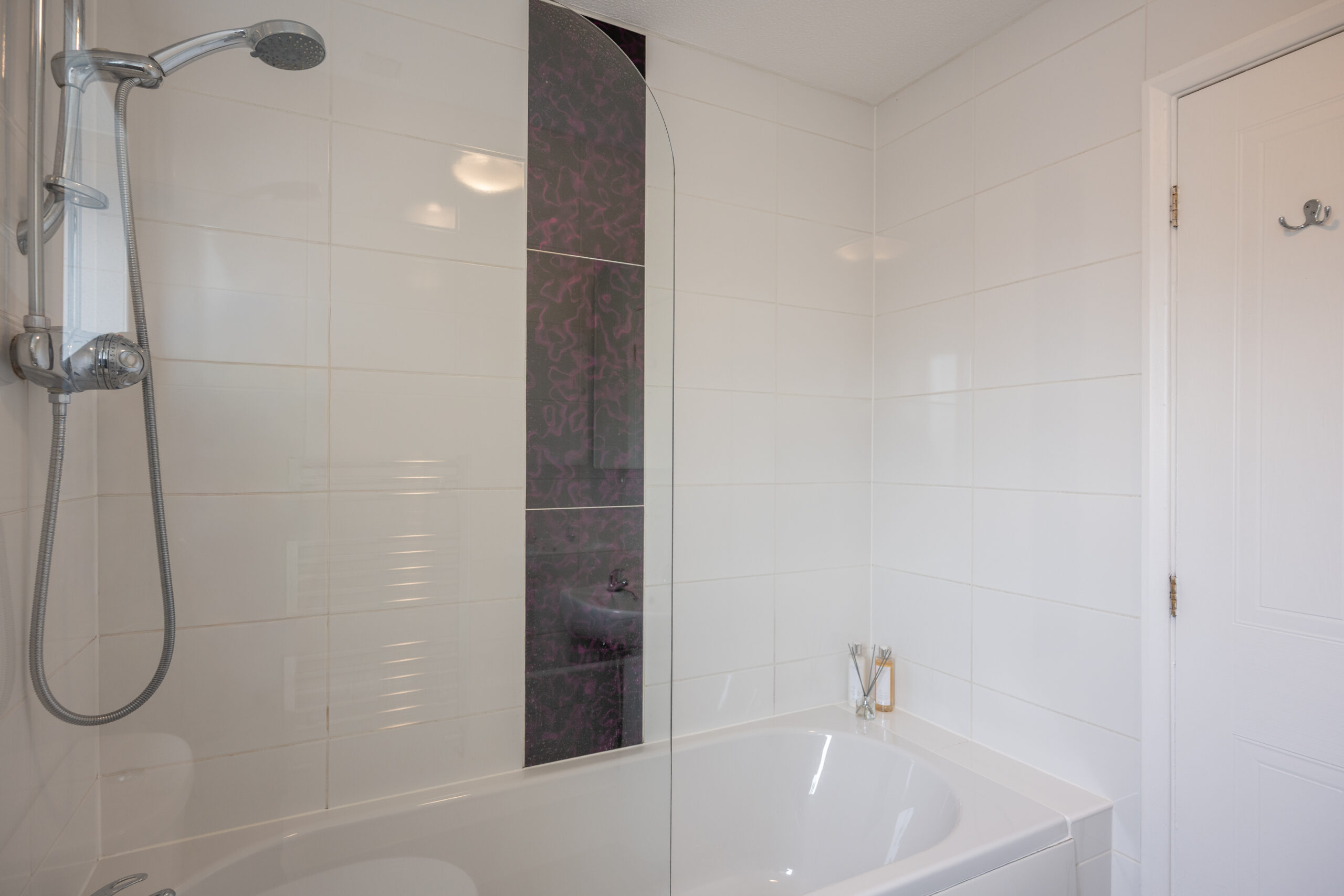 The family bathroom is sleek and modern, with quality fixtures and fittings.