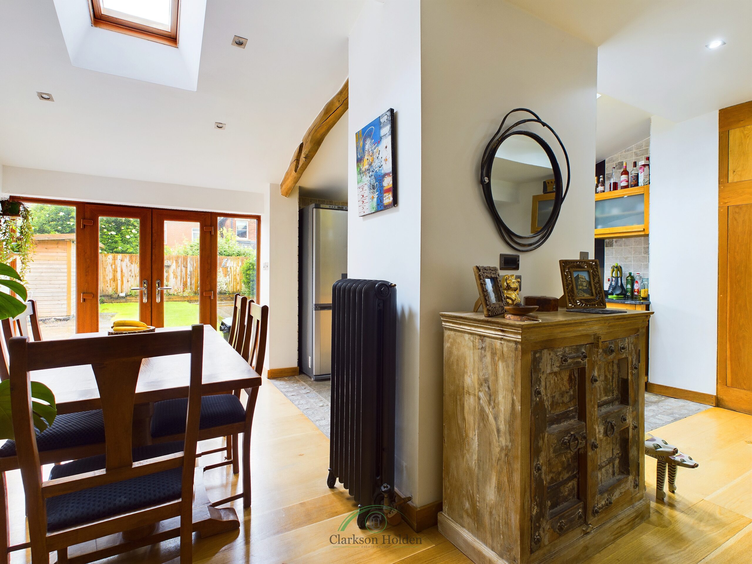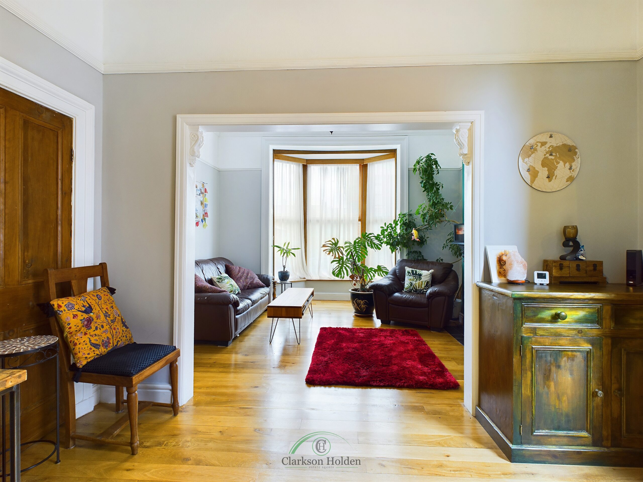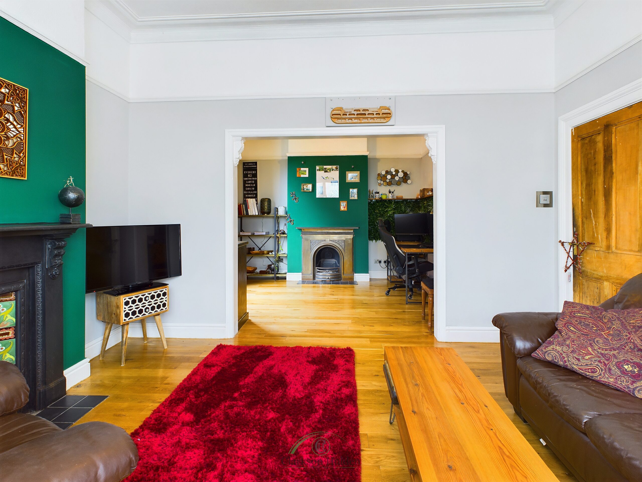 The ground floor also features a generously sized living room, offering a cosy retreat for relaxation and entertainment. With large windows allowing for plenty of natural light to flood the room, this space is ideal for spending quality time with loved ones and unwinding after a long day. Leading onto a spacious additional reception room.