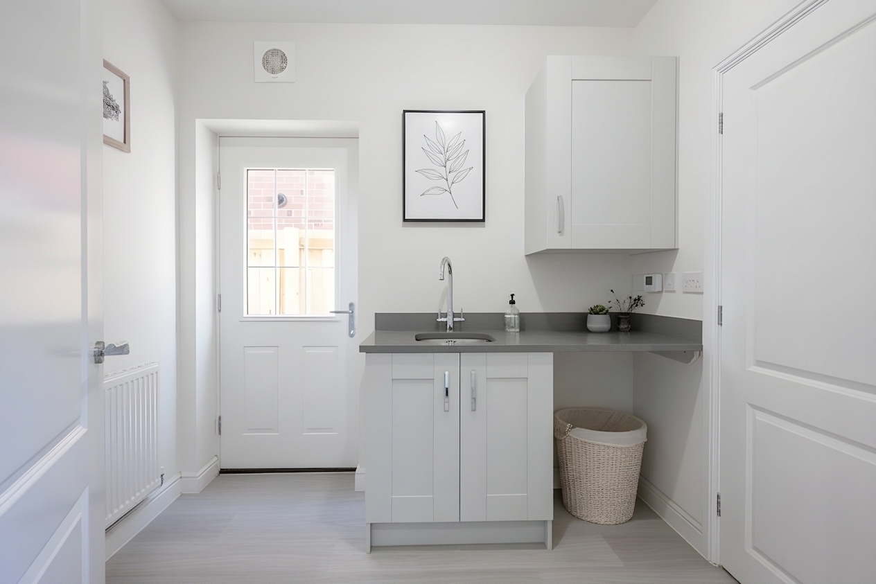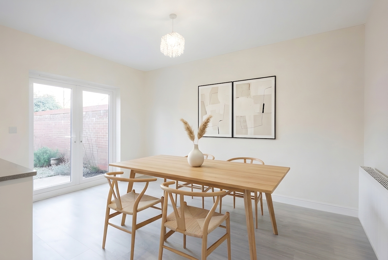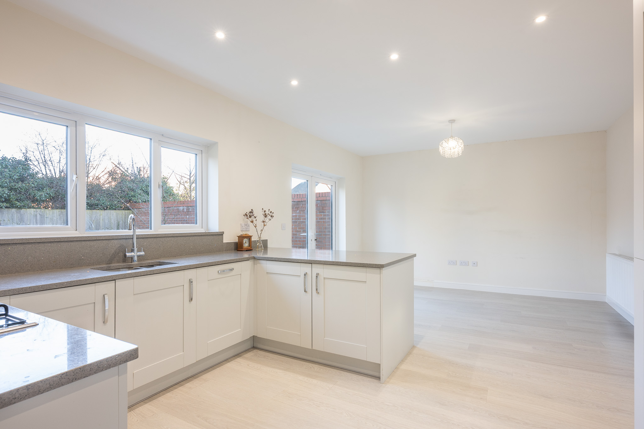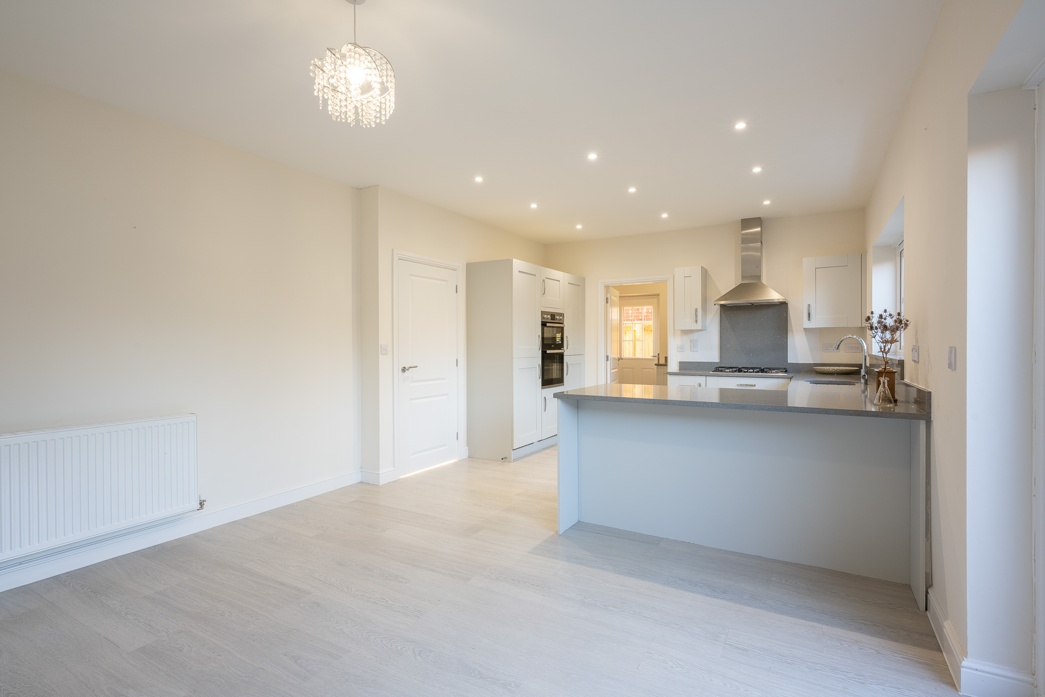 The heart of the home is the contemporary open plan kitchen and dining area, thoughtfully designed to accommodate both every-day living and social occasions, with ample room for a large dining table and direct access to the adjoining utility room for added convenience.