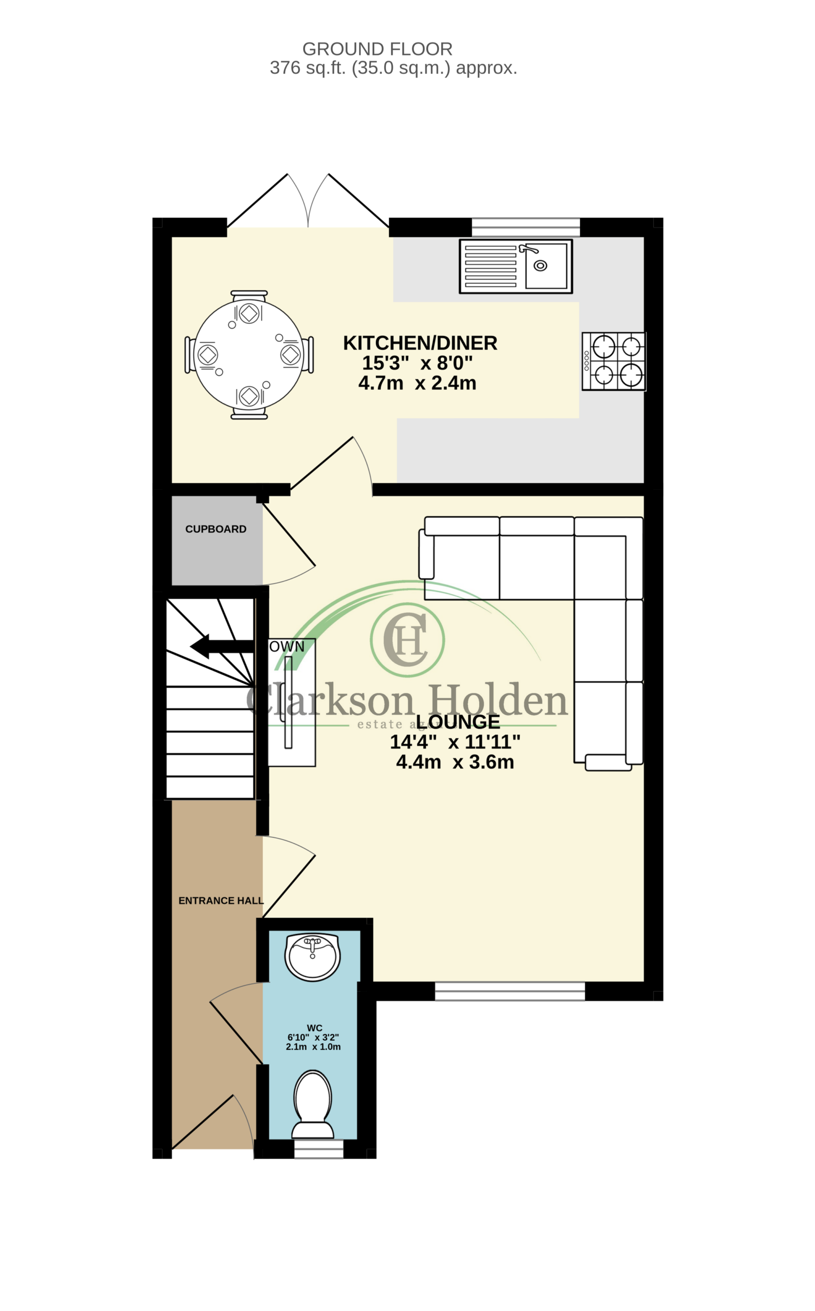 The garden is mainly laid to lawn, with a patio area ideal for alfresco dining or relaxing in the sunshine.